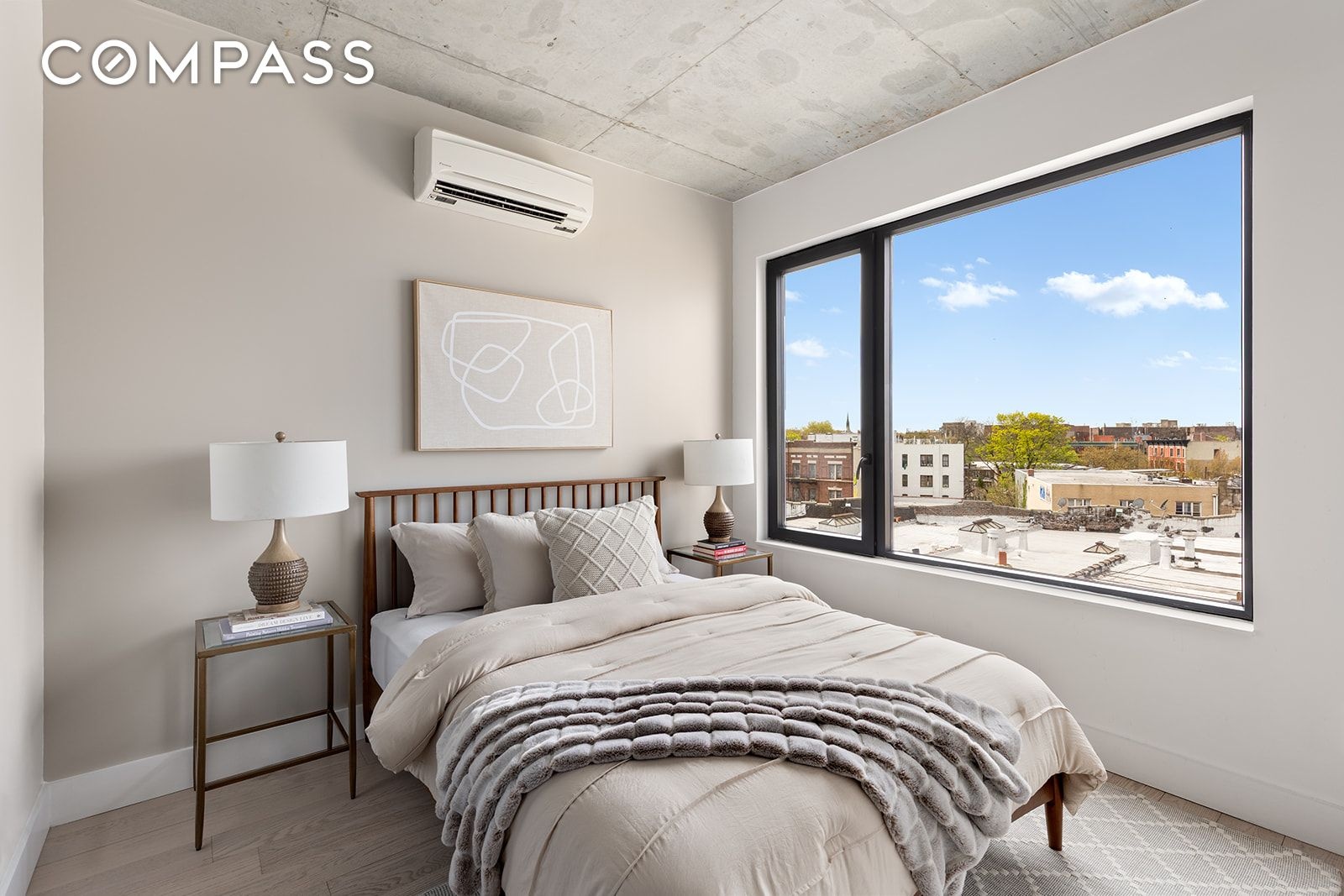 Industrial edge meets clean, modern design in this sleek, sunlit 1-bedroom + home office condo at The Newkirk. The layout is efficient and exceptionally functional, offering distinct living, working, and sleeping spaces—plus a private balcony that extends your environment outdoors. The space is designed to feel open and airy, with great light, smart layout choices, and materials that stand out. Think exposed concrete ceilings, wide-plank Canadian oak floors, and oversized black-framed windows that give the whole place a sharp, architectural feel.
