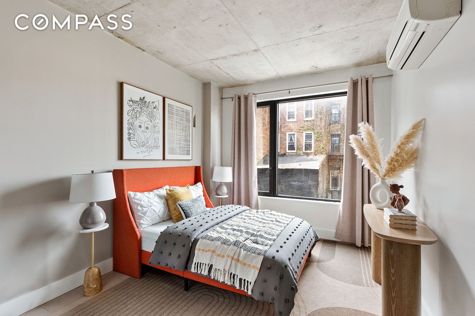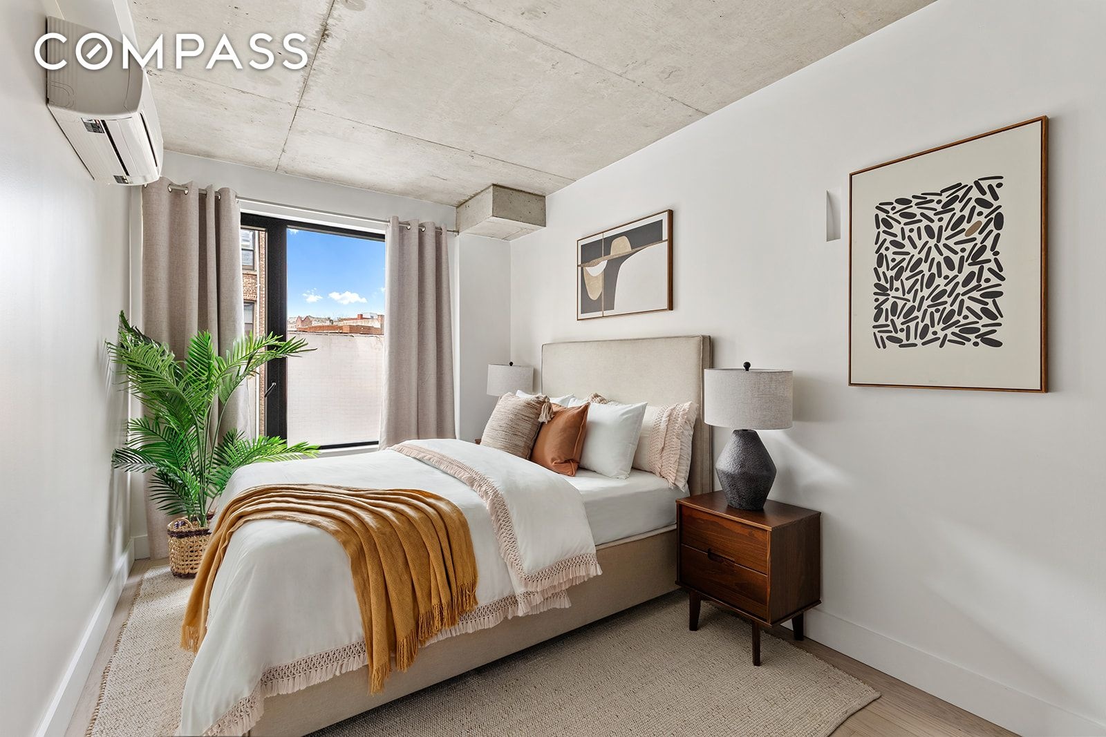 Industrial edge meets modern Brooklyn living in this bright, sleek 2-bedroom, 2-bathroom condo in Flatbush. The space is designed to feel open and airy, with great light, smart layout choices, and materials that stand out. Think exposed concrete ceilings, wide-plank Canadian oak floors, and oversized black-framed windows that give the whole place a sharp, architectural feel.