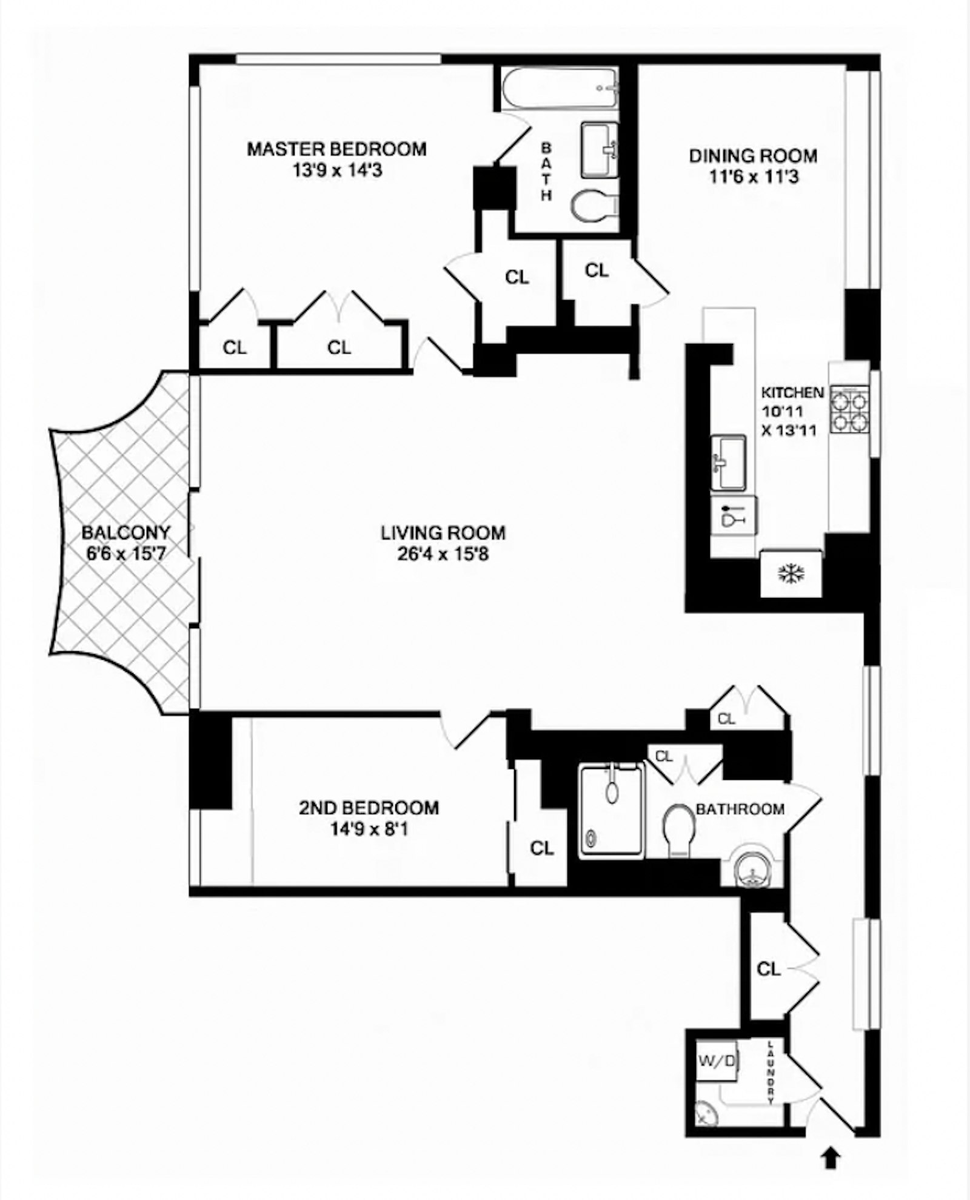 This beautifully proportioned 1, 463 square foot two bedroom, two bathroom residence offers an exceptional combination of space, light, and value.