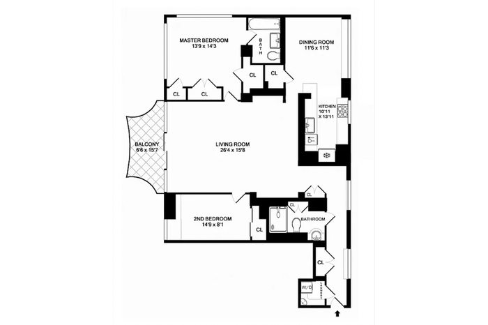 This beautifully proportioned 1, 463 square foot two bedroom, two bathroom residence offers an exceptional combination of space, light, and value.