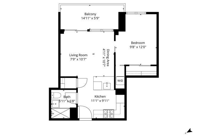 Wide-plank oak floors, clean modern finishes, a Bosch washer/dryer, and generous closet space (including a walk-in) complete the interiors.