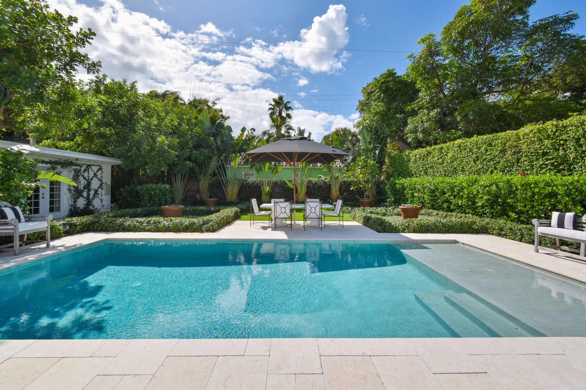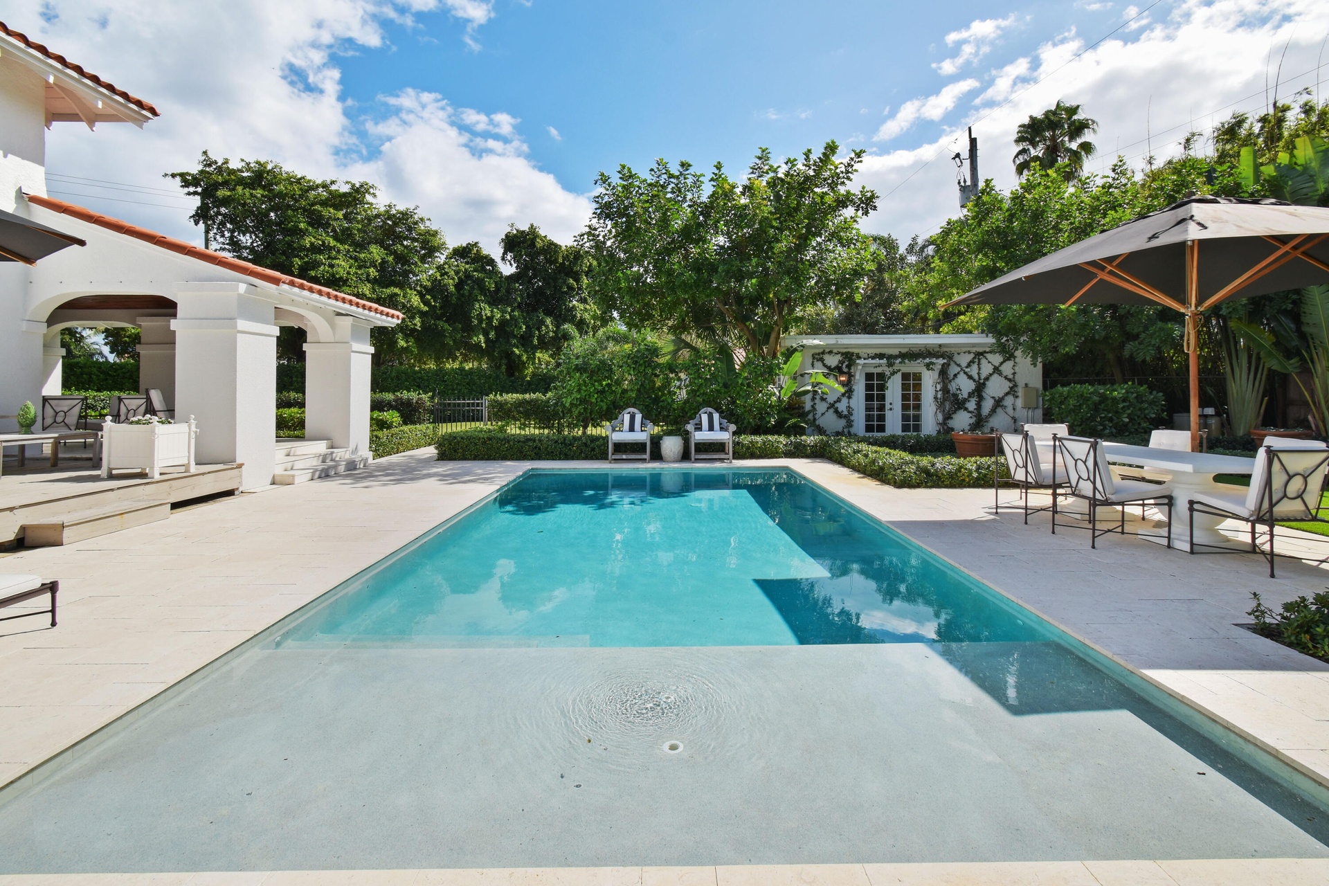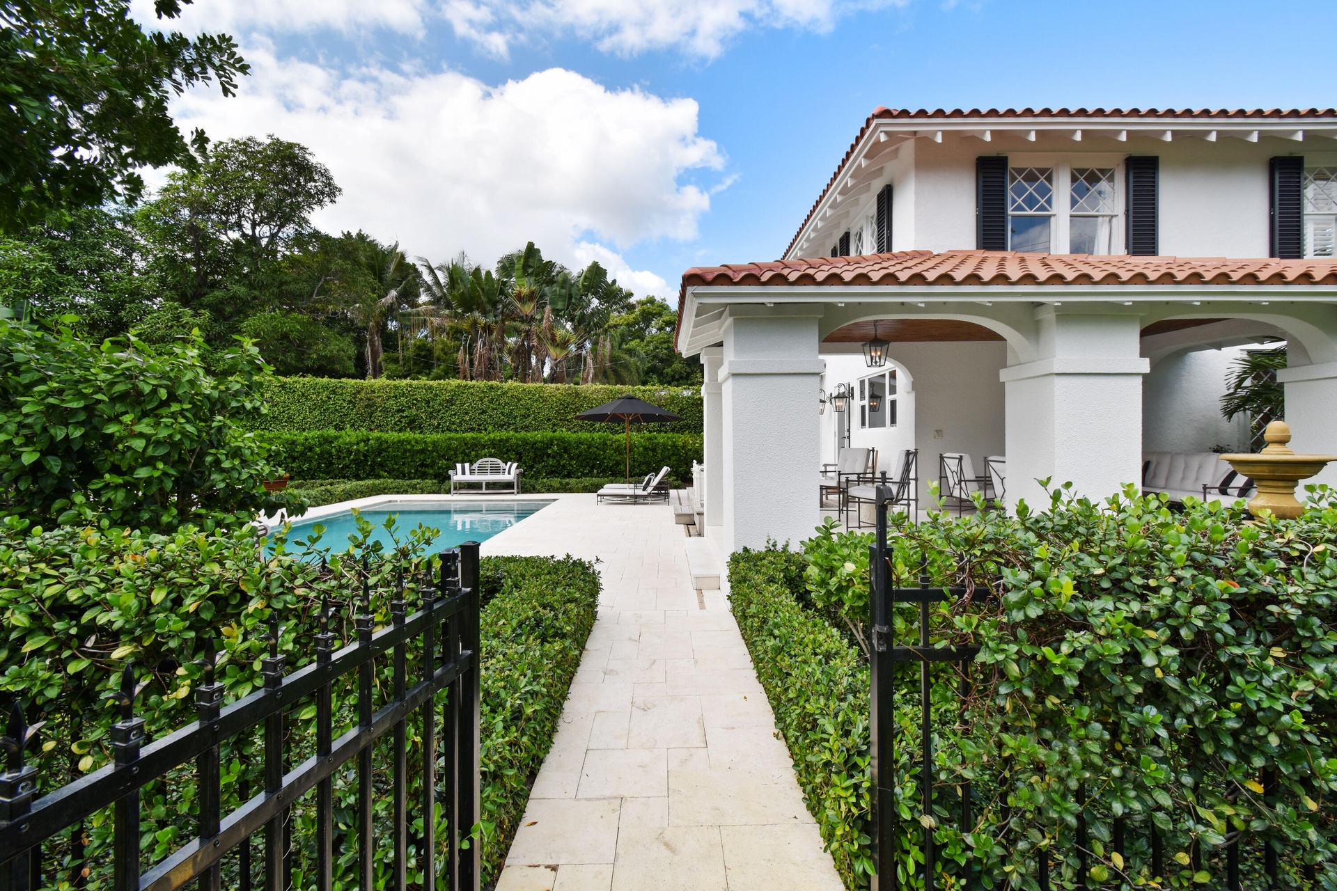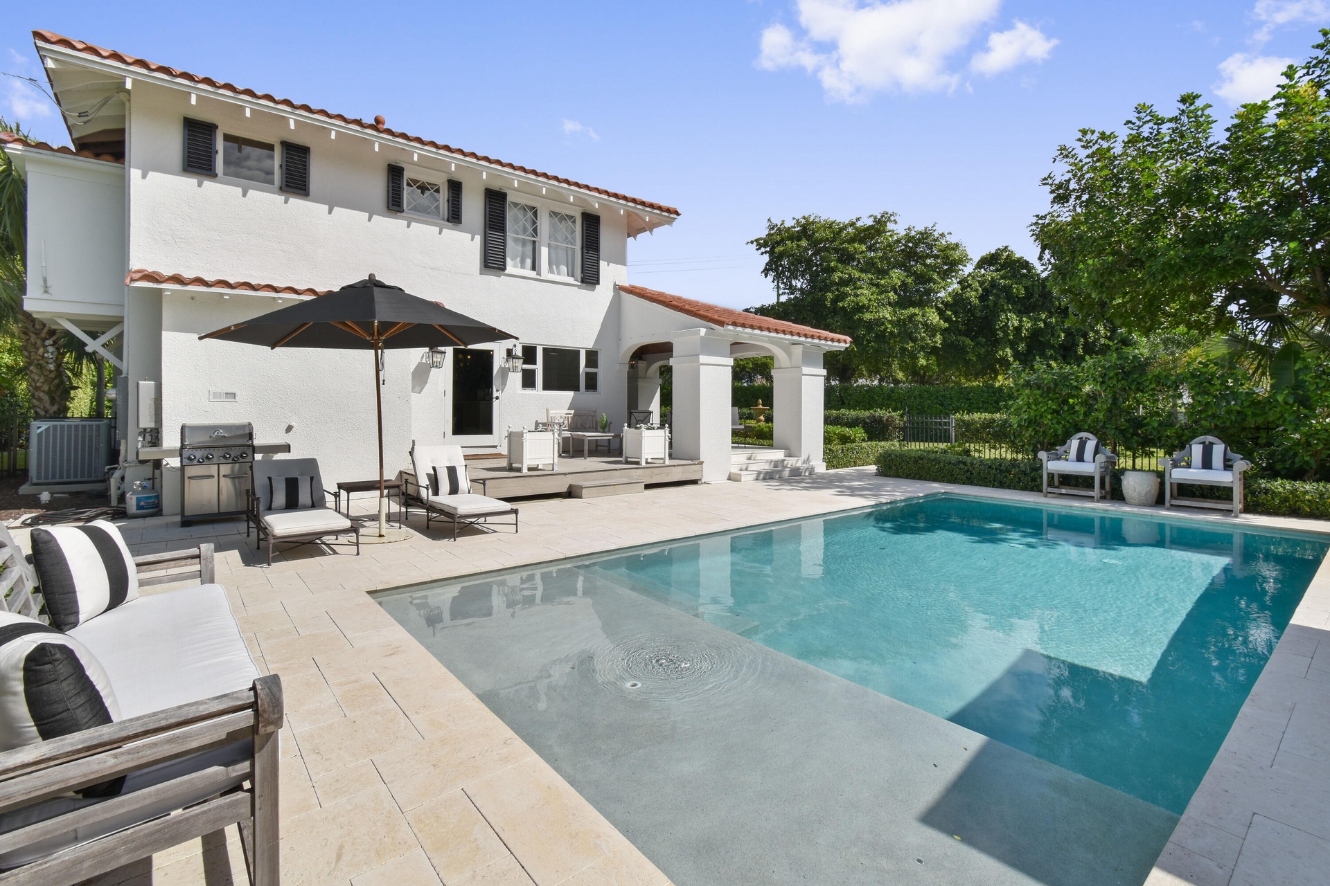 Welcome to your private retreat in the heart of West Palm Beach. Offered fully furnished from June 1st through December, this beautifully curated 3-bedroom, 2.5-bath residence blends comfort, style, and effortless indoor-outdoor living. Tucked behind lush landscaping on private, tranquil grounds, the home offers a rare sense of seclusion while remaining just minutes from everything that makes West Palm Beach so desirable. Inside, thoughtfully designed living spaces are filled with natural light and tailored for both relaxation and entertaining. Step outside and experience the true highlight of the property — a resort-style backyard designed for year-round enjoyment. The sparkling pool is surrounded by multiple lounge and dining areas, creating the perfect setting for everything from quiet mornings to sunset gatherings. Whether you're hosting guests or enjoying a peaceful escape, the outdoor spaces feel like your own private oasis. Located just minutes from Downtown West Palm Beach, CityPlace (The Square), the Norton Museum, and a short drive over the bridge to Palm Beach Island and its pristine beaches, this home also provides quick access to Palm Beach International Airport, making travel effortless.