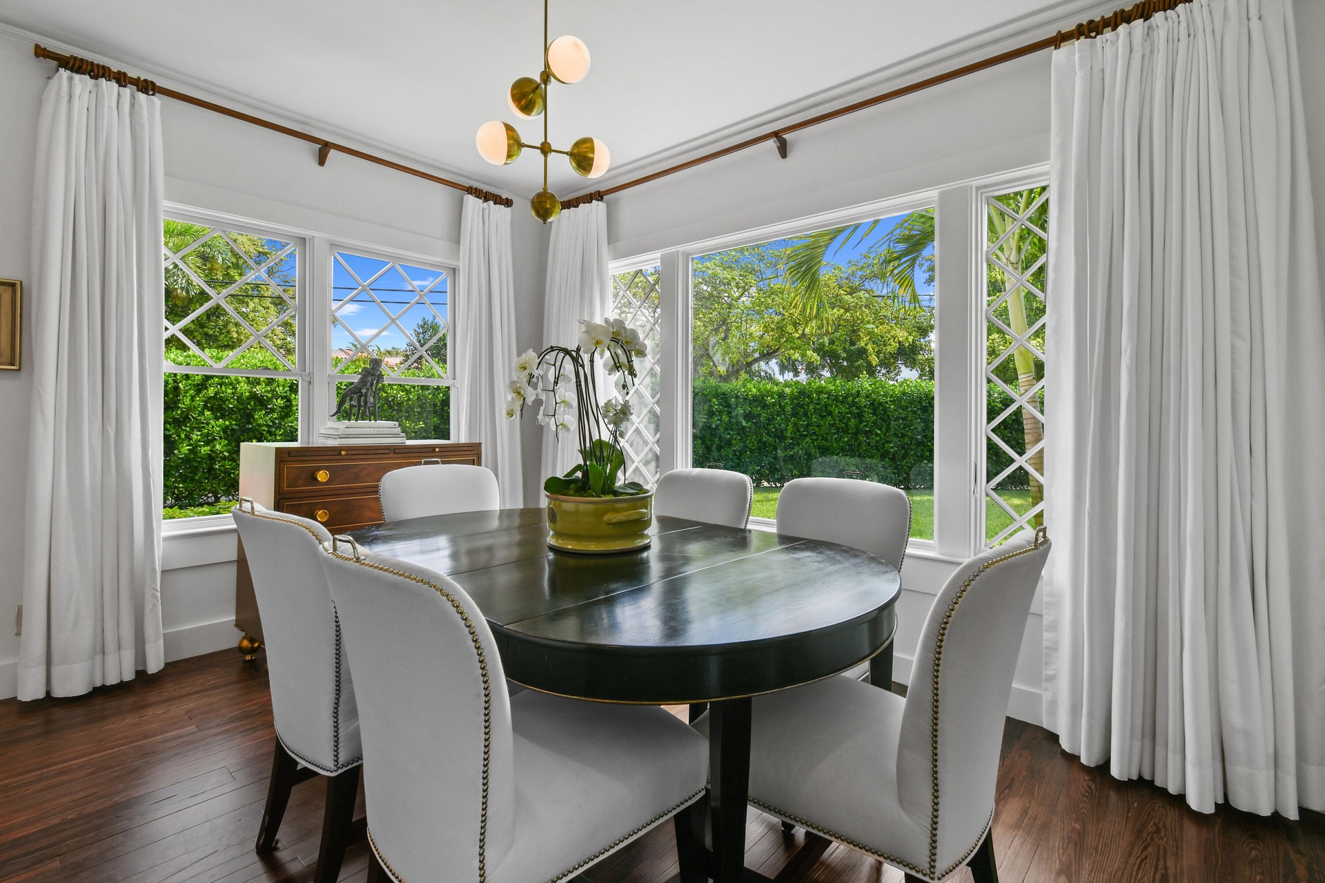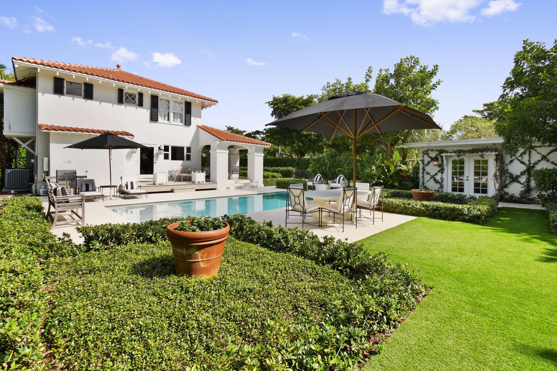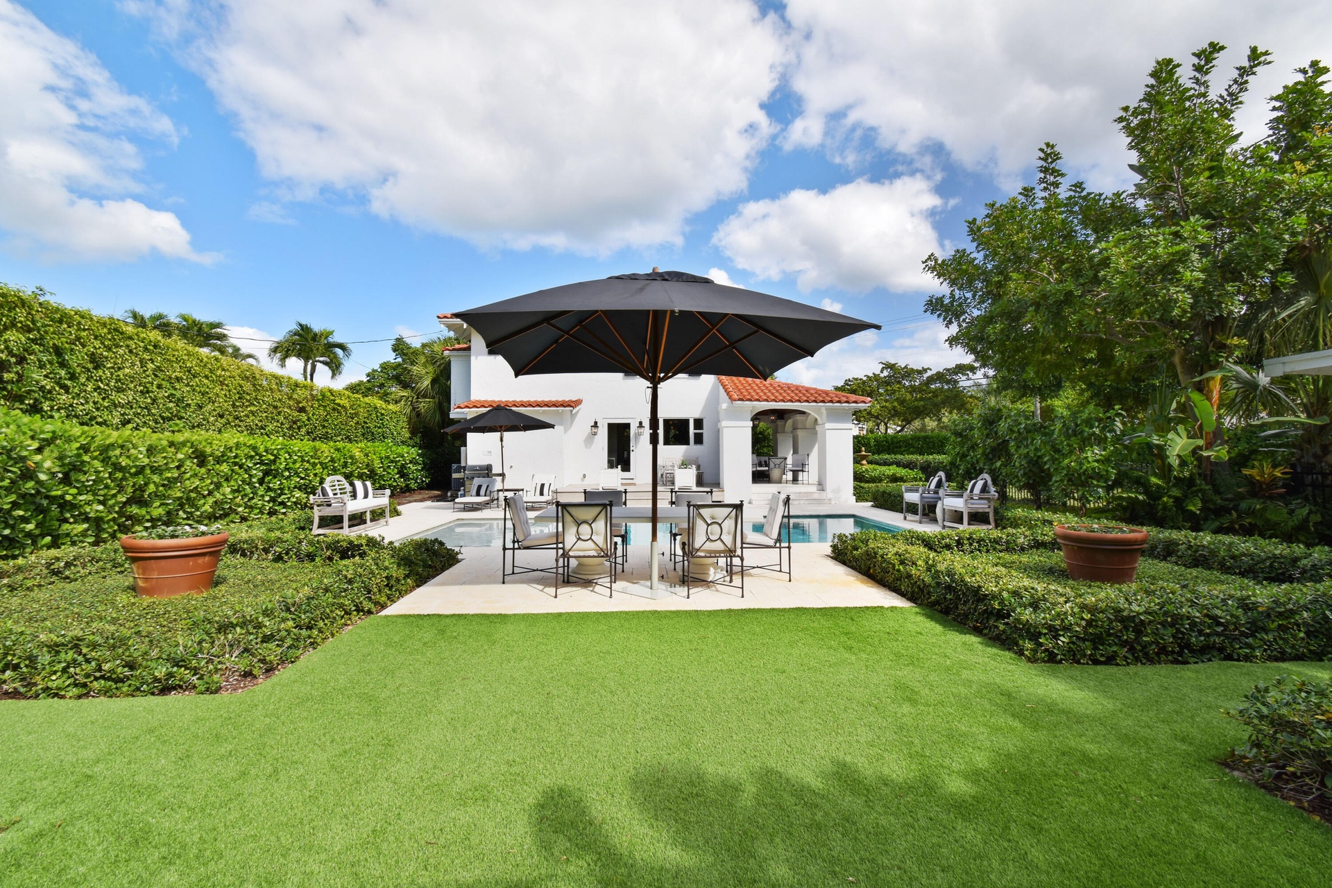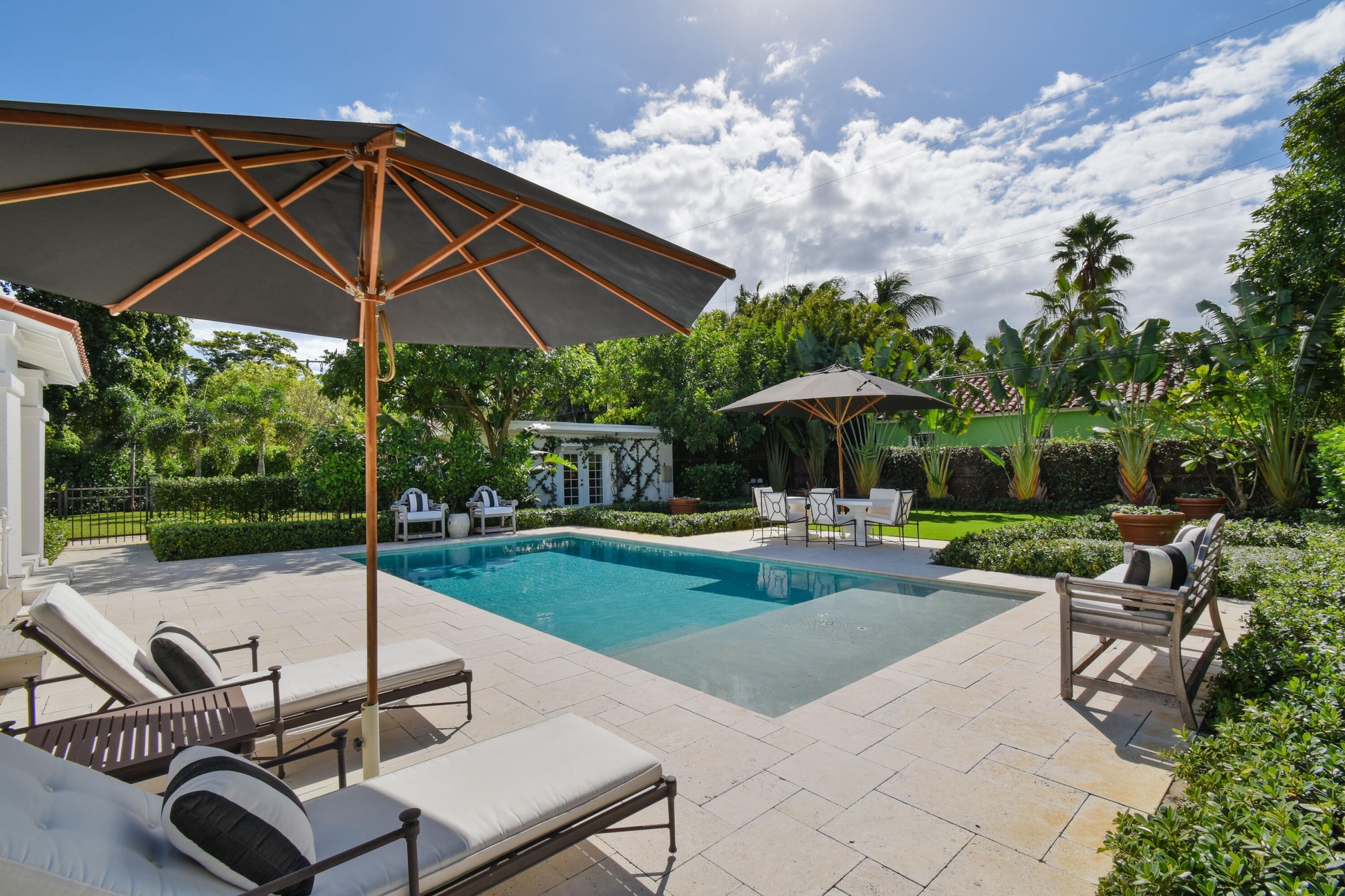 Welcome to your private retreat in the heart of West Palm Beach. Offered fully furnished from June 1st through December, this beautifully curated 3-bedroom, 2.5-bath residence blends comfort, style, and effortless indoor-outdoor living. Tucked behind lush landscaping on private, tranquil grounds, the home offers a rare sense of seclusion while remaining just minutes from everything that makes West Palm Beach so desirable. Inside, thoughtfully designed living spaces are filled with natural light and tailored for both relaxation and entertaining. Step outside and experience the true highlight of the property — a resort-style backyard designed for year-round enjoyment. The sparkling pool is surrounded by multiple lounge and dining areas, creating the perfect setting for everything from quiet mornings to sunset gatherings. Whether you're hosting guests or enjoying a peaceful escape, the outdoor spaces feel like your own private oasis. Located just minutes from Downtown West Palm Beach, CityPlace (The Square), the Norton Museum, and a short drive over the bridge to Palm Beach Island and its pristine beaches, this home also provides quick access to Palm Beach International Airport, making travel effortless.