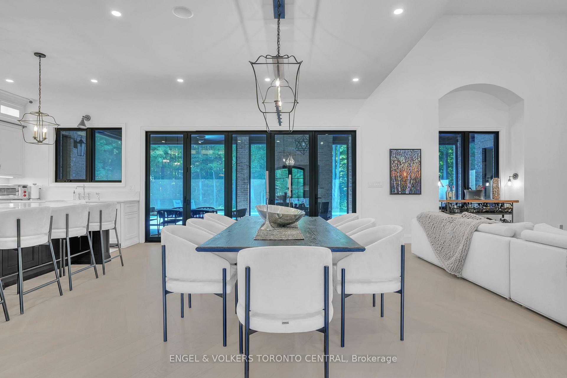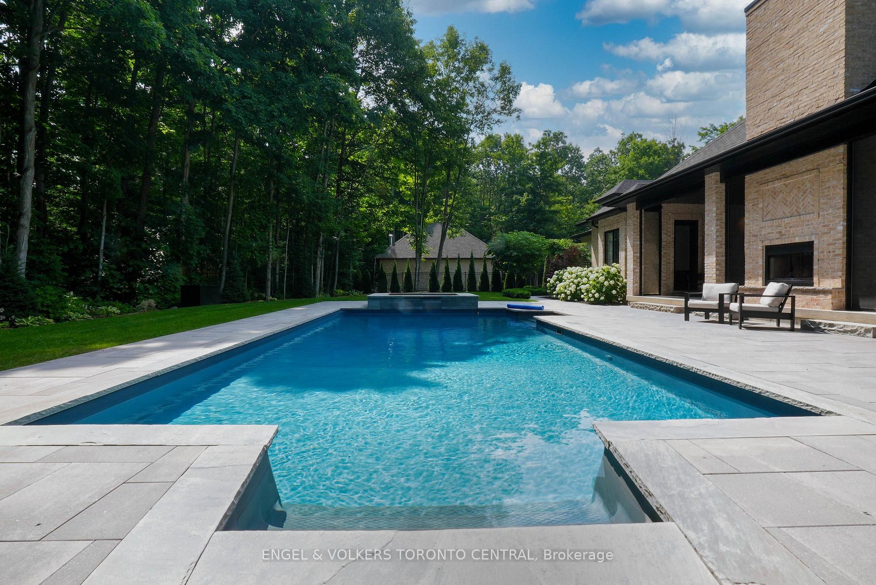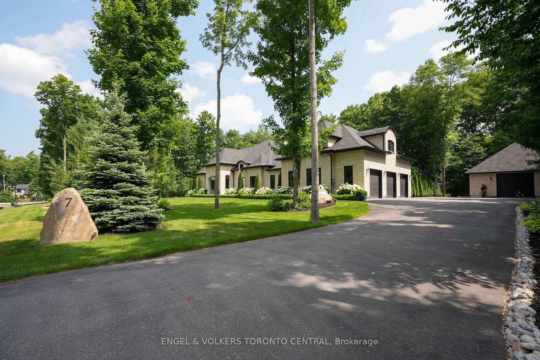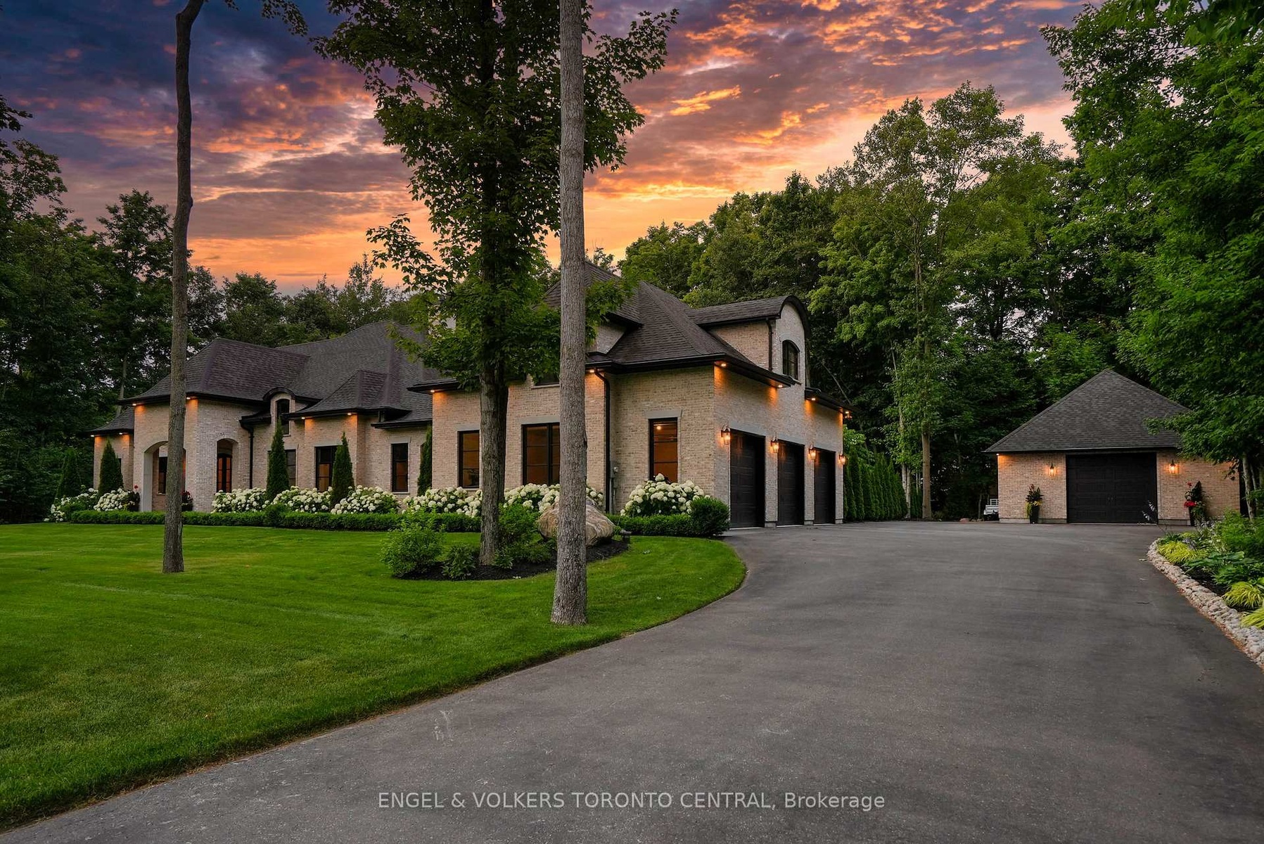 Welcome to 7 Apto Court in prestigious Apto Glen Estates, Springwater. This spectacular custom-built home is set on a private, naturally treed 1.48-acre lot on a quiet court, offering approximately 4,800 sq. ft. of beautifully finished living space. Designed for both luxury and functionality, the home features soaring 10-foot ceilings, a stunning blend of handmade clay brick, heated ceramic floors, and white oak hardwood throughout, along with a thoughtfully designed main floor layout and a versatile loft/nanny suite.The gourmet kitchen is complemented by high-end cabinetry, premium countertops, top-of-the-line appliances, and a spacious walk-in pantry, flowing seamlessly into elegant living spaces anchored by a gas fireplace. The fully finished lower level offers additional living space with radiant in-floor heating, including a home office, games room, and separate entrance, ideal for extended family or guests.Outdoor living is equally impressive, featuring a heated 18' x 36' saltwater pool, inground spa, double-sided wood-burning fireplace, and power outdoor screens, creating a true resort-style setting. Additional highlights include oversized garage doors, a separate heated shop building, custom closets, and a fully fenced yard. A rare opportunity to own a private estate property in one of Springwater's most sought-after communities.