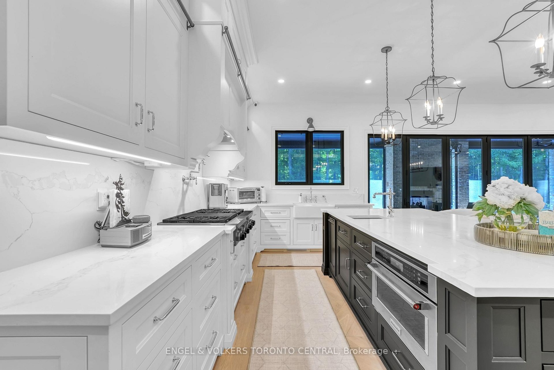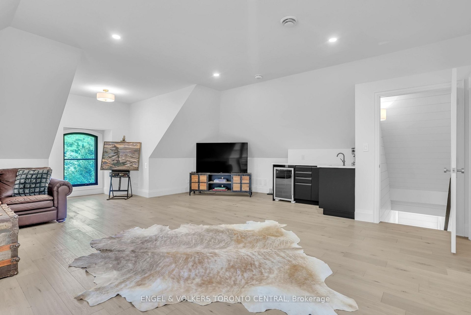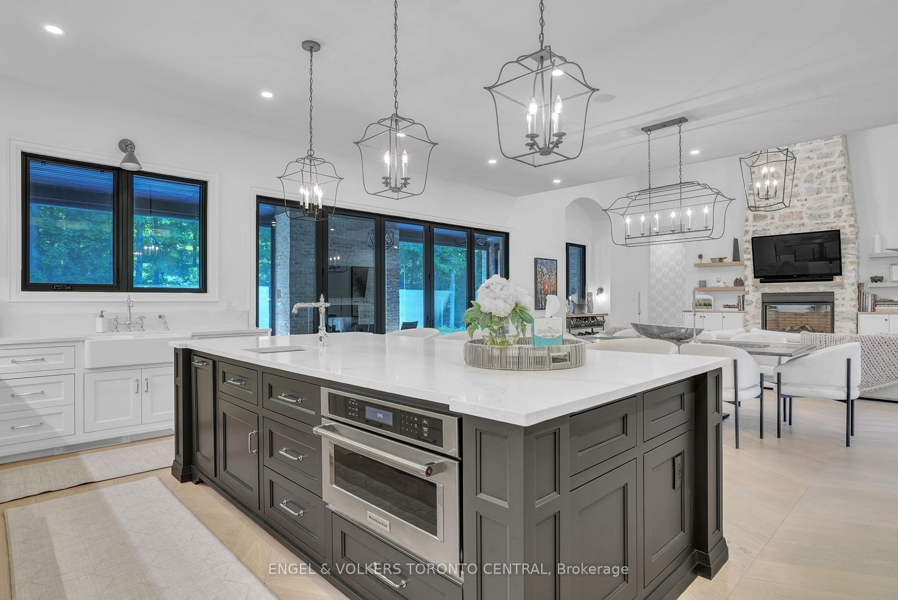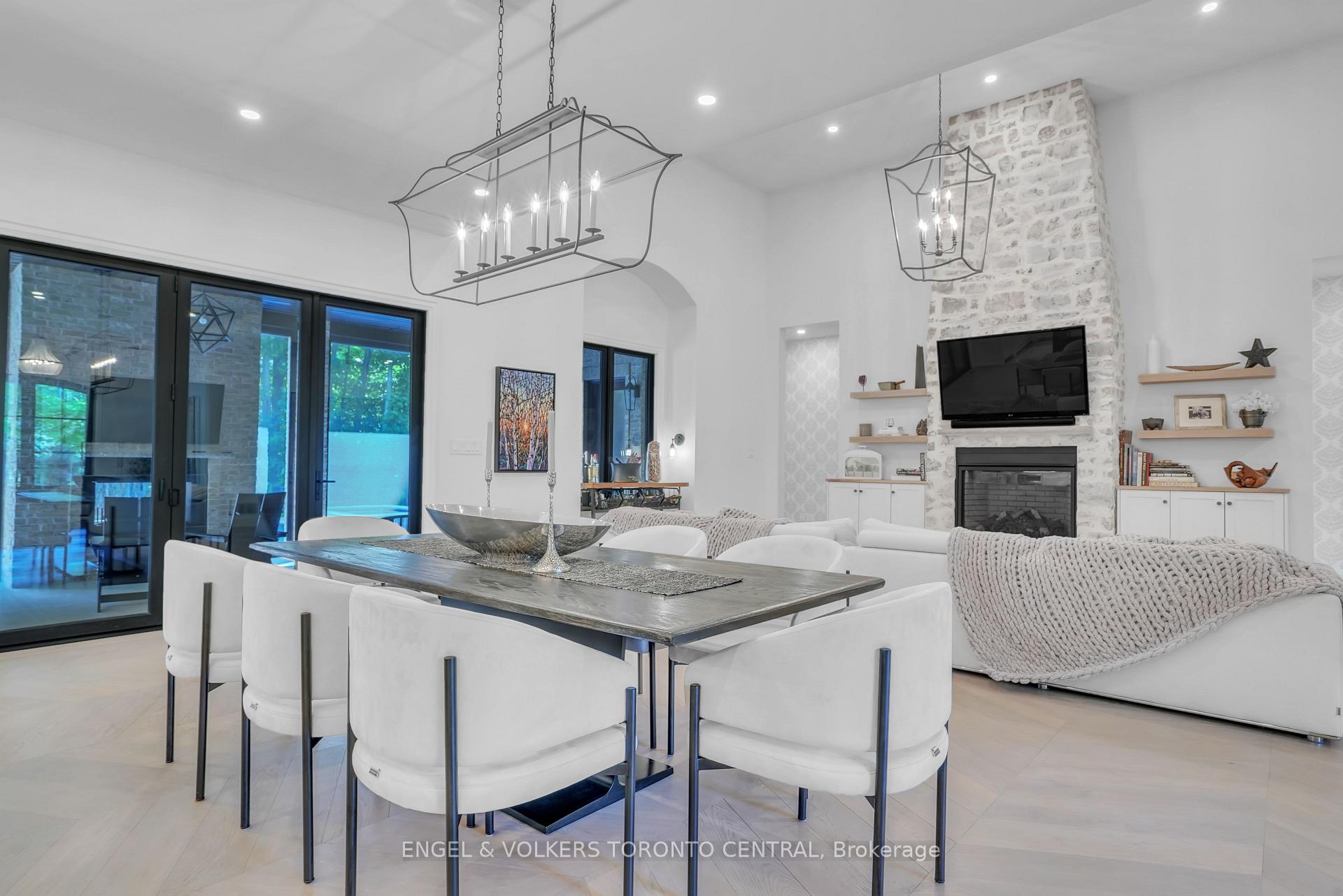 Welcome to 7 Apto Court in prestigious Apto Glen Estates, Springwater. This spectacular custom-built home is set on a private, naturally treed 1.48-acre lot on a quiet court, offering approximately 4,800 sq. ft. of beautifully finished living space. Designed for both luxury and functionality, the home features soaring 10-foot ceilings, a stunning blend of handmade clay brick, heated ceramic floors, and white oak hardwood throughout, along with a thoughtfully designed main floor layout and a versatile loft/nanny suite.The gourmet kitchen is complemented by high-end cabinetry, premium countertops, top-of-the-line appliances, and a spacious walk-in pantry, flowing seamlessly into elegant living spaces anchored by a gas fireplace. The fully finished lower level offers additional living space with radiant in-floor heating, including a home office, games room, and separate entrance, ideal for extended family or guests.Outdoor living is equally impressive, featuring a heated 18' x 36' saltwater pool, inground spa, double-sided wood-burning fireplace, and power outdoor screens, creating a true resort-style setting. Additional highlights include oversized garage doors, a separate heated shop building, custom closets, and a fully fenced yard. A rare opportunity to own a private estate property in one of Springwater's most sought-after communities.