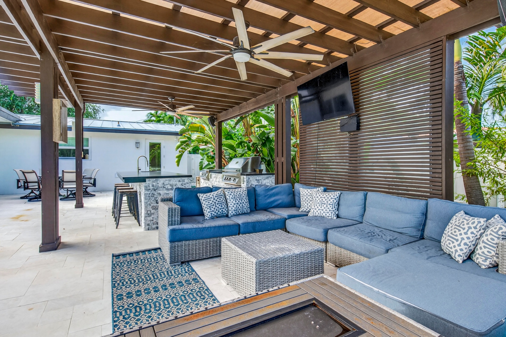 Exquisite 2 bed/2 bath waterfront pool home with a 2 car garage, located in the quiet Gated neighborhood of Bal Harbour, Fort Lauderdale! Step outside and you'll find the ultimate outdoor waterfront experience with a large pergola, complete with a full outdoor luxury kitchen & seating area with Bose Speakers and TV providing a relaxing space to enjoy your favorite shows or sports under the open sky! Sunroom off the master bedroom offers a peaceful retreat to relax, and a full work space. Convenience is at your doorstep, with Whole Foods, Trader Joe's, and Publix just a stone's throw away. The vibrant Las Olas district, beautiful beaches, and all that Fort Lauderdale has to offer are within close proximity. Home is available for short term rental up until 12/31/2026.