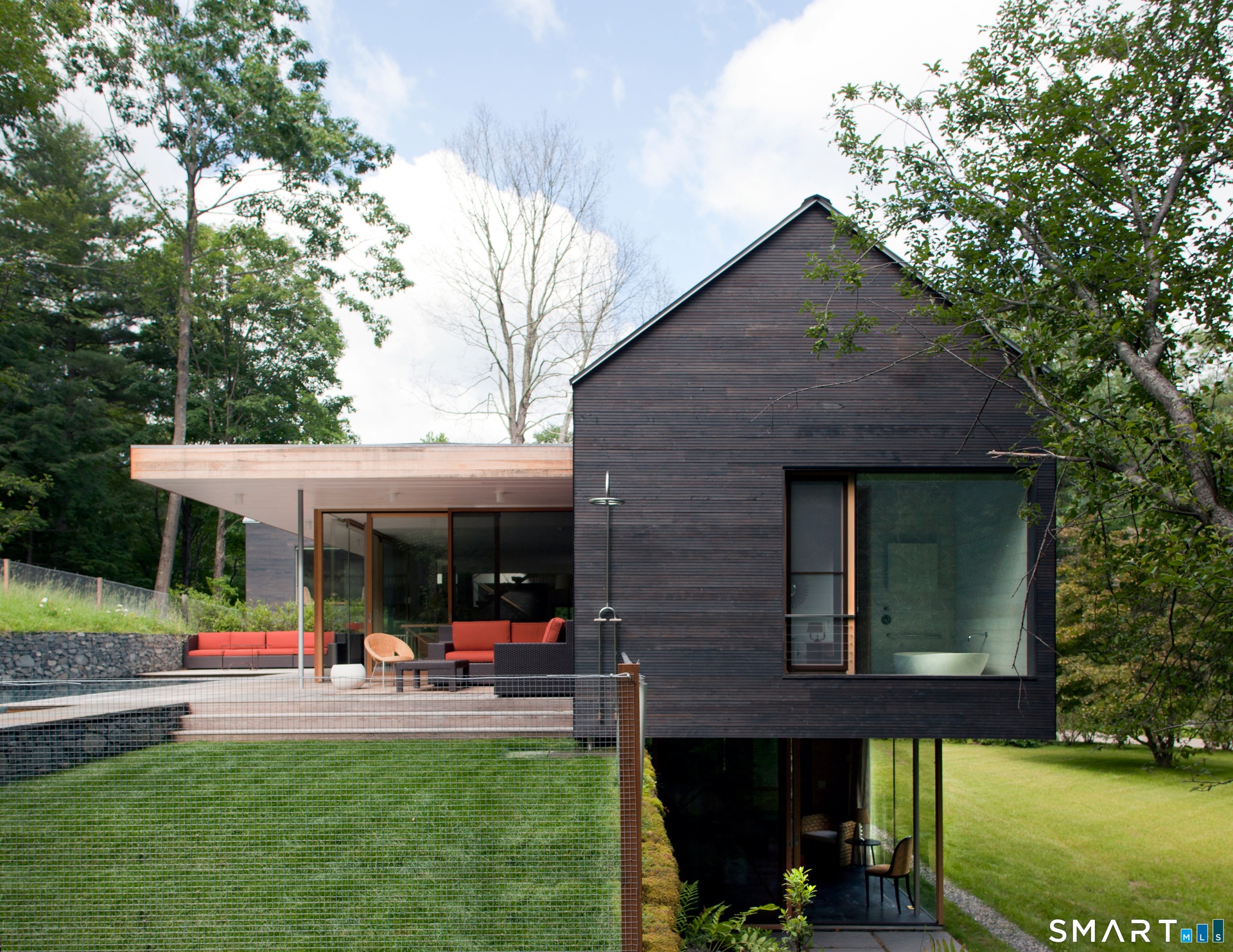 The Depot House. Modern Masterpiece with in ground Gunite pool overlooking a lush level lawn leading down to the Bantam River.