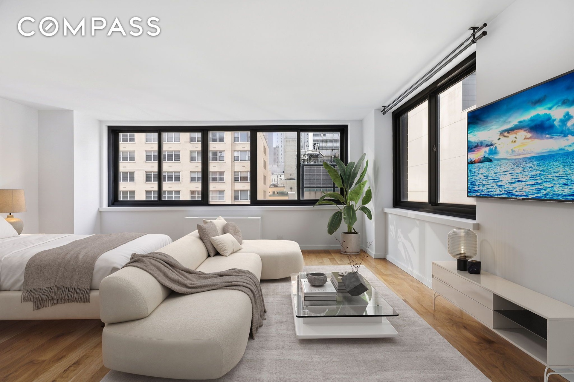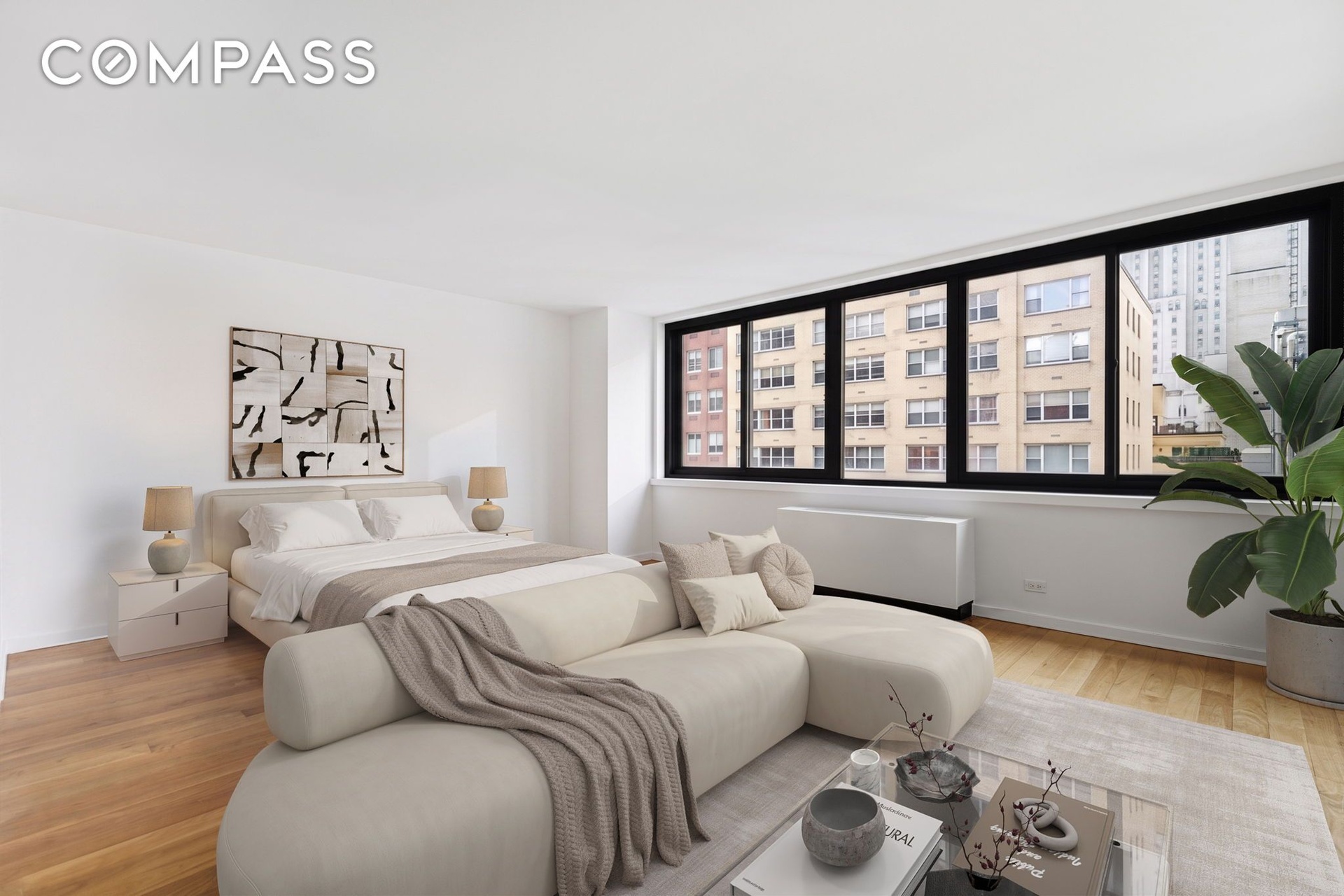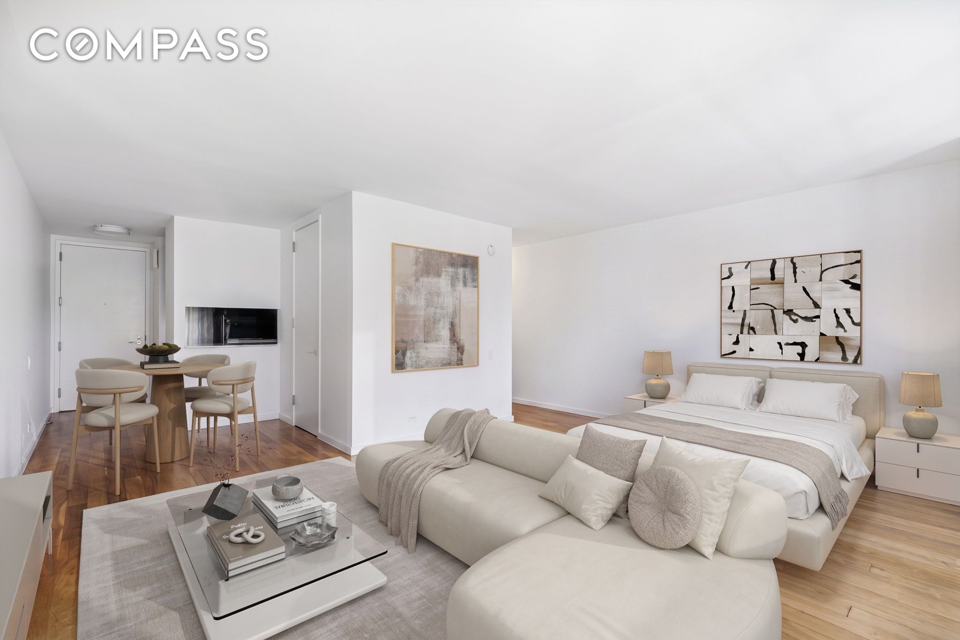 Residence 11E offers a rare combination at 515 East 72nd Street: an alcove studio with south and west exposures, 10-foot ceilings, and a high-floor position that delivers real city views.