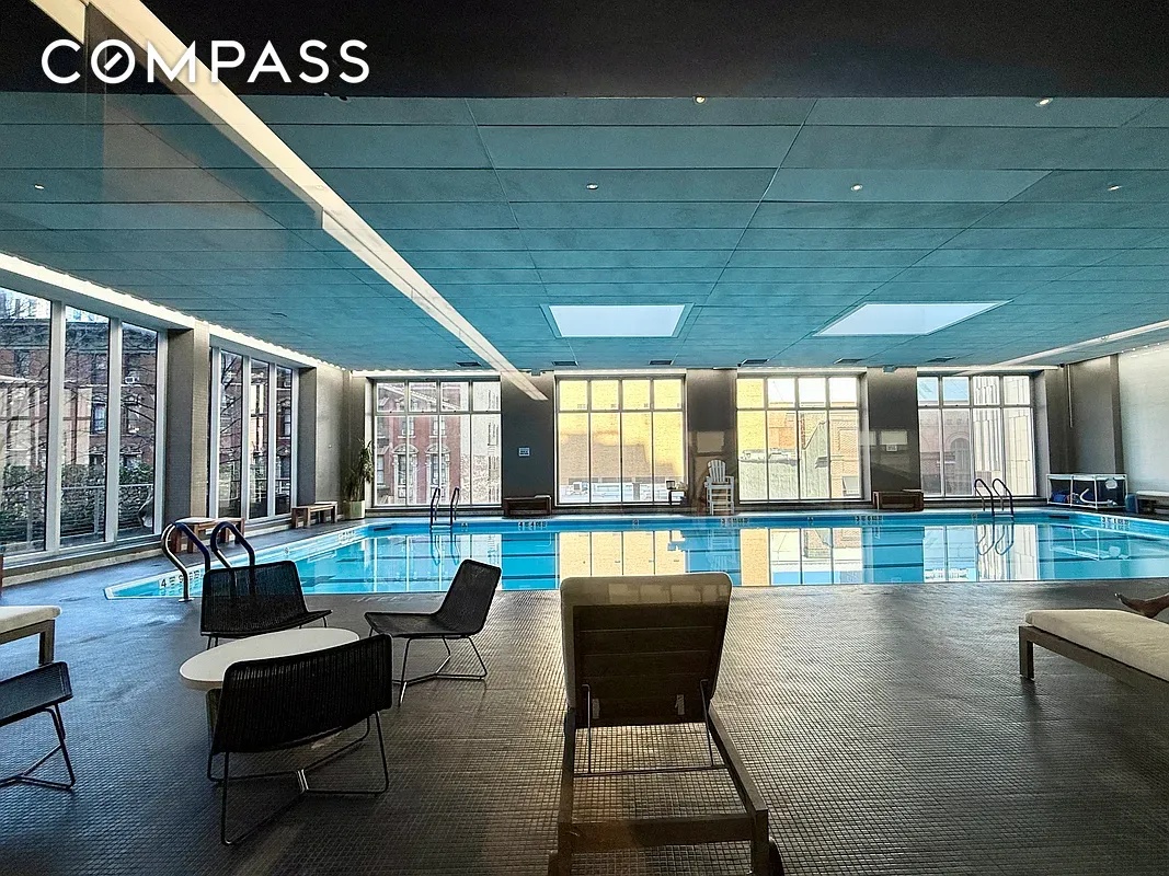 Designed by Bonetti/Kozerski and converted in 2006, 515 East 72nd Street is a 41-story full-service condominium with 40,000 square feet of amenities inspired by Miraval Spa. The package includes a 56-foot indoor pool, a state-of-the-art fitness center with rock climbing wall and basketball court, a private spa, two Jacuzzis, a creative arts studio, playroom, game and billiards lounge with catering kitchen, cooking classroom, and a half-acre private park — the largest private residential garden in Manhattan when it was completed.