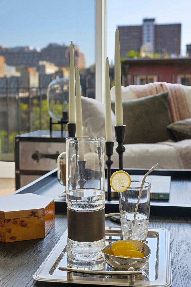 This exceptional Chelsea townhouse penthouse duplex opens to remarkable light, volume, and sweeping views over West Chelsea's historic rooftops.