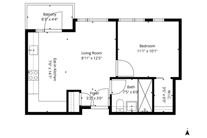 Residence 4B is a thoughtfully designed one bedroom home with a private balcony, floor-to-ceiling windows, and open north and east exposures that bring in consistent natural light throughout the day.