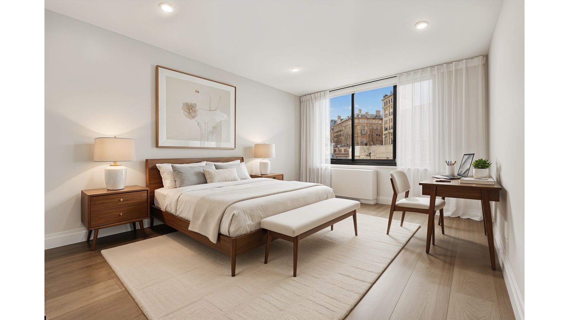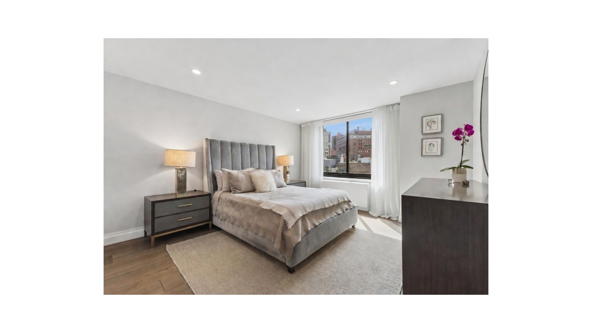 This pristine three-bedroom, two-and-a-half-bathroom residence has undergone a comprehensive, top-tier renovation, seamlessly blending timeless elegance with modern sophistication. Every element has been thoughtfully upgraded, including new electrical and plumbing systems, state-of-the-art HVAC, wide-plank flooring, floor-to-ceiling solid core doors, and integrated LED lighting with dimmable controls throughout. A discreet in-unit washer and dryer complete the home's modern conveniences.