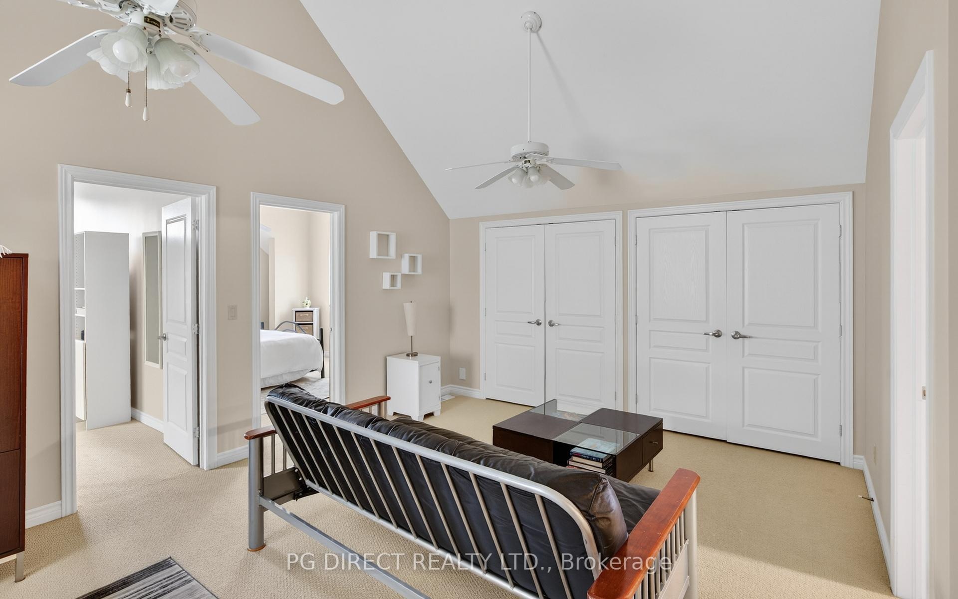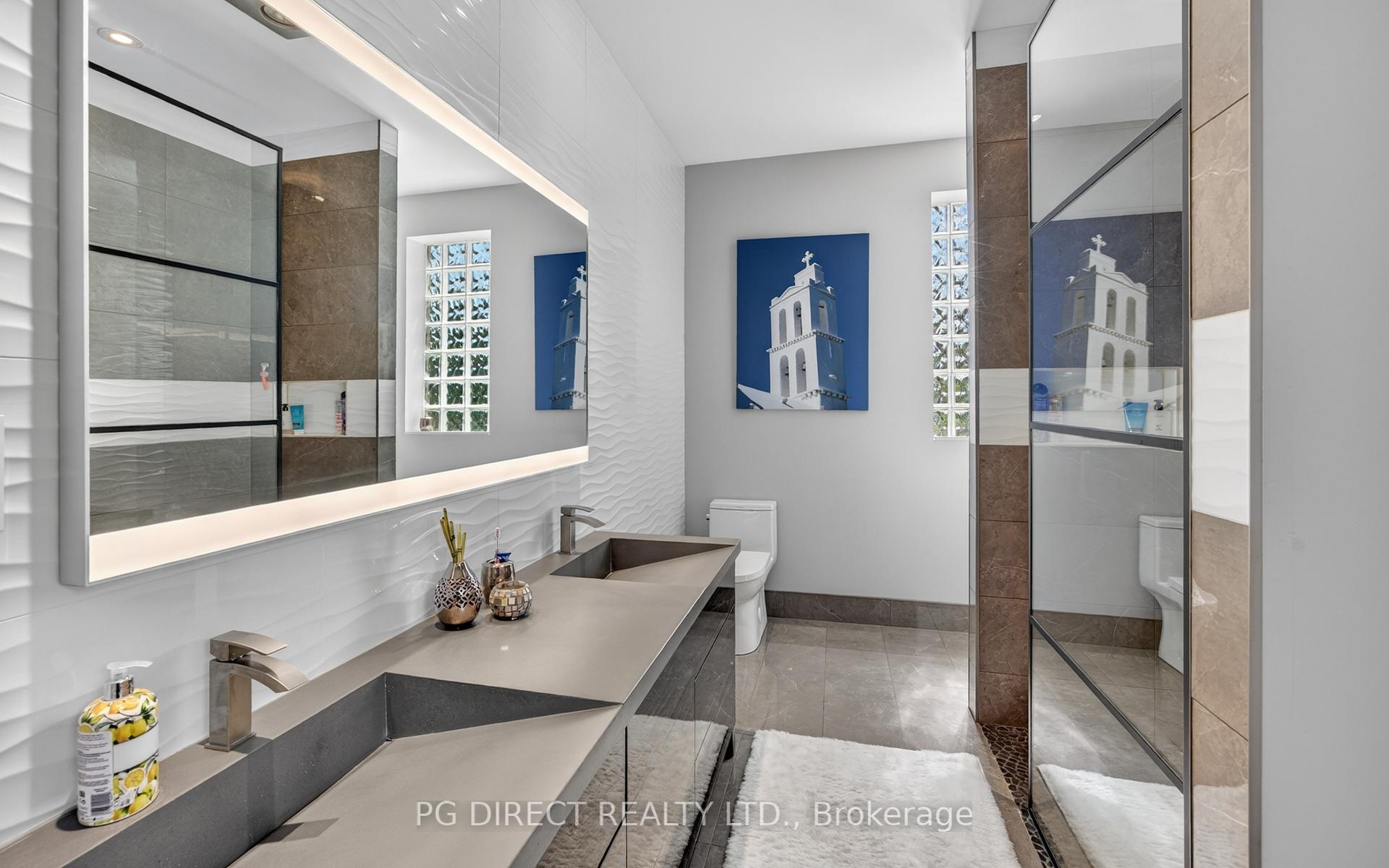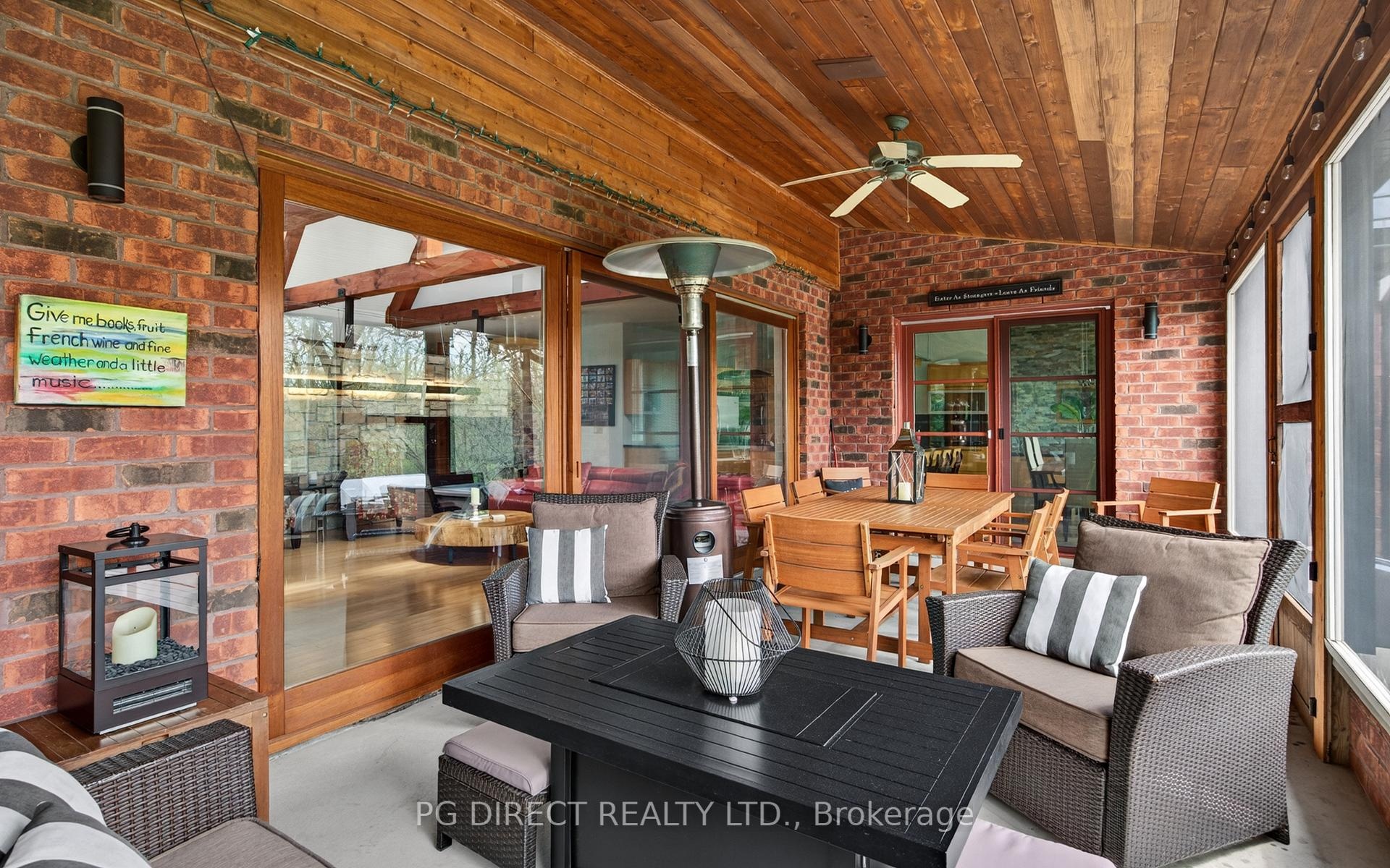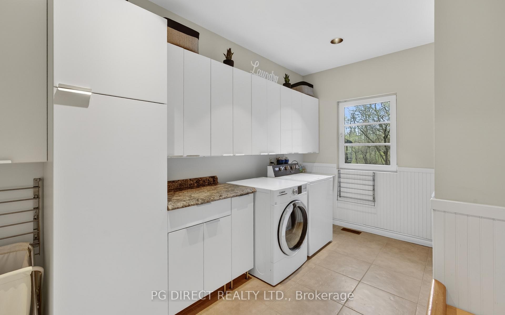 Visit REALTOR website for additional information. Luxury Country Living Discover a rare opportunity to own a custom home design & built home perfectly situated on a private, picturesque acre lot. The rear half-acre gently slopes down to a tranquil creek, offering serene views and unmatched privacy. Welcoming foyer with dramatic art wall and spacious living room ideal for entertaining. In-floor heating of all tile surfaces. Modern kitchen featuring a double oven, convection cooktop, upright fridge & freezer, lärge custom sink, bright dining area with double doors to screened porch. Pantry & laundry room conveniently located. Stylish single bathroom for guests. Private primary bedroom suite with glass wall & sliding door for direct access to screen porch with sunken hot tub. Ensuite bathroom, den with gas fireplace and soaring 16' ceiling. Outdoor Living includes a large screened porch overlooking the rolling hill, outdoor kitchen with both charcoal and gas barbecues. Peaceful natural setting with mature trees and creek views. Upper Level above garage has an expansive living area with extensive in-wall storage, 3 designer bedrooms, all with 16' ceilings, separate3-piece bathroom & dedicated storage room.
