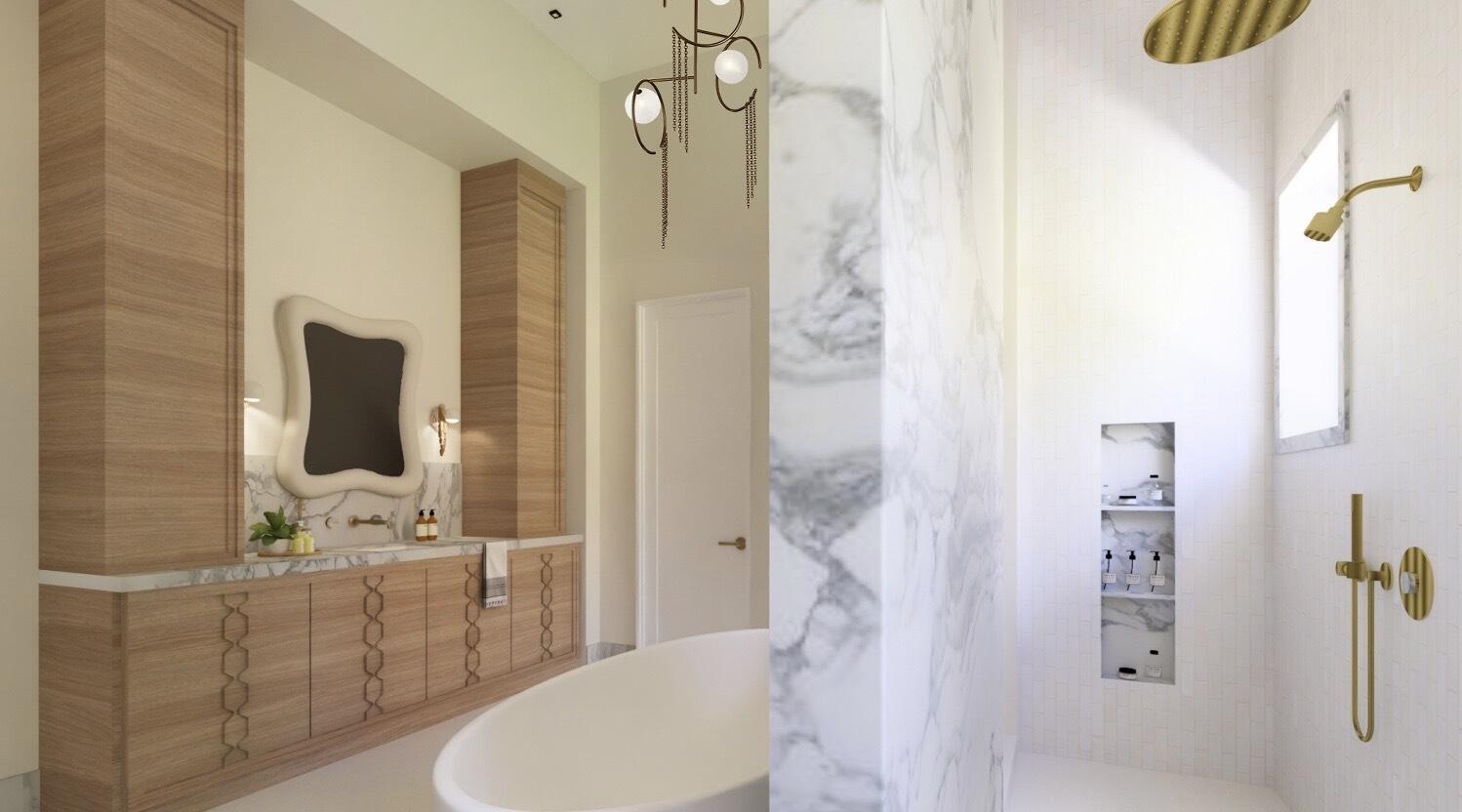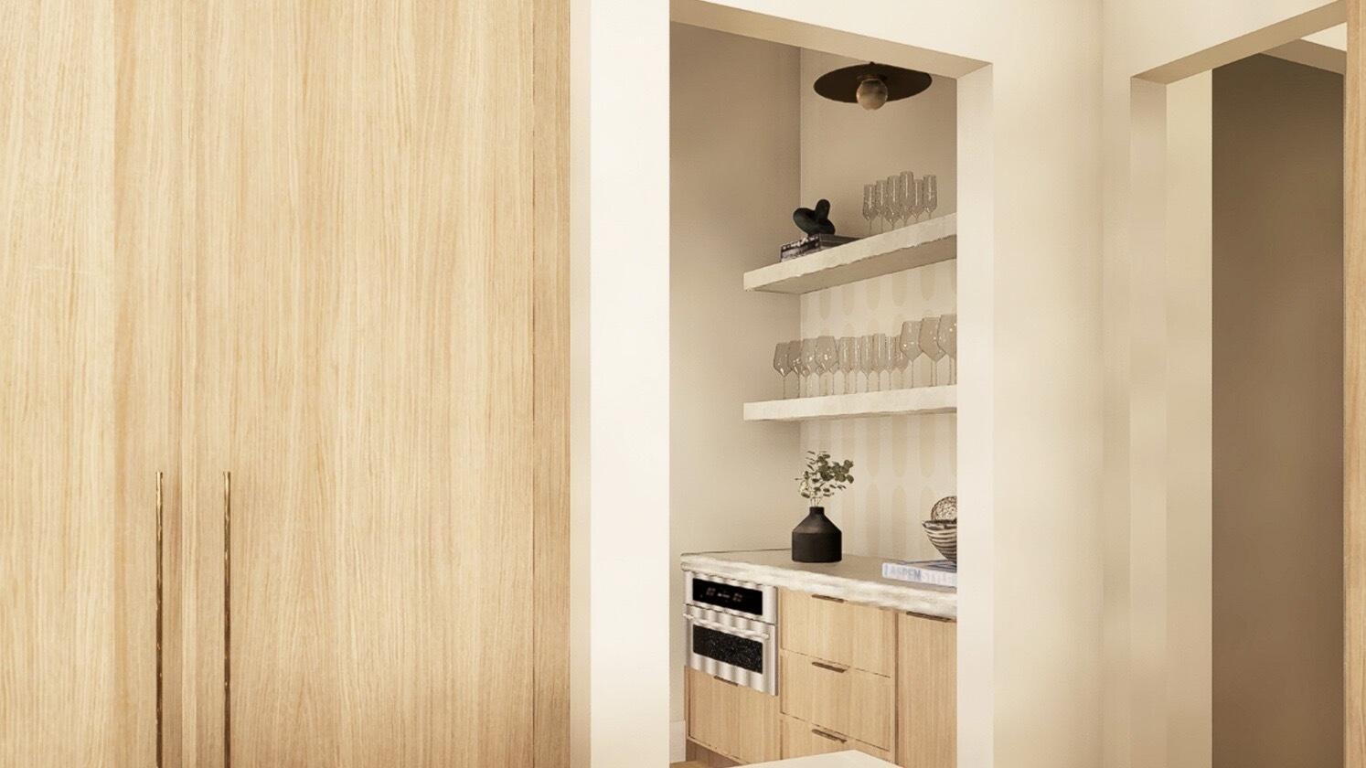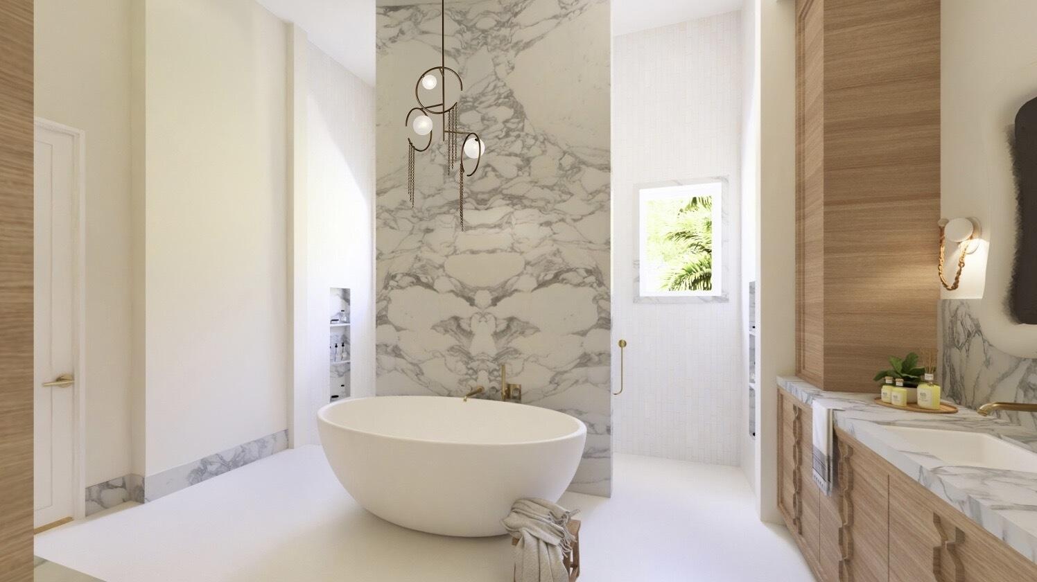 White oak hardwood flooring runs throughout the home, paired with single-panel shaker interior doors for a clean, timeless look. The kitchen features Spiaggia marble countertops and backsplash, a limewashed hood, and a full Thermador appliance package (most being panel-ready), including a 6-burner range with griddle, double wall ovens, pot filler, and pendant lighting. The chef's pantry is outfitted with a Thermador microwave, JennAir ice maker, dedicated spice and knife storage, and ample shelving. The primary bathroom features Arabescato Corchia marble throughout, including countertops, backsplash, casing, baseboards, niches, and the feature wall behind the tub. Dulcet tile flooring and a separate tub and shower complete the space. The powder bath includes limewashed walls, brass inlay detailing, Calacatta Vagli Oro honed marble, a fluted wood vanity, and more! The mudroom is finished with waterjet tile flooring, a flush-mount light, and custom millwork with integrated rolled handles. The laundry room includes a GE washer and dryer, a workstation sink, fluted Crema Bianco quartzite countertops, and a reclaimed clay brick herringbone backsplash and flooring. The outdoor kitchen includes a Lynx 36" built-in grill with infrared burners and rotisserie, a Lynx single side burner, a 24" panel-ready ice maker, a 24" Lynx outdoor refrigerator, a utility sink with pull-down faucet, Dekton "Lunar" countertops, a satin marble tile backsplash, and a range hood.