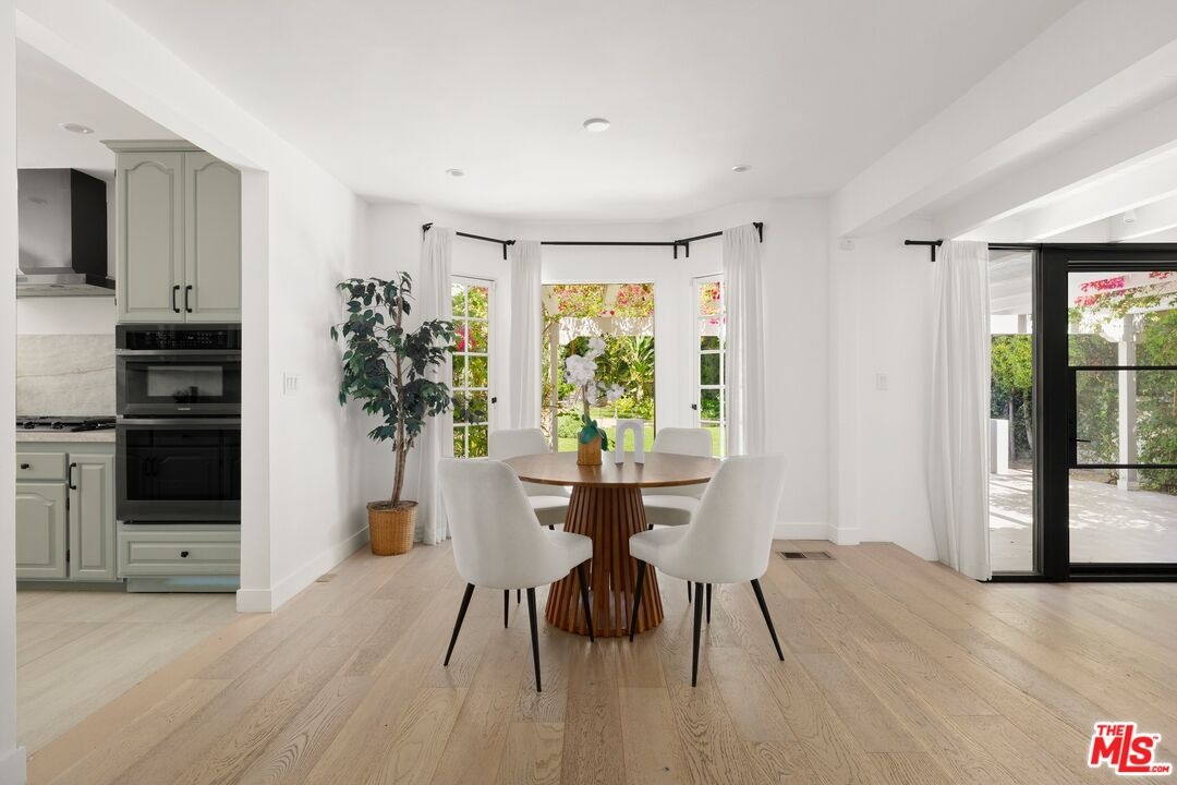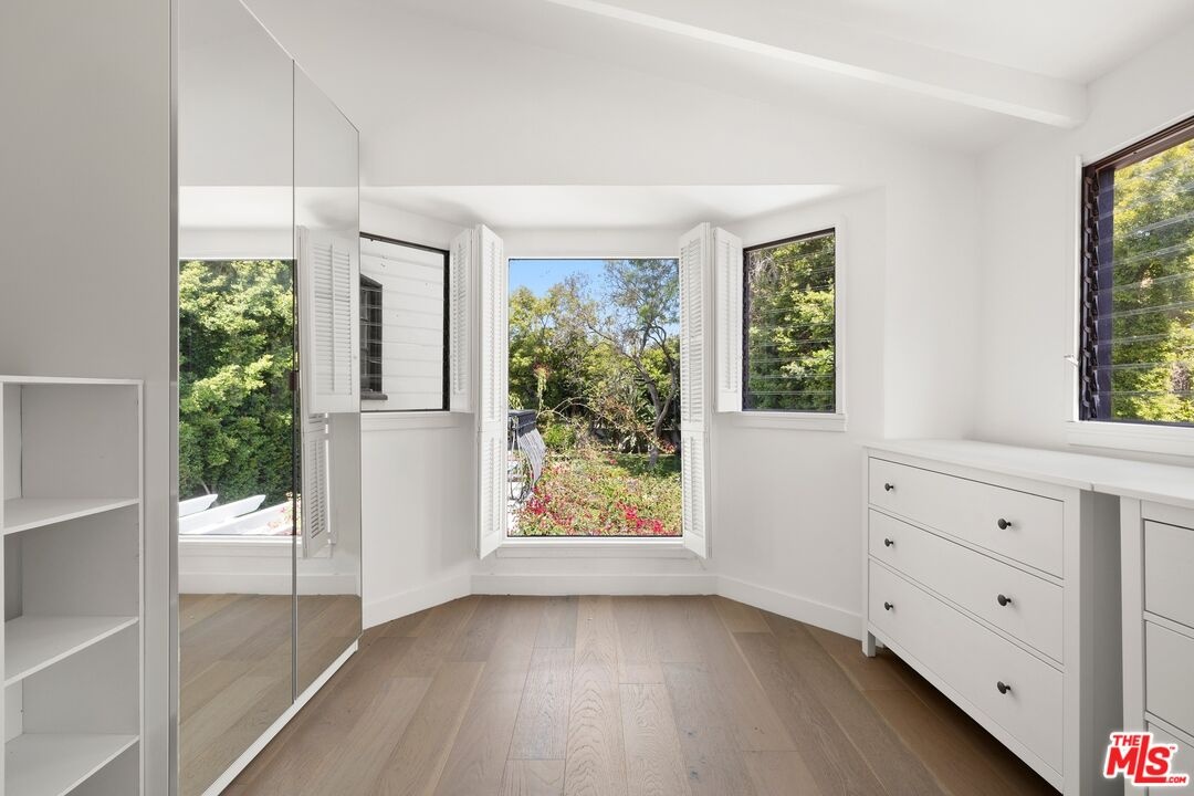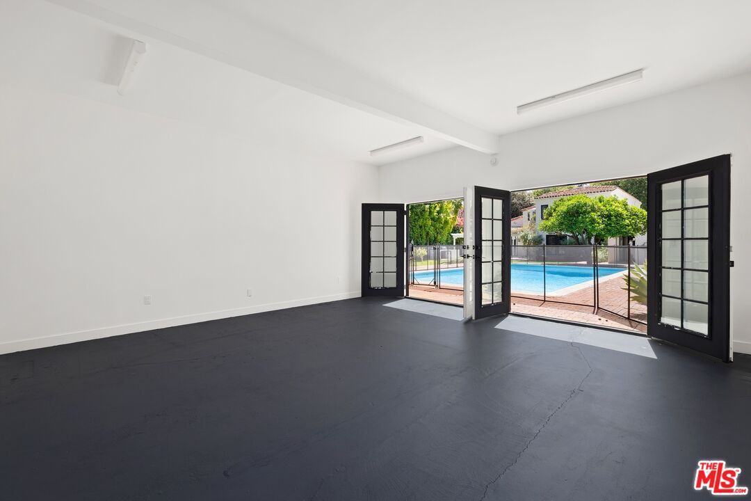 A beautifully reimagined Spanish on coveted Rodeo Drive, set on an expansive nearly 17,000 sq ft lot. This 5-bedroom, 6-bath residence offers all en-suite bedrooms and a seamless indoor-outdoor flow with walls of glass opening to the grounds. A newly redone kitchen anchors the home, complemented by dedicated formal dining, family, and living rooms. Thoughtfully designed, the layout includes three bedrooms upstairs with a flexible bonus room, two bedrooms on the main level, and a detached studio ideal for a gym, office, or creative space. The park-like setting features a large grassy yard, newly resurfaced pool, and ample parking with a driveway and garage.