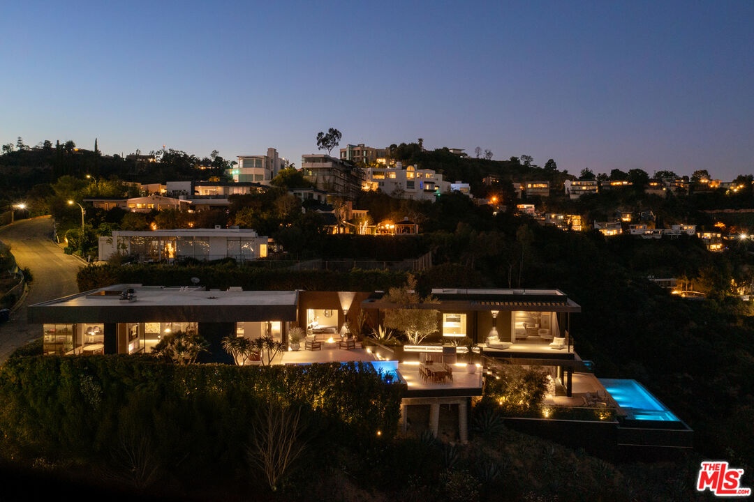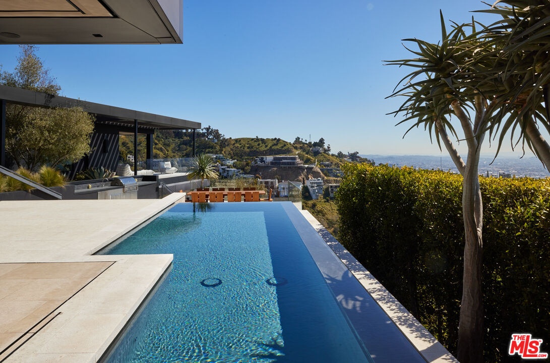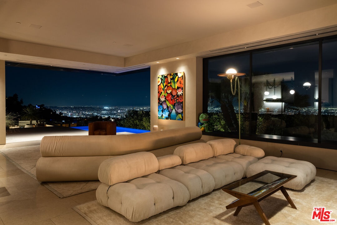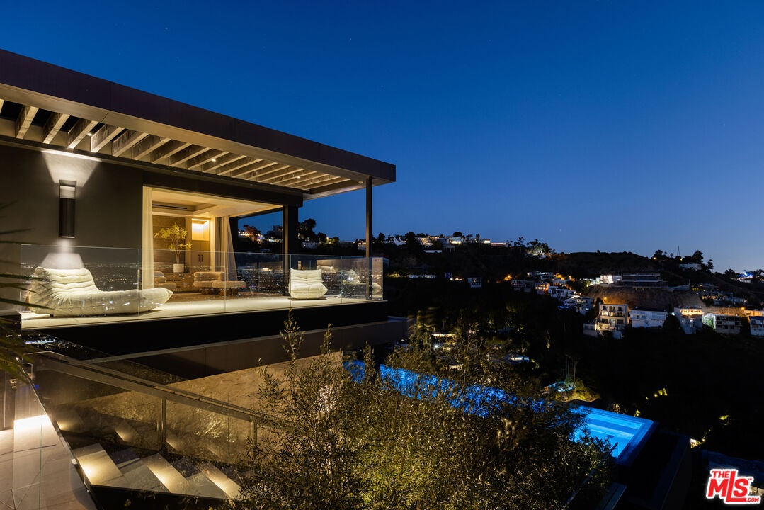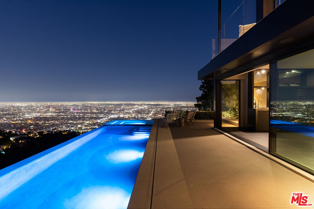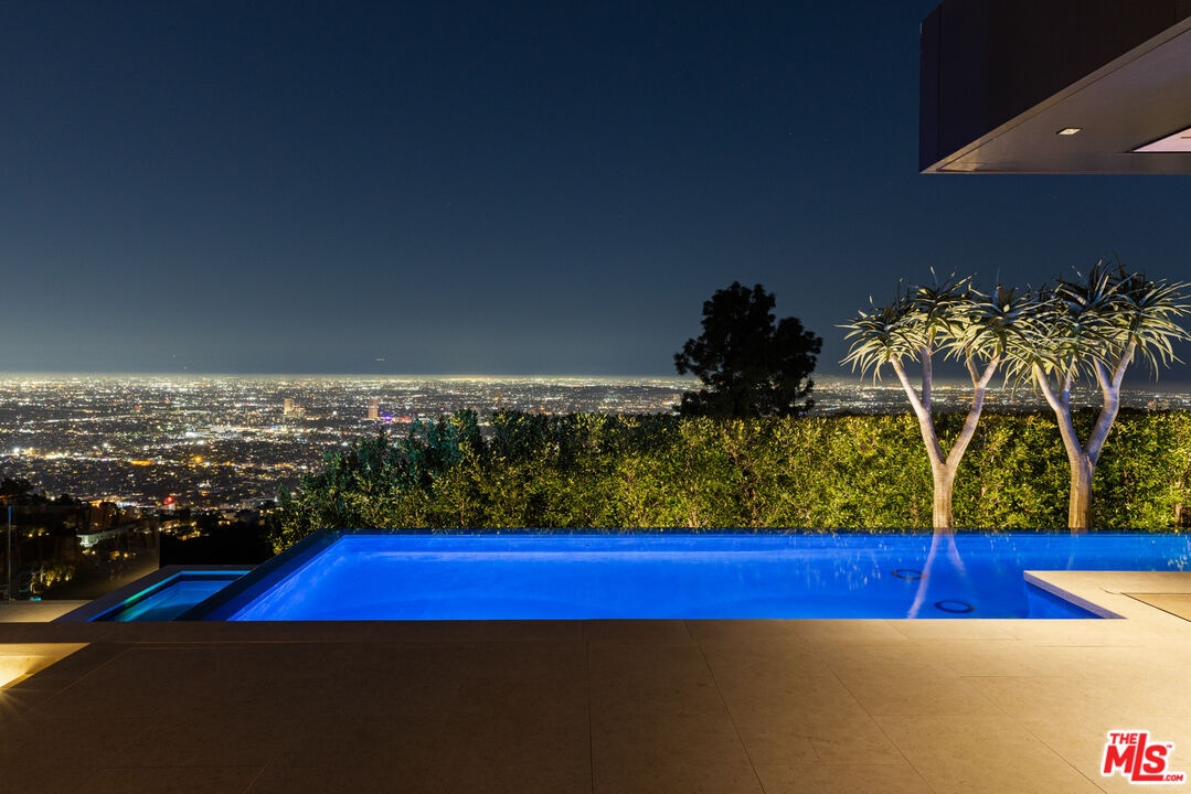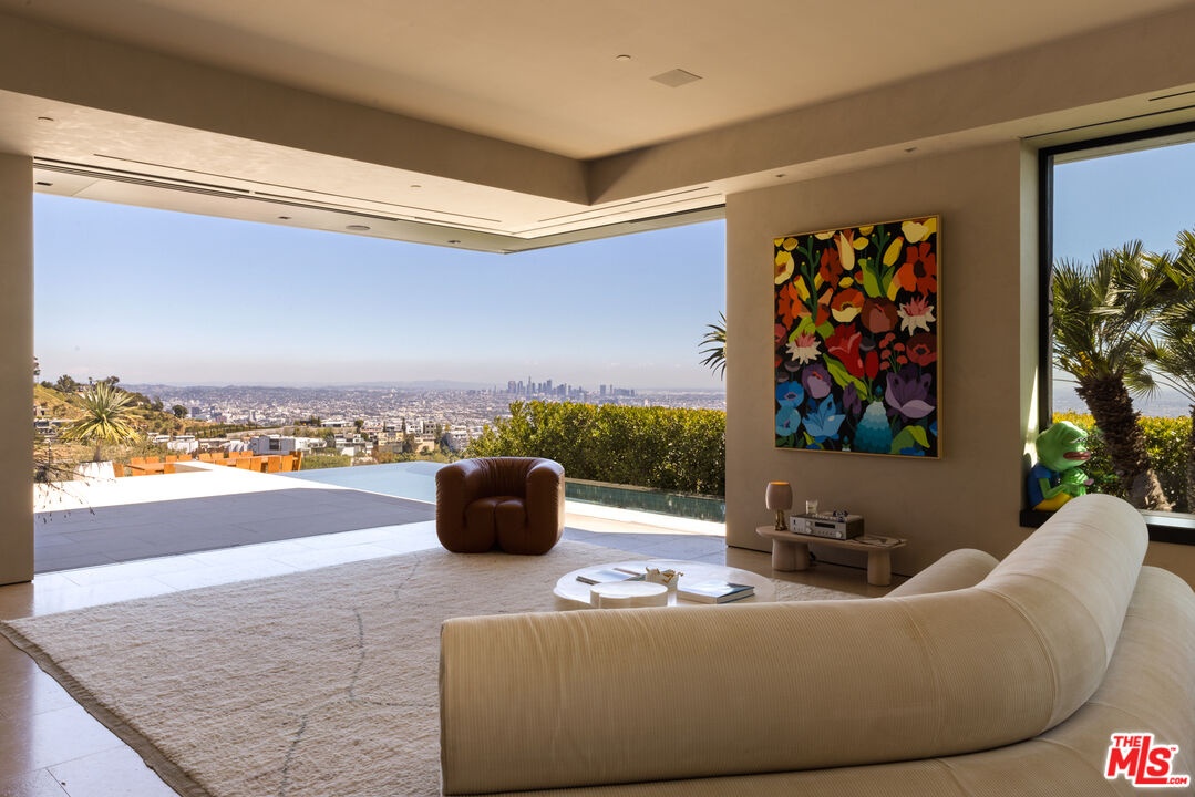 1616 Blue Jay Way is an architectural triumph by Boswell Construction perched in the prestigious Bird Streets. Meticulously crafted over five years, this singular contemporary estate redefines modern luxury, fusing visionary design with sophistication, advanced technology, and unrivaled craftsmanship. Spanning approximately 5,000 square feet, the residence includes four bedrooms and four and a half bathrooms, each space thoughtfully curated to elevate comfort and aesthetic. Throughout the home, travertine stone, hand-applied Venetian plaster, and designer custom finishes blend harmoniously with bespoke furnishings, creating an atmosphere of refined elegance and timeless appeal. The home's elevated position gives the sensation of floating above the city, offering complete privacy and sweeping 180-degree views that stretch from the shimmering LA basin and downtown skyline all the way to the Pacific Ocean. Two striking infinity-edge pools and effortless indoor-outdoor flow create the perfect setting for memorable gatherings, all against the backdrop of city lights and sweeping hillside views. The primary suite crowns the residence, capturing Jetliner views and providing a tranquil sanctuary above the city's vibrant pulse. Just moments from the iconic Sunset Strip yet tucked into its own private world, 1616 Blue Jay Way is more than a home - it is a statement of art, elegance, and architectural brilliance.