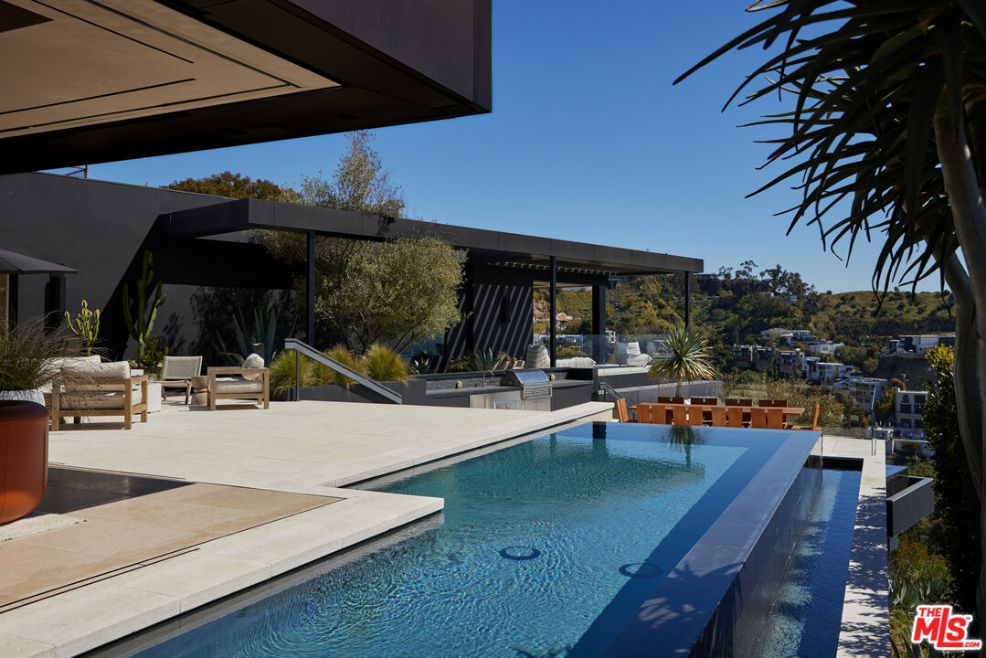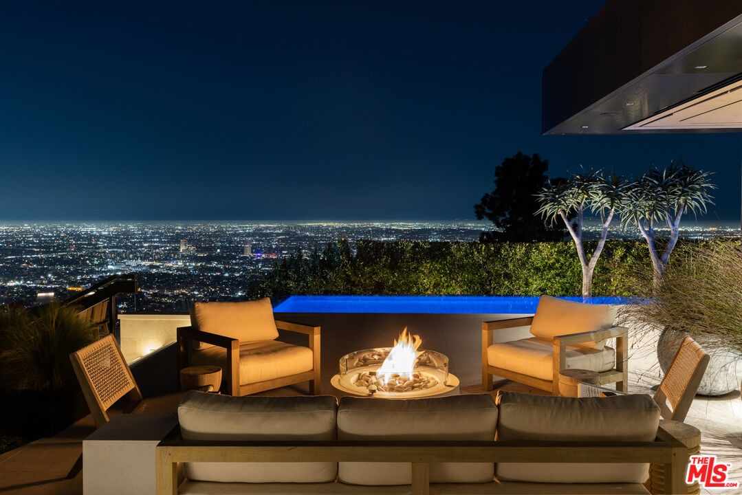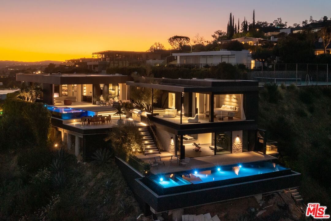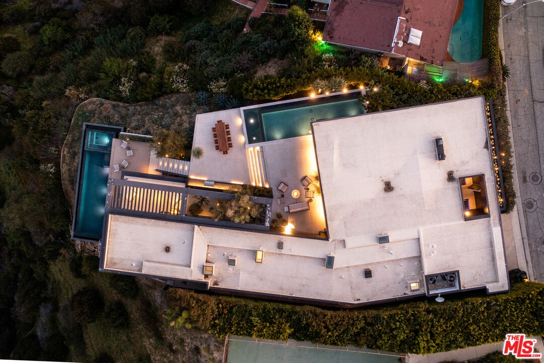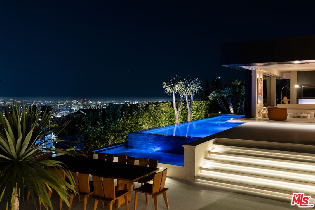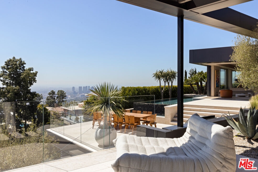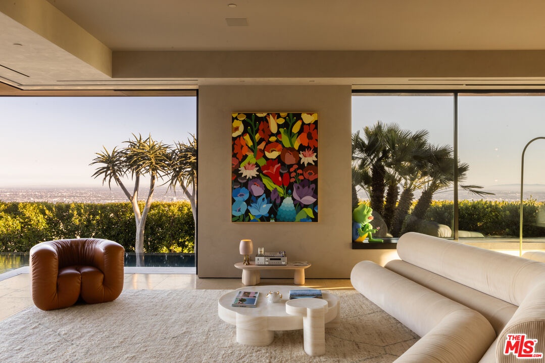 1616 Blue Jay Way is an architectural triumph by Boswell Construction perched in the prestigious Bird Streets. Meticulously crafted over five years, this singular contemporary estate redefines modern luxury, fusing visionary design with sophistication, advanced technology, and unrivaled craftsmanship. Spanning approximately 5,000 square feet, the residence includes four bedrooms and four and a half bathrooms, each space thoughtfully curated to elevate comfort and aesthetic. Throughout the home, travertine stone, hand-applied Venetian plaster, and designer custom finishes blend harmoniously with bespoke furnishings, creating an atmosphere of refined elegance and timeless appeal. The home's elevated position gives the sensation of floating above the city, offering complete privacy and sweeping 180-degree views that stretch from the shimmering LA basin and downtown skyline all the way to the Pacific Ocean. Two striking infinity-edge pools and effortless indoor-outdoor flow create the perfect setting for memorable gatherings, all against the backdrop of city lights and sweeping hillside views. The primary suite crowns the residence, capturing Jetliner views and providing a tranquil sanctuary above the city's vibrant pulse. Just moments from the iconic Sunset Strip yet tucked into its own private world, 1616 Blue Jay Way is more than a home - it is a statement of art, elegance, and architectural brilliance.
