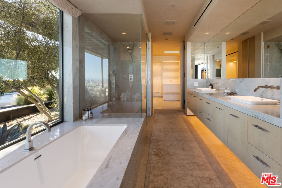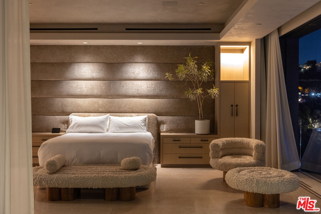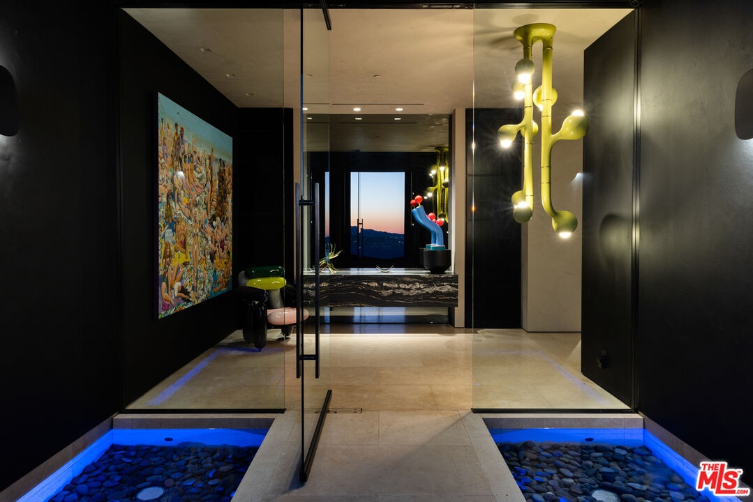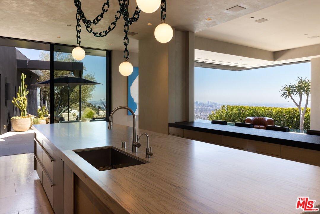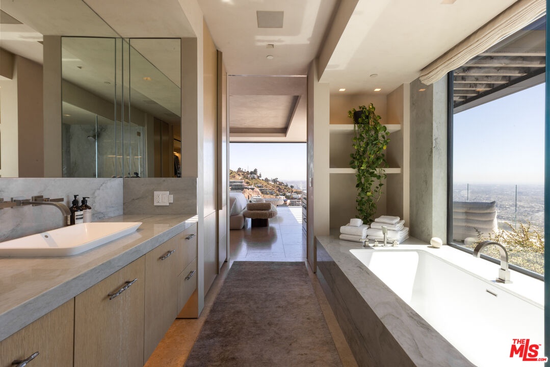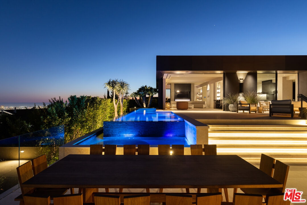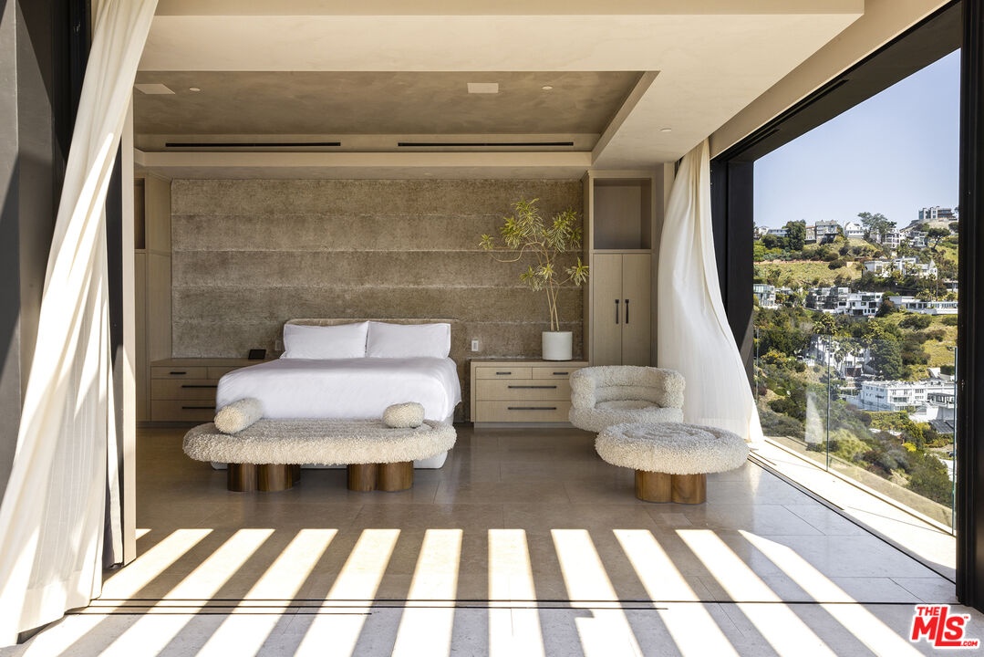 1616 Blue Jay Way is an architectural triumph by Boswell Construction perched in the prestigious Bird Streets. Meticulously crafted over five years, this singular contemporary estate redefines modern luxury, fusing visionary design with sophistication, advanced technology, and unrivaled craftsmanship. Spanning approximately 5,000 square feet, the residence includes four bedrooms and four and a half bathrooms, each space thoughtfully curated to elevate comfort and aesthetic. Throughout the home, travertine stone, hand-applied Venetian plaster, and designer custom finishes blend harmoniously with bespoke furnishings, creating an atmosphere of refined elegance and timeless appeal. The home's elevated position gives the sensation of floating above the city, offering complete privacy and sweeping 180-degree views that stretch from the shimmering LA basin and downtown skyline all the way to the Pacific Ocean. Two striking infinity-edge pools and effortless indoor-outdoor flow create the perfect setting for memorable gatherings, all against the backdrop of city lights and sweeping hillside views. The primary suite crowns the residence, capturing Jetliner views and providing a tranquil sanctuary above the city's vibrant pulse. Just moments from the iconic Sunset Strip yet tucked into its own private world, 1616 Blue Jay Way is more than a home - it is a statement of art, elegance, and architectural brilliance.