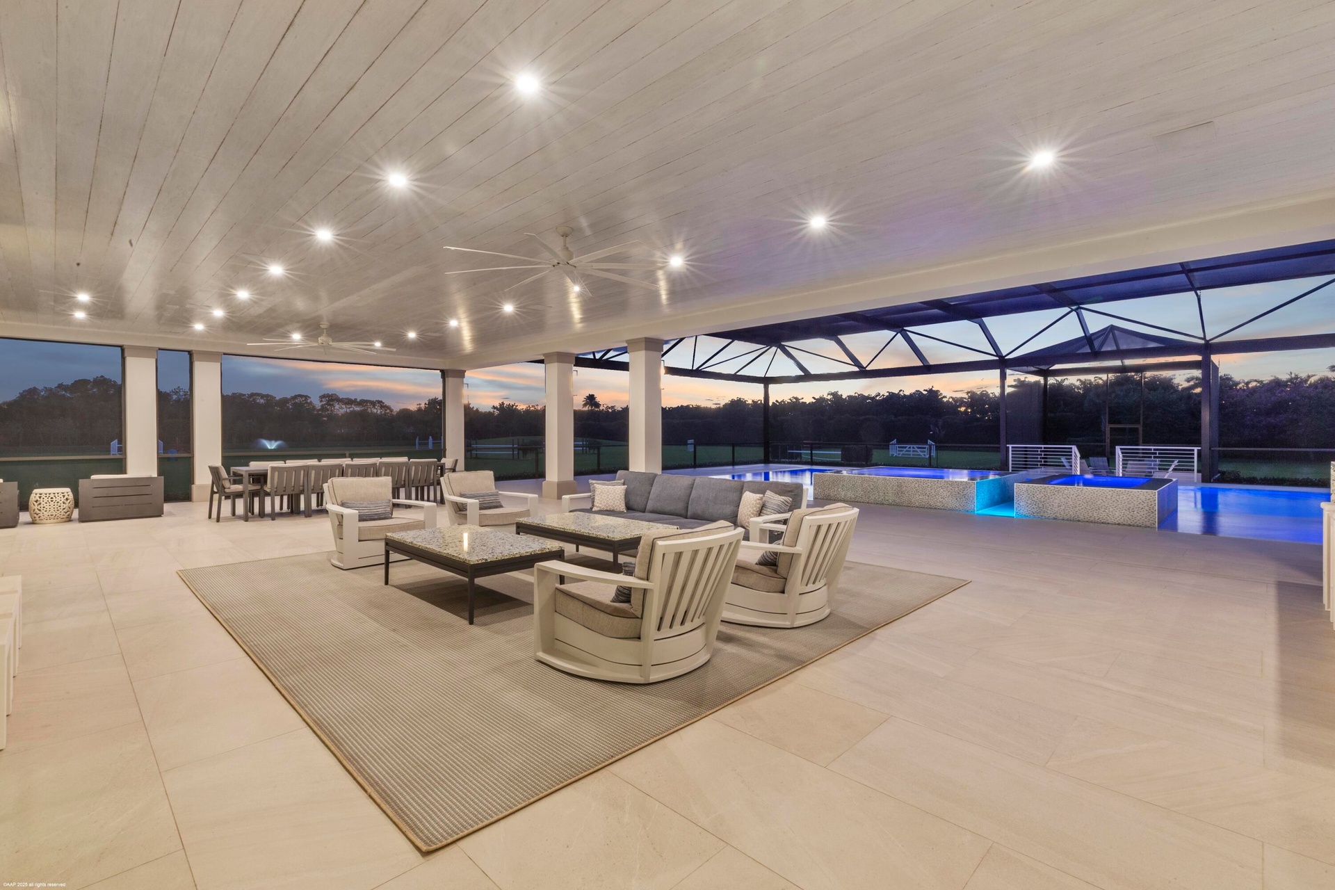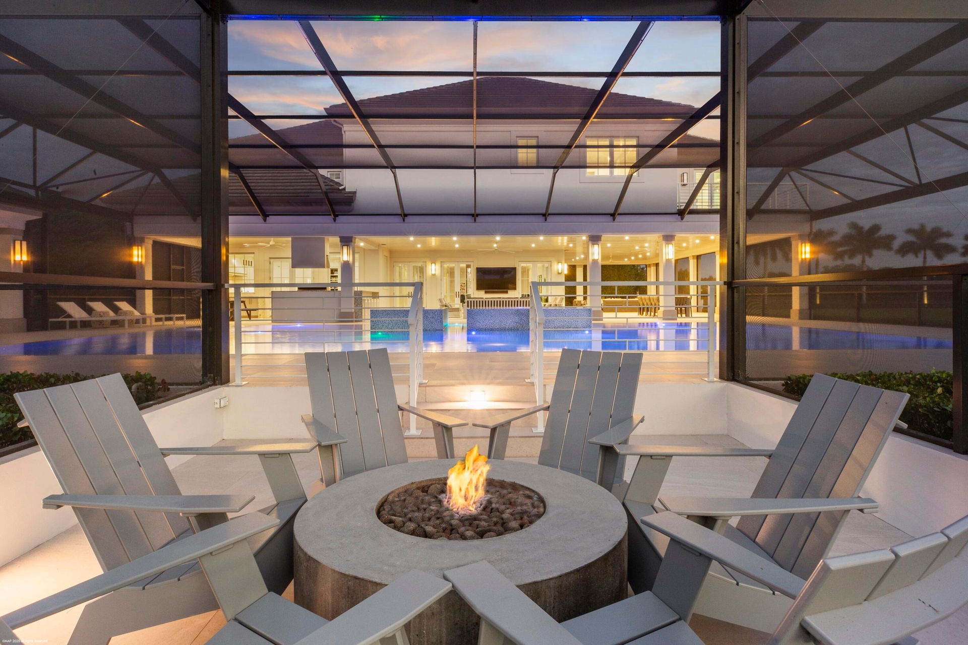 - Outdoor fire pit at screened pool area