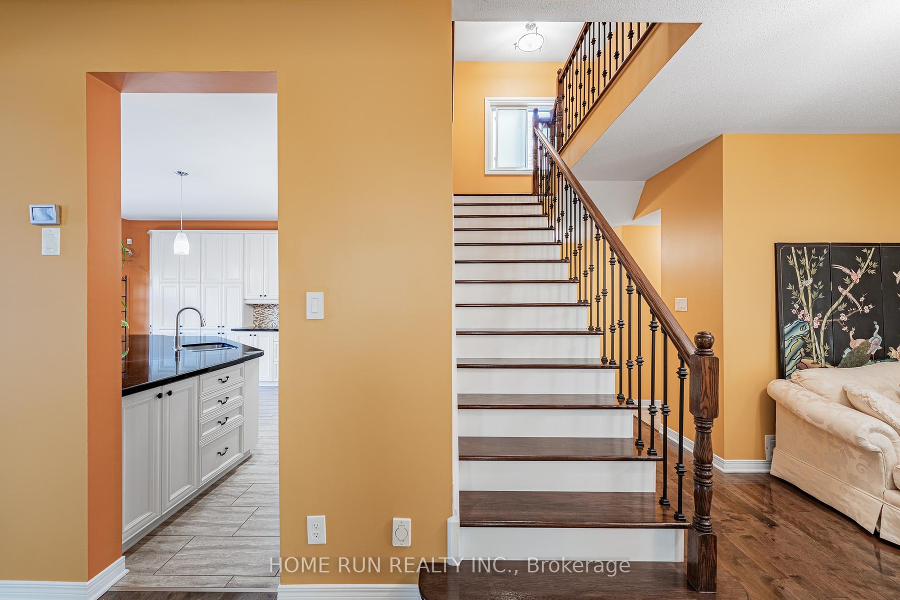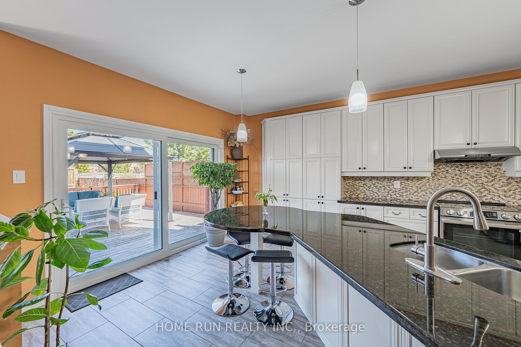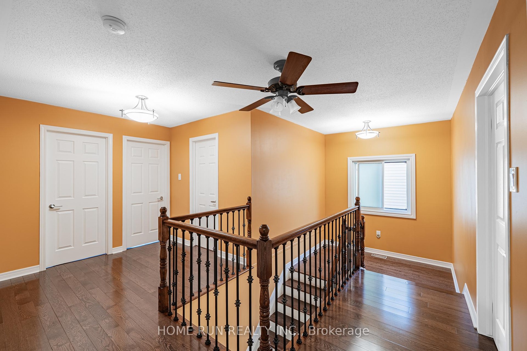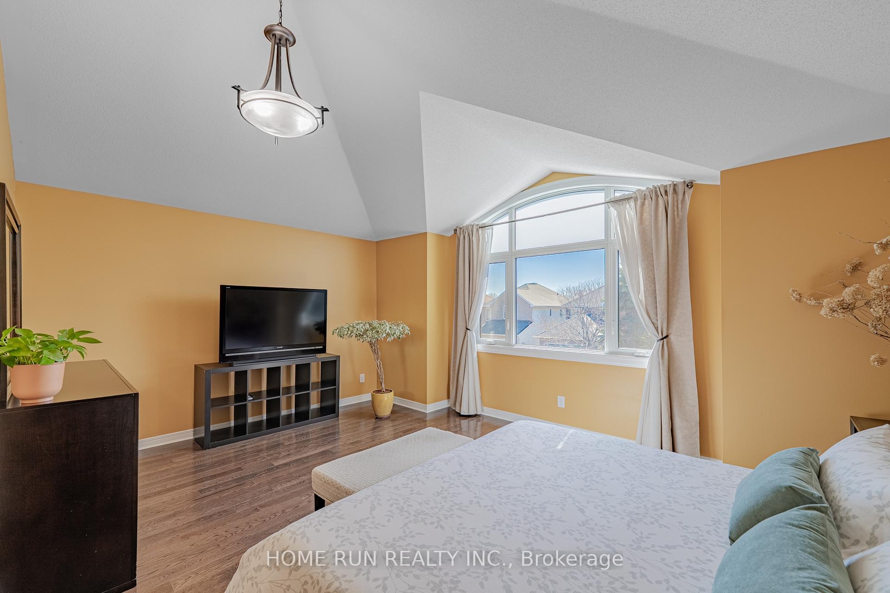 This is a rare find - a true 5-bedroom, 3.5-bath home on a quiet street in Bridlewood, one of Kanata South's most established and sought-after neighbourhoods. Built by Tamarack Homes in 1999 and once selected as a CHEO Dream Home, the property sits on an oversized lot with no rear neighbours and mature trees framing the home front to back. Inside, new hardwood floors run throughout both levels, and the staircase - with its wood treads and wrought iron spindles - makes a strong first impression. The kitchen is the heart of the home: white cabinetry to the ceiling, granite counters, a large curved island with breakfast bar, mosaic tile backsplash, and stainless steel appliances. A custom extra-wide patio door opens directly to the deck, gazebo, and fully fenced backyard - perfect for summer evenings. Upstairs, the primary bedroom features a vaulted ceiling and a beautiful arched window, and two of the five bedrooms have their own ensuite baths. The basement was freshly finished in fall 2025, with new flooring and pot lights offering plenty of room for a rec room, home gym, or play space. Major updates have been taken care of: all windows replaced in fall 2024 with triple glazing and a transferable 25-year warranty, new hardwood upstairs in spring 2025, added attic insulation, and a full roof inspection completed. Steps to NCC trails, great schools, and all the shopping and dining Kanata South has to offer.