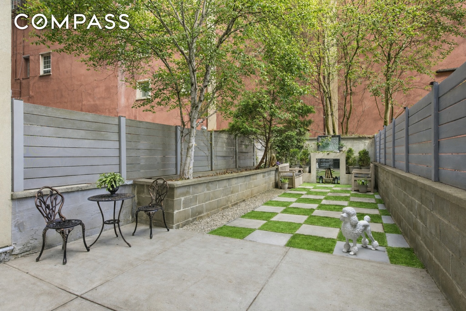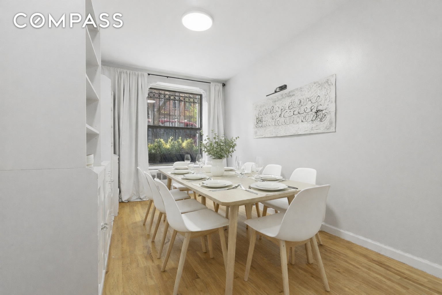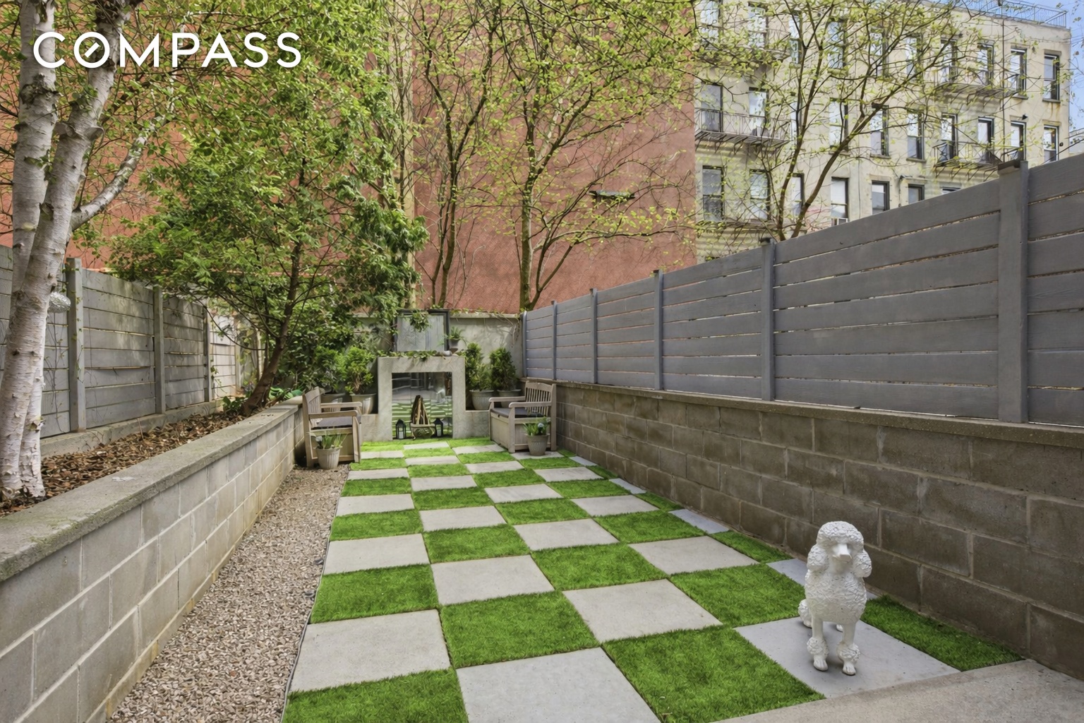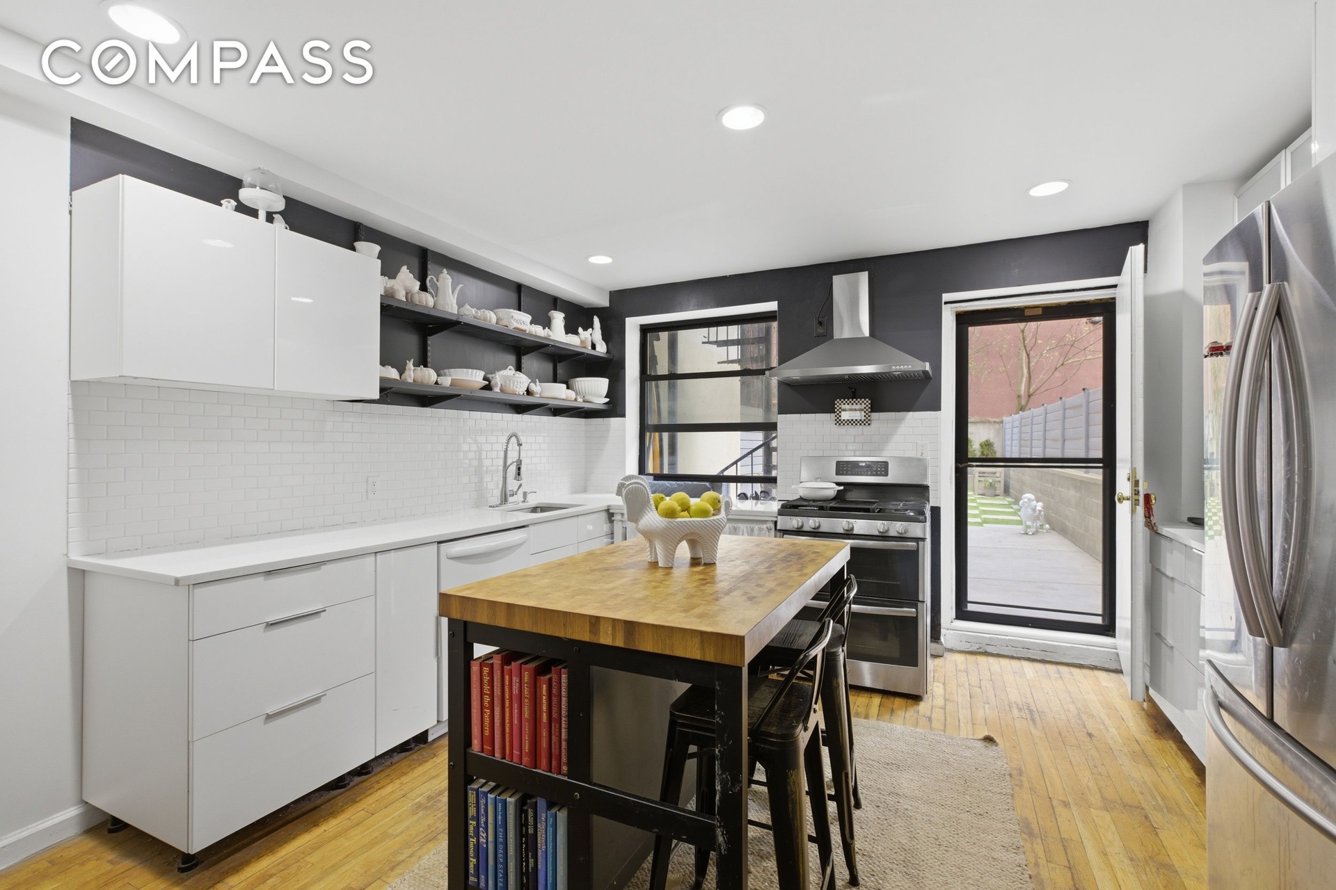 As you enter, you are welcomed into a spacious triplex. The garden level features a windowed kitchen overlooking your private backyard, a dining area, powder room, and in-unit washer and dryer.