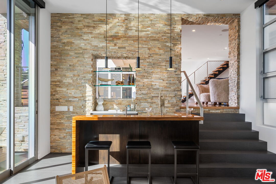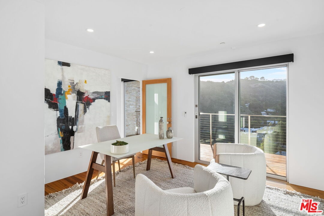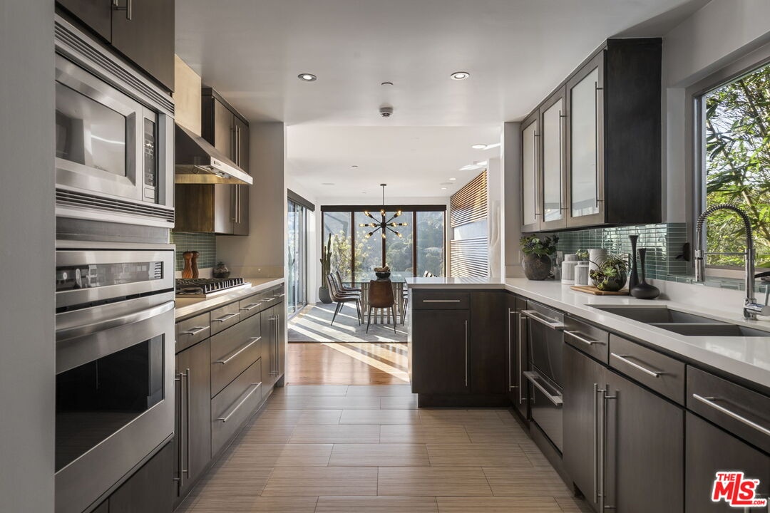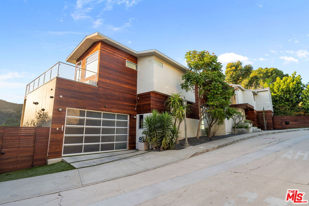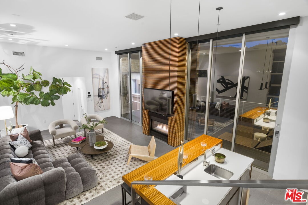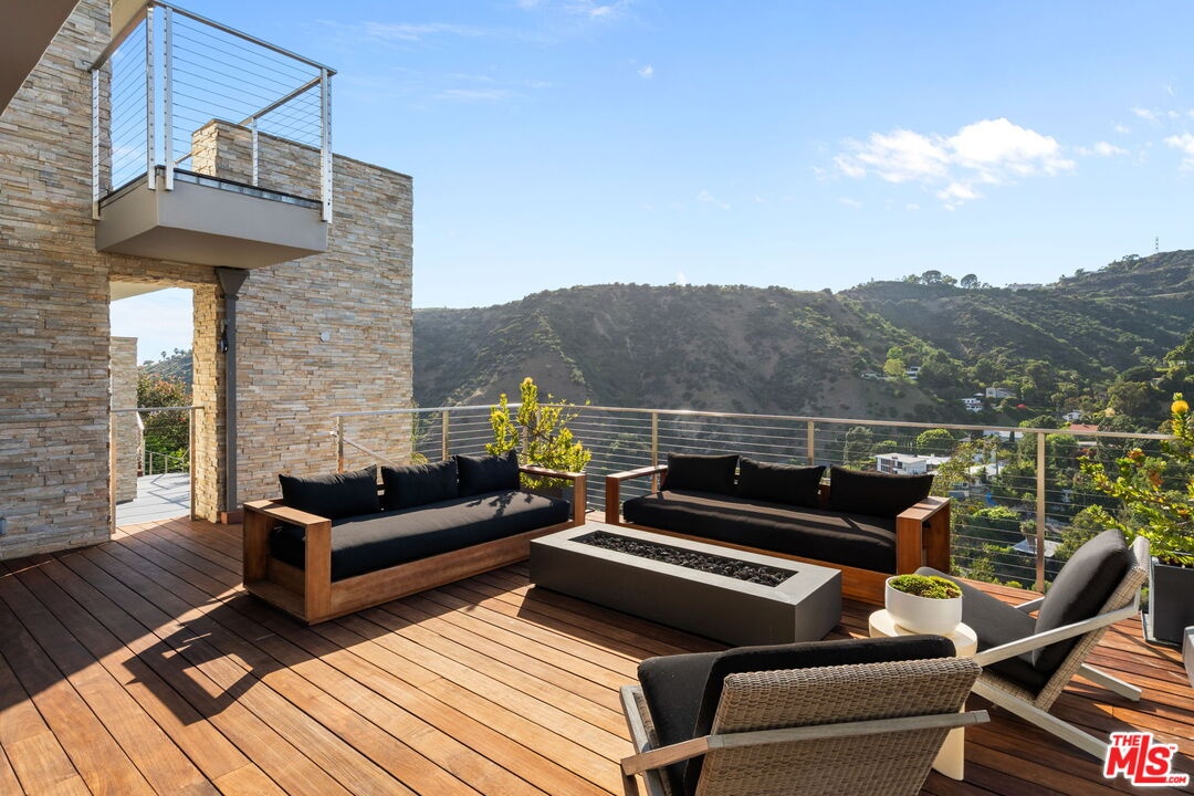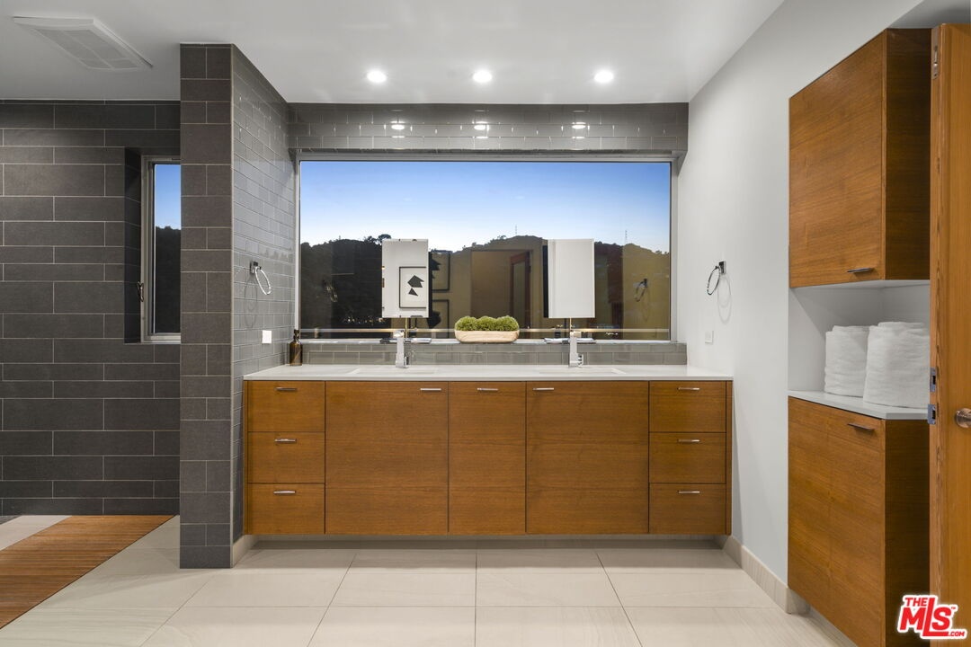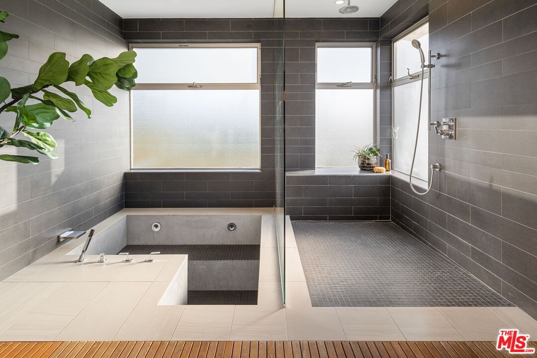 Positioned high above the canyon in the Hollywood Hills, this striking contemporary residence delivers the scale, presence, and seamless indoor-outdoor lifestyle expected at the upper tier of the market. Architecturally intentional in its design and further elevated by the current owners through targeted enhancements, the home offers a level of livability and entertaining capacity that meaningfully distinguishes it from its peers. Walls of Fleetwood stacking and pocketing glass sliders define the experience, dissolving boundaries between interior living spaces and expansive terraces that capture sweeping canyon views from every room. A six-panel Fleetwood system at the main level disappears entirely, transforming the home into a true extension of its surroundings and creating a resort-like environment equally suited for intimate evenings or large-scale gatherings. The dining room, anchored by a custom inlaid wood panel wall, sits at the edge of home featuring floor-to-ceiling windows that create the sensation of floating above the canyon while you dine. Across the home in the media room, complete with a built-in bar and dramatic high ceilings, this same custom woodwork, paired with integrated slate finishes that extend from inside to out, introduces warmth and permanence grounding the modern architecture in a refined, timeless material palette. The media room, complete with a built-in bar and dramatic openings, serves as a central entertaining hub with direct access to the sunken plunge pool and spa, as well as the surrounding decks. A newly added steam room introduces a spa-caliber experience, positioned with direct access to the main deck and oversized hot tub designed to function as both a rapid-heat spa and a cold plunge. The transition between these elements creates a cohesive indoor-outdoor wellness environment. From the spa level, an exterior staircase leads directly to the primary suite, where a Japanese-inspired soaking tub and expansive walk-in rain shower complete the experience. Outdoor living has been executed with precision and intention. Multiple terraces, a high-output fire pit, and ceiling mounted heating elements allow for year-round usability of the outdoor spaces. A professionally installed motorized retractable screen system encloses the large Fleetwood openings at the touch of a button, preserving the open-air experience while enhancing comfort, climate control, and functionality for the days you prefer to stay inside while still taking in the fresh breeze. Smart home integration implemented by the current owners includes Lutron lighting, distributed audio, MyQ garage control, AquaLink spa management, ADT security hardware, closed circuit security cameras, DoorBird, Shade Store motorized shades, and four-zone climate control (two gas + two electric systems). Additional upgrades include tankless water heaters, a new roof (2025), Toto heated bidet toilets on both levels, custom garage cabinetry, and multiple 220V charging outlets. The new ADU (2023) expands the property's functionality with a separate entrance, full kitchen, laundry, and a 120-inch 4K projection system. A three-panel Fleetwood slider system with a motorized retractable screen connects the space to the outdoors seamlessly, creating a flexible, design-forward environment ideal for guests, extended stays, or income potential. Both the main kitchen and the ADU feature Wolf and other luxury appliances and Fisher & Paykel dual-drawer dishwashers, reflecting a consistent level of finish throughout. The ADU further includes its own washer and dryer along with a full-size EuroCave wine refrigerator. The hybrid foundation is comprised of a concrete slab over 22 solid caissons down to bedrock. With its combination of architectural scale, premium materials, and thoughtfully executed enhancements, this residence offers a level of presence, functionality, and experiential living that firmly supports its position within the upper echelon of the market.