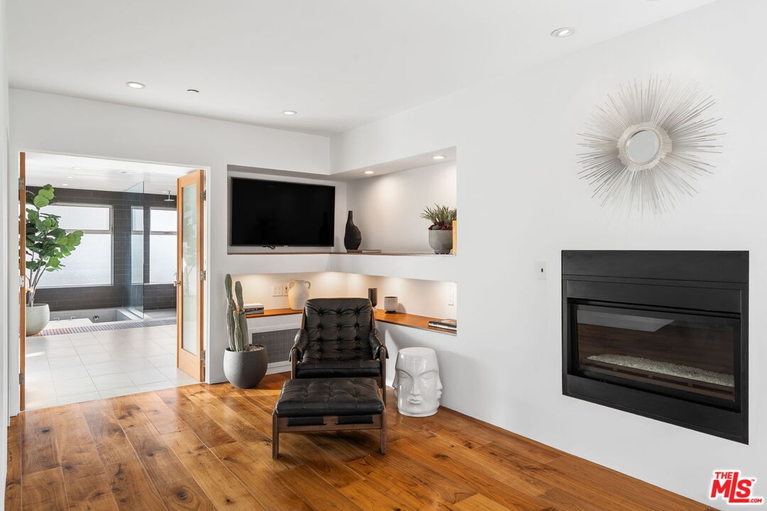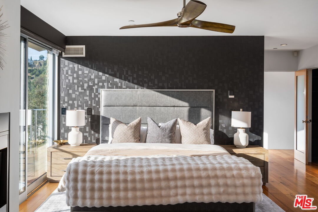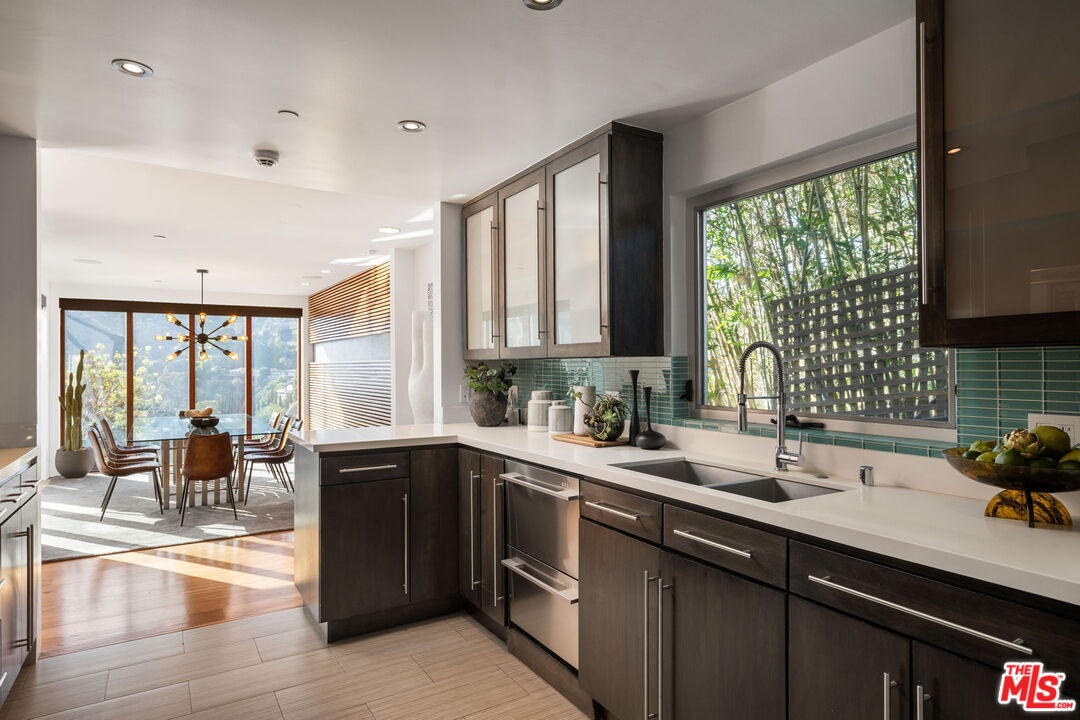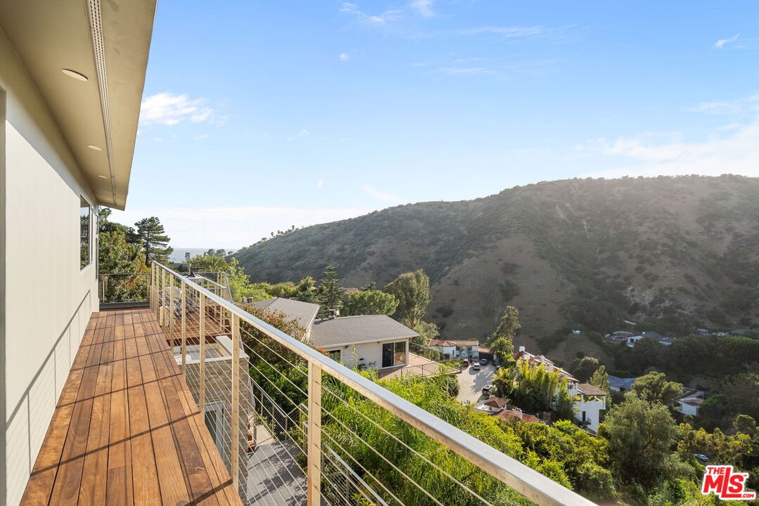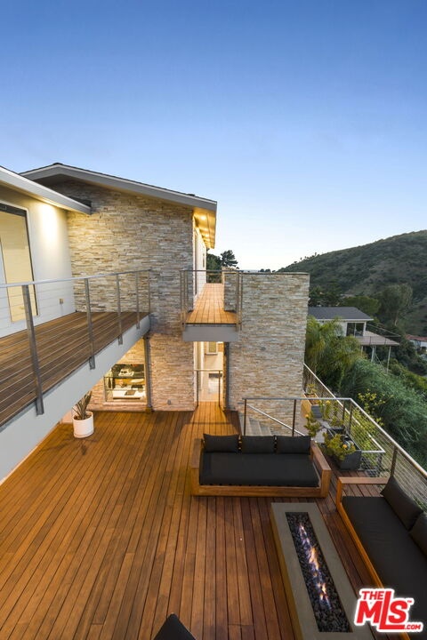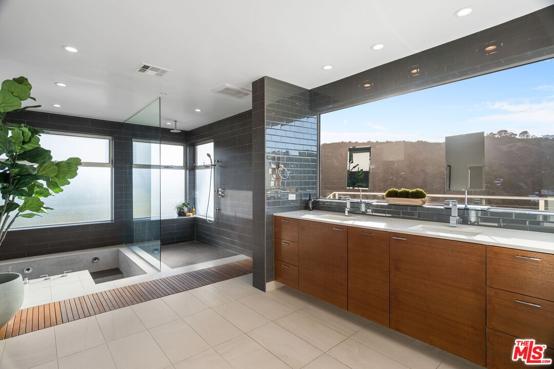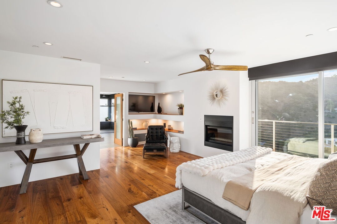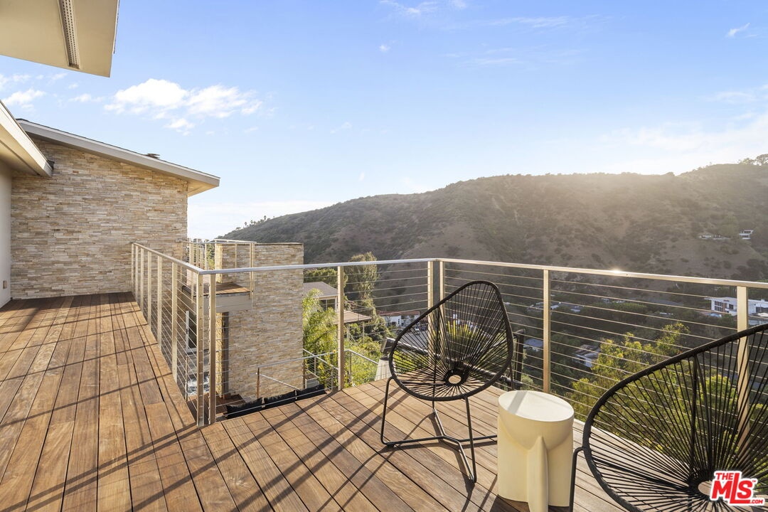 Positioned high above the canyon in the Hollywood Hills, this striking contemporary residence delivers the scale, presence, and seamless indoor-outdoor lifestyle expected at the upper tier of the market. Architecturally intentional in its design and further elevated by the current owners through targeted enhancements, the home offers a level of livability and entertaining capacity that meaningfully distinguishes it from its peers. Walls of Fleetwood stacking and pocketing glass sliders define the experience, dissolving boundaries between interior living spaces and expansive terraces that capture sweeping canyon views from every room. A six-panel Fleetwood system at the main level disappears entirely, transforming the home into a true extension of its surroundings and creating a resort-like environment equally suited for intimate evenings or large-scale gatherings. The dining room, anchored by a custom inlaid wood panel wall, sits at the edge of home featuring floor-to-ceiling windows that create the sensation of floating above the canyon while you dine. Across the home in the media room, complete with a built-in bar and dramatic high ceilings, this same custom woodwork, paired with integrated slate finishes that extend from inside to out, introduces warmth and permanence grounding the modern architecture in a refined, timeless material palette. The media room, complete with a built-in bar and dramatic openings, serves as a central entertaining hub with direct access to the sunken plunge pool and spa, as well as the surrounding decks. A newly added steam room introduces a spa-caliber experience, positioned with direct access to the main deck and oversized hot tub designed to function as both a rapid-heat spa and a cold plunge. The transition between these elements creates a cohesive indoor-outdoor wellness environment. From the spa level, an exterior staircase leads directly to the primary suite, where a Japanese-inspired soaking tub and expansive walk-in rain shower complete the experience. Outdoor living has been executed with precision and intention. Multiple terraces, a high-output fire pit, and ceiling mounted heating elements allow for year-round usability of the outdoor spaces. A professionally installed motorized retractable screen system encloses the large Fleetwood openings at the touch of a button, preserving the open-air experience while enhancing comfort, climate control, and functionality for the days you prefer to stay inside while still taking in the fresh breeze. Smart home integration implemented by the current owners includes Lutron lighting, distributed audio, MyQ garage control, AquaLink spa management, ADT security hardware, closed circuit security cameras, DoorBird, Shade Store motorized shades, and four-zone climate control (two gas + two electric systems). Additional upgrades include tankless water heaters, a new roof (2025), Toto heated bidet toilets on both levels, custom garage cabinetry, and multiple 220V charging outlets. The new ADU (2023) expands the property's functionality with a separate entrance, full kitchen, laundry, and a 120-inch 4K projection system. A three-panel Fleetwood slider system with a motorized retractable screen connects the space to the outdoors seamlessly, creating a flexible, design-forward environment ideal for guests, extended stays, or income potential. Both the main kitchen and the ADU feature Wolf and other luxury appliances and Fisher & Paykel dual-drawer dishwashers, reflecting a consistent level of finish throughout. The ADU further includes its own washer and dryer along with a full-size EuroCave wine refrigerator. The hybrid foundation is comprised of a concrete slab over 22 solid caissons down to bedrock. With its combination of architectural scale, premium materials, and thoughtfully executed enhancements, this residence offers a level of presence, functionality, and experiential living that firmly supports its position within the upper echelon of the market.