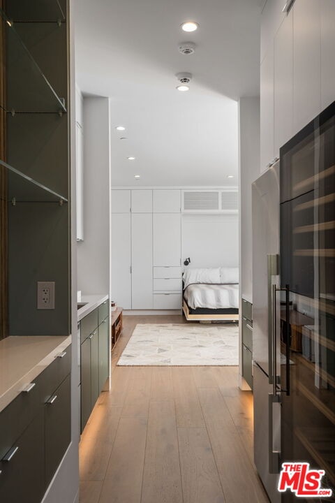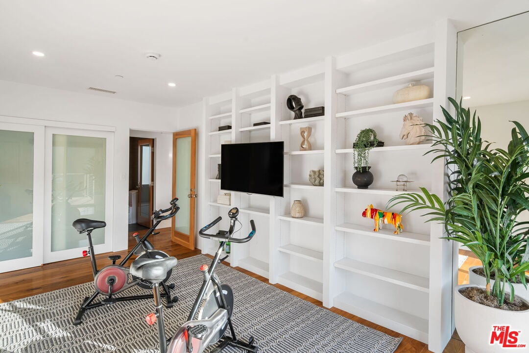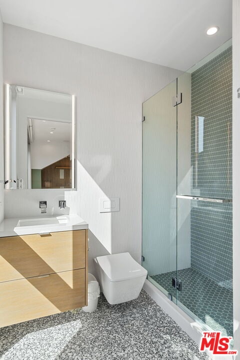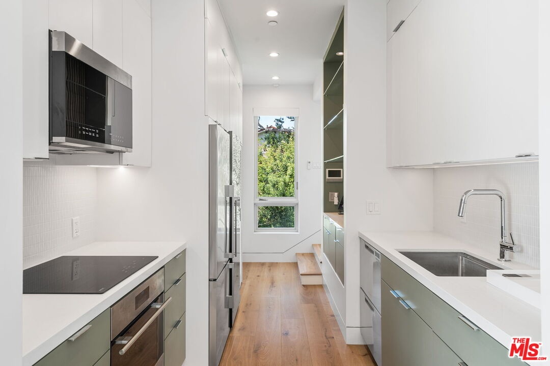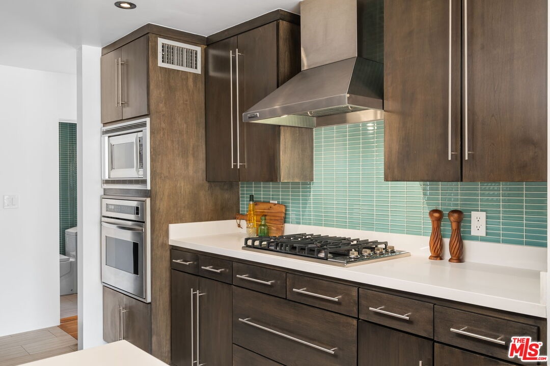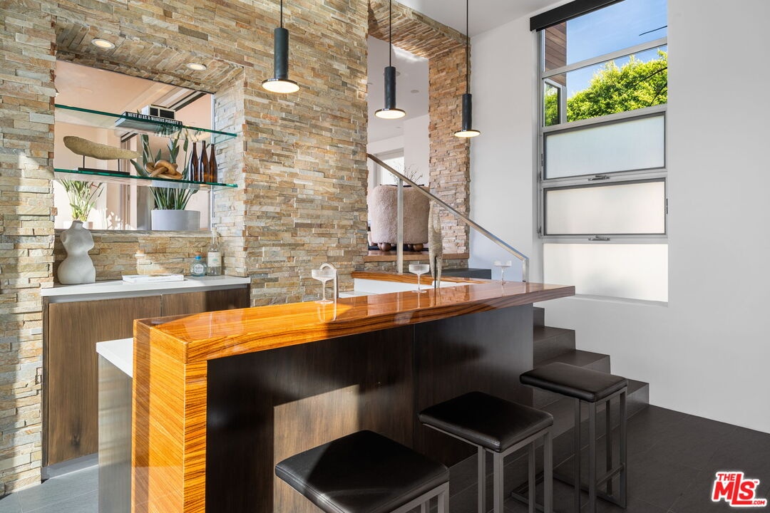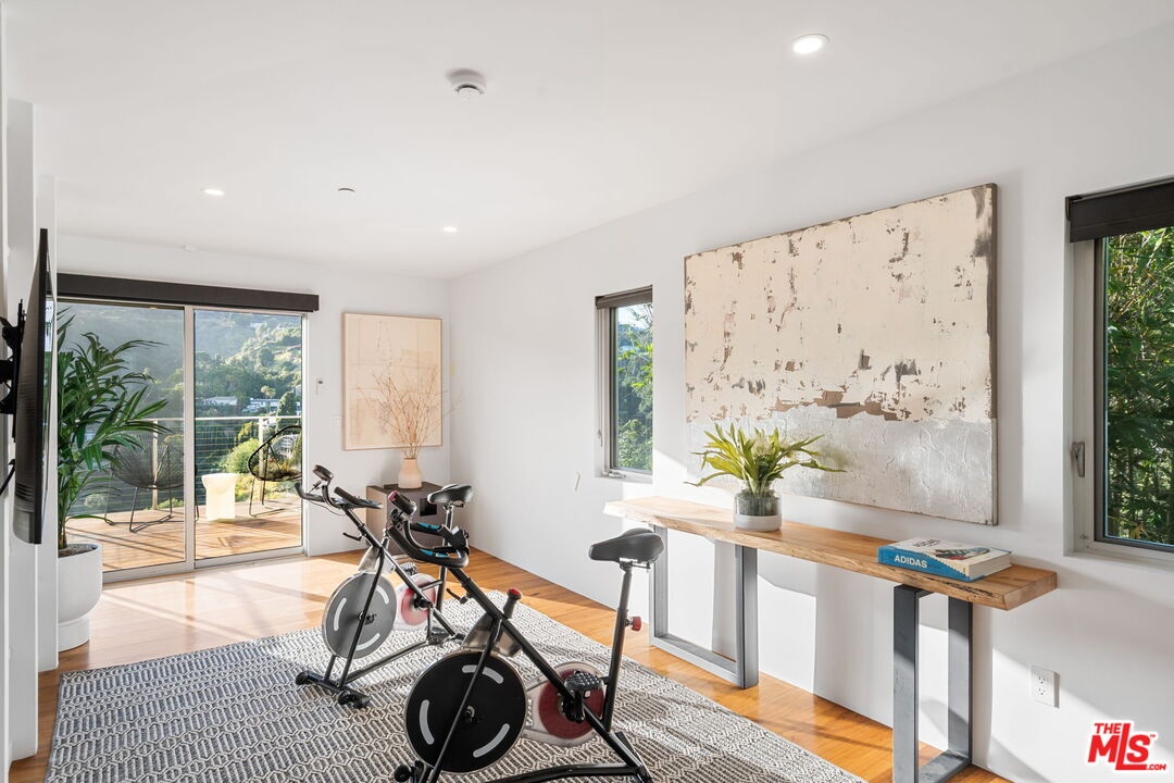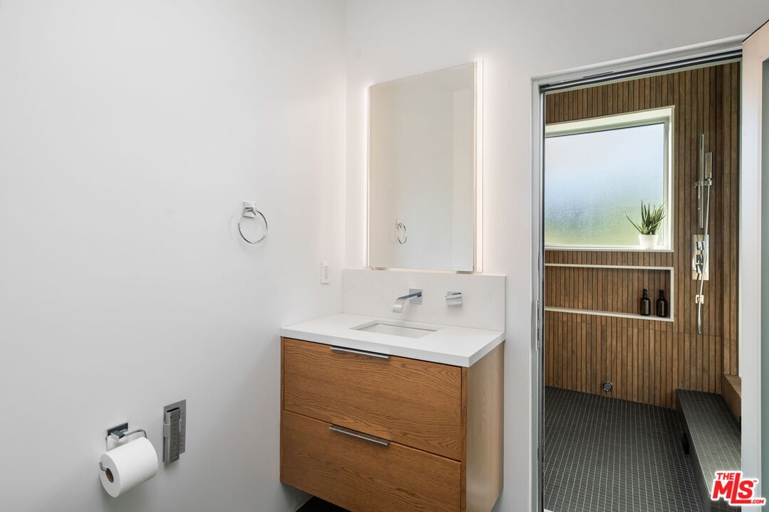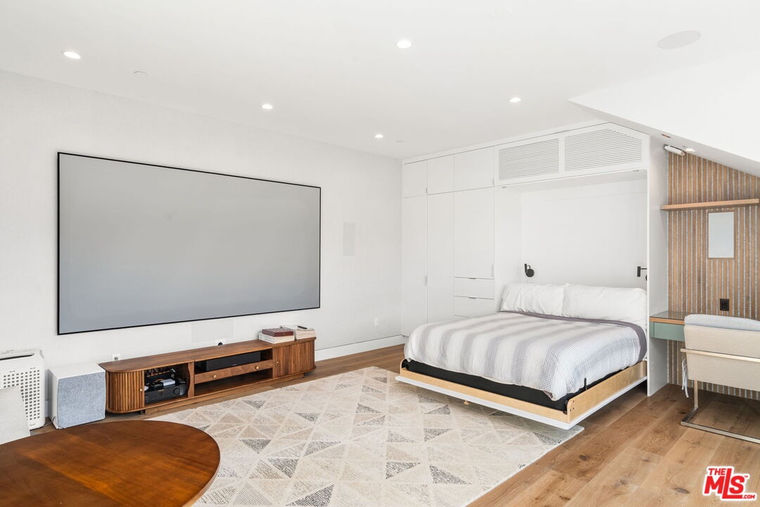Positioned high above the canyon in the Hollywood Hills, this striking contemporary residence delivers the scale, presence, and seamless indoor-outdoor lifestyle expected at the upper tier of the market. Architecturally intentional in its design and further elevated by the current owners through targeted enhancements, the home offers a level of livability and entertaining capacity that meaningfully distinguishes it from its peers. Walls of Fleetwood stacking and pocketing glass sliders define the experience, dissolving boundaries between interior living spaces and expansive terraces that capture sweeping canyon views from every room. A six-panel Fleetwood system at the main level disappears entirely, transforming the home into a true extension of its surroundings and creating a resort-like environment equally suited for intimate evenings or large-scale gatherings. The dining room, anchored by a custom inlaid wood panel wall, sits at the edge of home featuring floor-to-ceiling windows that create the sensation of floating above the canyon while you dine. Across the home in the media room, complete with a built-in bar and dramatic high ceilings, this same custom woodwork, paired with integrated slate finishes that extend from inside to out, introduces warmth and permanence grounding the modern architecture in a refined, timeless material palette. The media room, complete with a built-in bar and dramatic openings, serves as a central entertaining hub with direct access to the sunken plunge pool and spa, as well as the surrounding decks. A newly added steam room introduces a spa-caliber experience, positioned with direct access to the main deck and oversized hot tub designed to function as both a rapid-heat spa and a cold plunge. The transition between these elements creates a cohesive indoor-outdoor wellness environment. From the spa level, an exterior staircase leads directly to the primary suite, where a Japanese-inspired soaking tub and expansive walk-in rain shower complete the experience. Outdoor living has been executed with precision and intention. Multiple terraces, a high-output fire pit, and ceiling mounted heating elements allow for year-round usability of the outdoor spaces. A professionally installed motorized retractable screen system encloses the large Fleetwood openings at the touch of a button, preserving the open-air experience while enhancing comfort, climate control, and functionality for the days you prefer to stay inside while still taking in the fresh breeze. Smart home integration implemented by the current owners includes Lutron lighting, distributed audio, MyQ garage control, AquaLink spa management, ADT security hardware, closed circuit security cameras, DoorBird, Shade Store motorized shades, and four-zone climate control (two gas + two electric systems). Additional upgrades include tankless water heaters, a new roof (2025), Toto heated bidet toilets on both levels, custom garage cabinetry, and multiple 220V charging outlets. The new ADU (2023) expands the property's functionality with a separate entrance, full kitchen, laundry, and a 120-inch 4K projection system. A three-panel Fleetwood slider system with a motorized retractable screen connects the space to the outdoors seamlessly, creating a flexible, design-forward environment ideal for guests, extended stays, or income potential. Both the main kitchen and the ADU feature Wolf and other luxury appliances and Fisher & Paykel dual-drawer dishwashers, reflecting a consistent level of finish throughout. The ADU further includes its own washer and dryer along with a full-size EuroCave wine refrigerator. The hybrid foundation is comprised of a concrete slab over 22 solid caissons down to bedrock. With its combination of architectural scale, premium materials, and thoughtfully executed enhancements, this residence offers a level of presence, functionality, and experiential living that firmly supports its position within the upper echelon of the market.