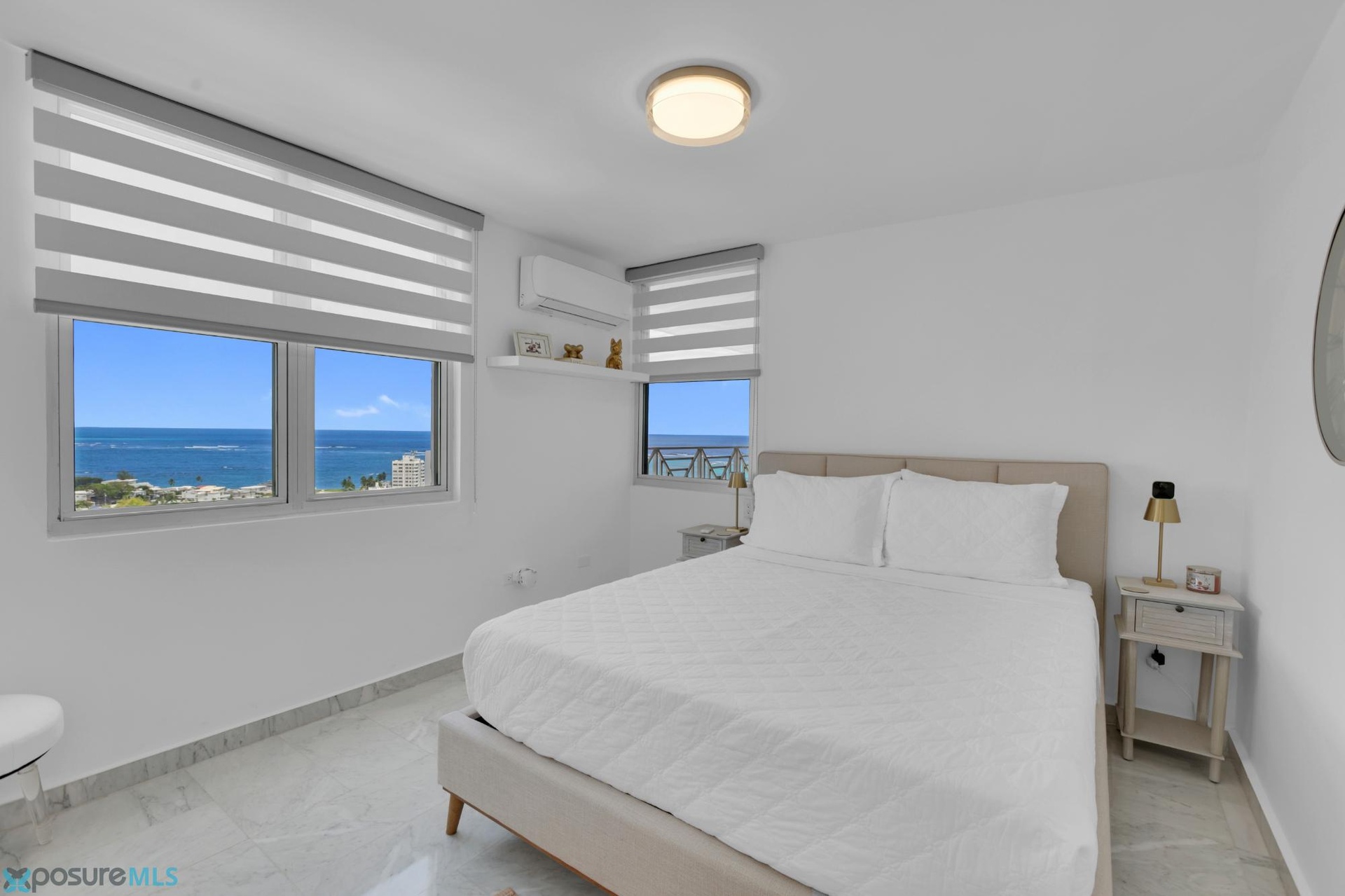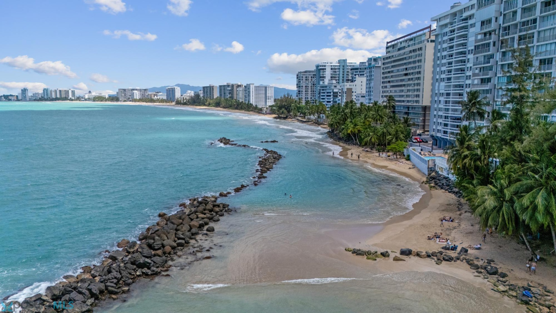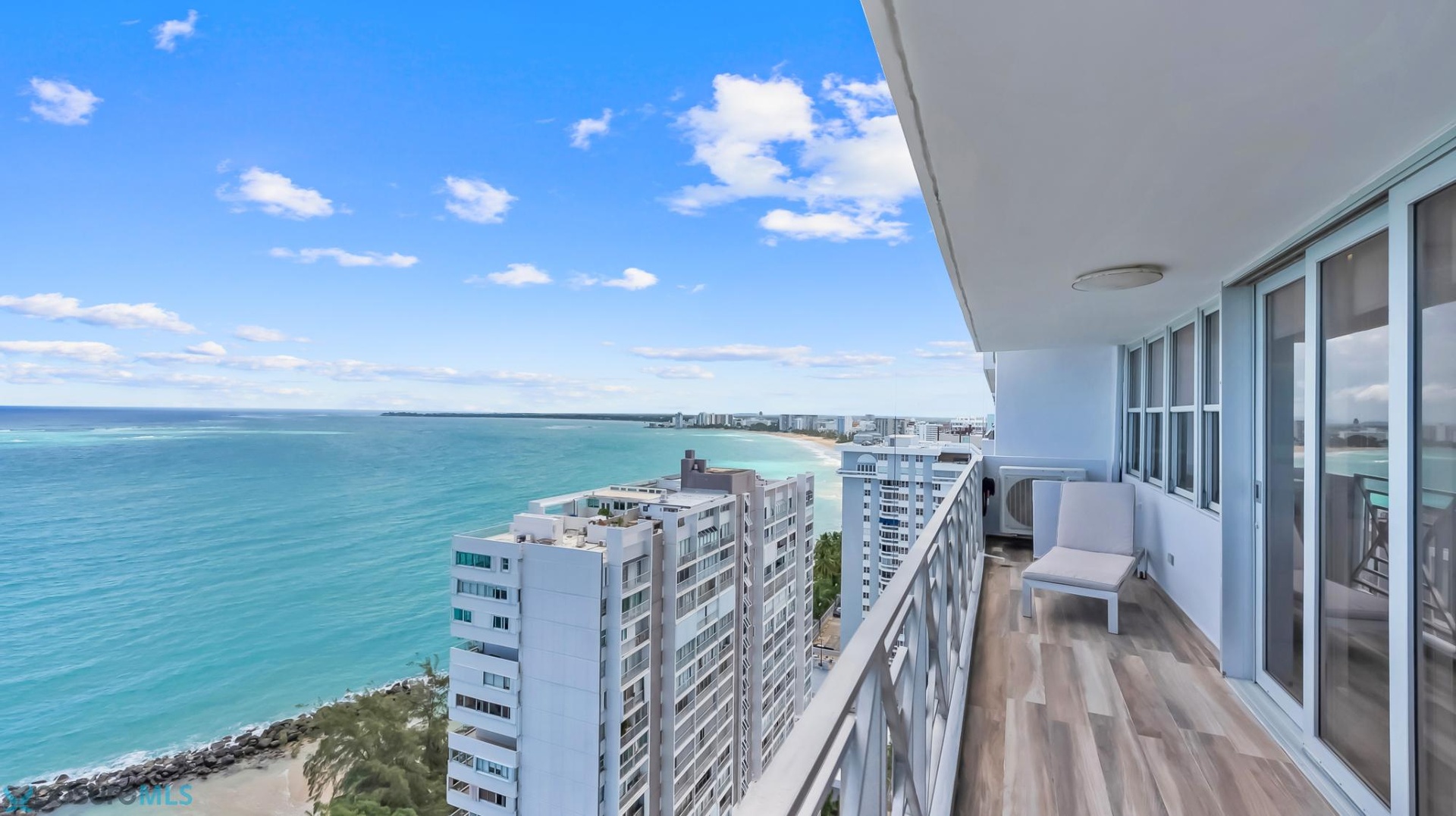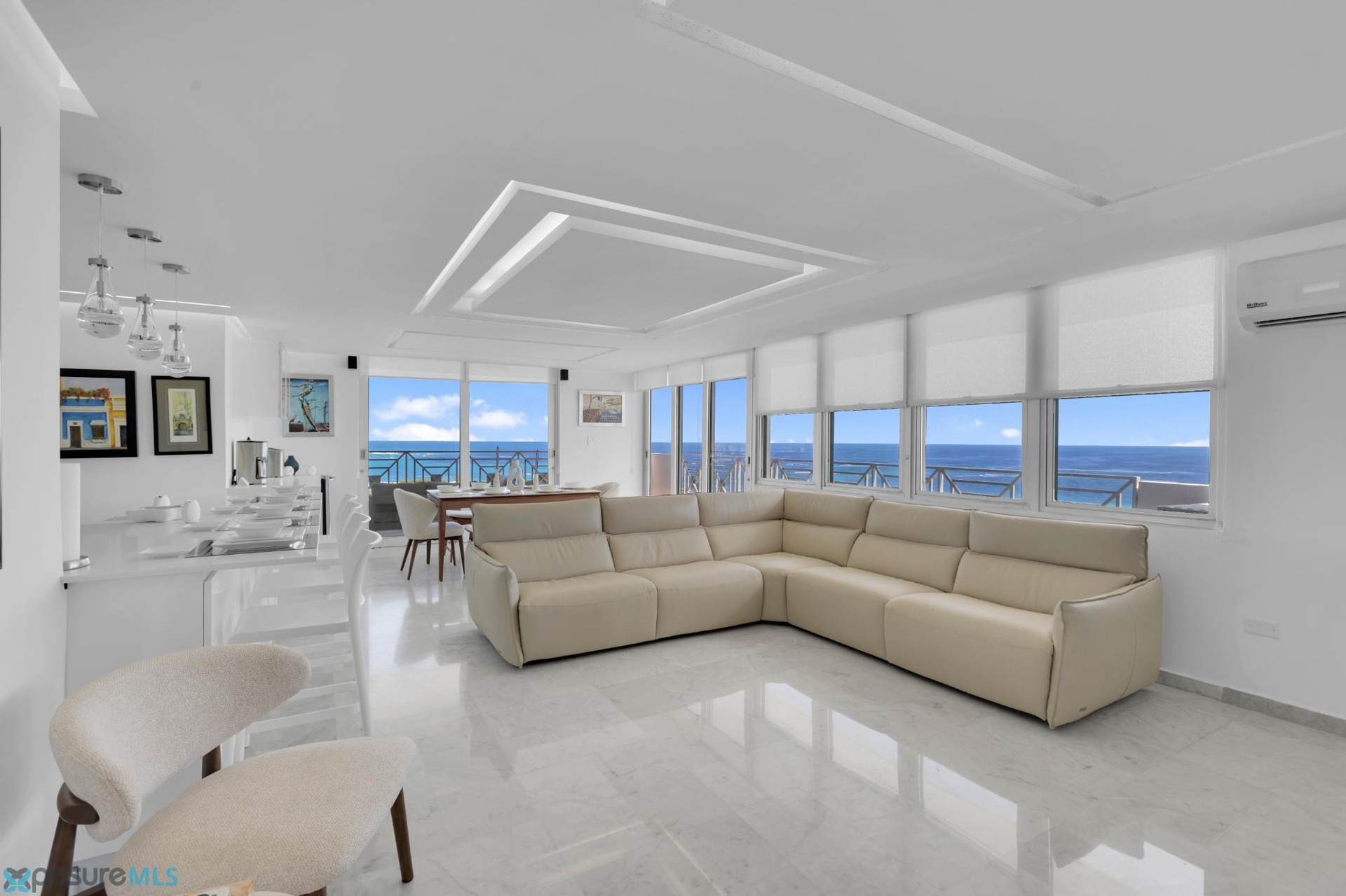 Welcome to a turnkey beachfront residence in the heart of Isla Verde with direct beach access, one of Puerto Rico's premier coastal addresses. A fully serviced residence built around convenience, privacy, and uninterrupted panoramic views. This furnished high-floor unit spans approximately 1,900 sf, with an ensuite main bedroom, two additional bedrooms with abundant natural light, three full bathrooms, two assigned parking spaces, and two private balconies framing the island from north to south. Enjoy beautiful views to the north sweeping across the Atlantic Ocean toward Condado and Old San Juan, plus a different vantage to the south reaching across Isla Verde Avenue, the San José Lagoon, and Puerto Rico's central mountain range with dual panoramic water views rarely available in a single residence. The home has been completely renovated to a contemporary luxury style with porcelain and marble flooring throughout the apartment, framed by modern ceilings with integrated LED ambiance lighting. The open-space layout anchors on a waterfall quartz island kitchen equipped with a full suite of professional-grade stainless-steel appliances, complemented by an integrated wine refrigerator, ice maker, and a dedicated coffee station. What distinguishes this residence, beyond its marvelous design, from a standard furnished rental is its full concierge service structure, all coordinated and paid by the owner: weekly professional housekeeping, monthly pest control treatment, bi-annual A/C maintenance, and high-speed fiber-optic internet included for seamless remote work from day one. This is a concierge residence, not a rental. Plaza del Mar delivers resort-style living with its own backup power generator ensuring uninterrupted service, biometric access, 24/7 on-site security, a fitness center, sauna, three elevators including a dedicated service elevator, and a complimentary hotel-style ice machine for residents. Shared amenities with the neighboring building include a resort-size swimming pool, a tennis and pickleball court, an electric vehicle charger, and a gated vehicle entrance, delivering the amenity footprint of a much larger complex while preserving the privacy of just six residences per floor. It's Prime location with direct access to the popular destination of Isla Verde Avenue, approximately five minutes to the International Airport, five minutes to Condado, ten minutes to Old San Juan, and walking distance to the neighborhood's restaurants, cafés, and entertainment. Short-term rental not allowed. Schedule a private showing..