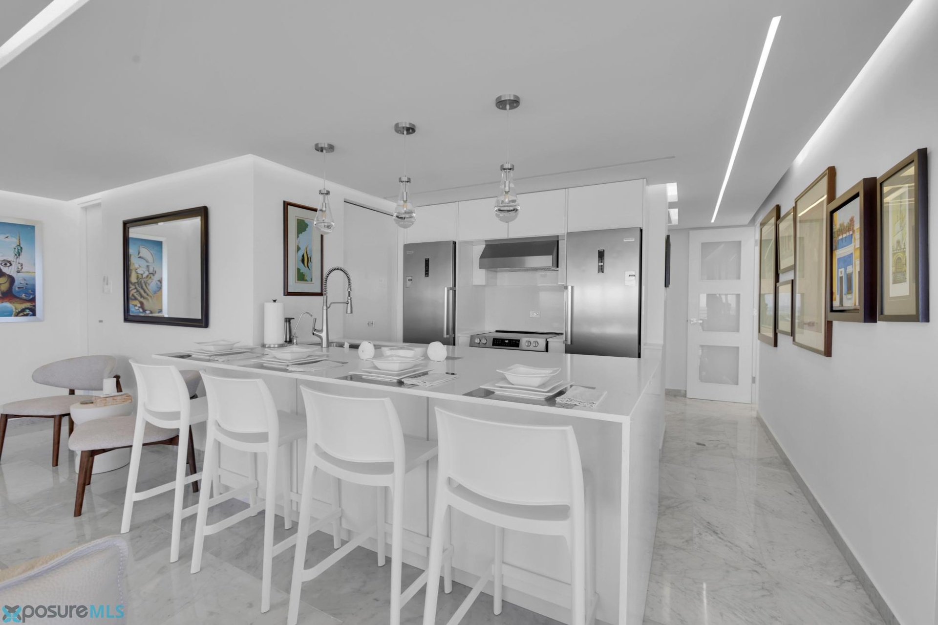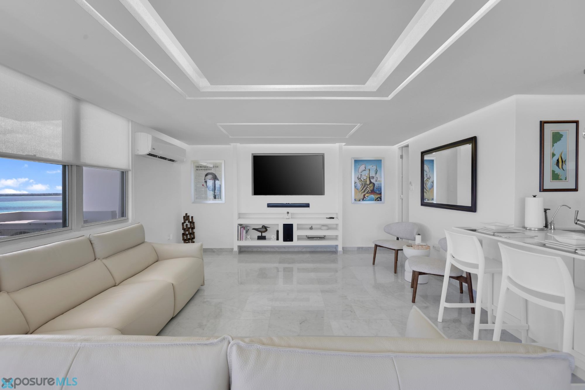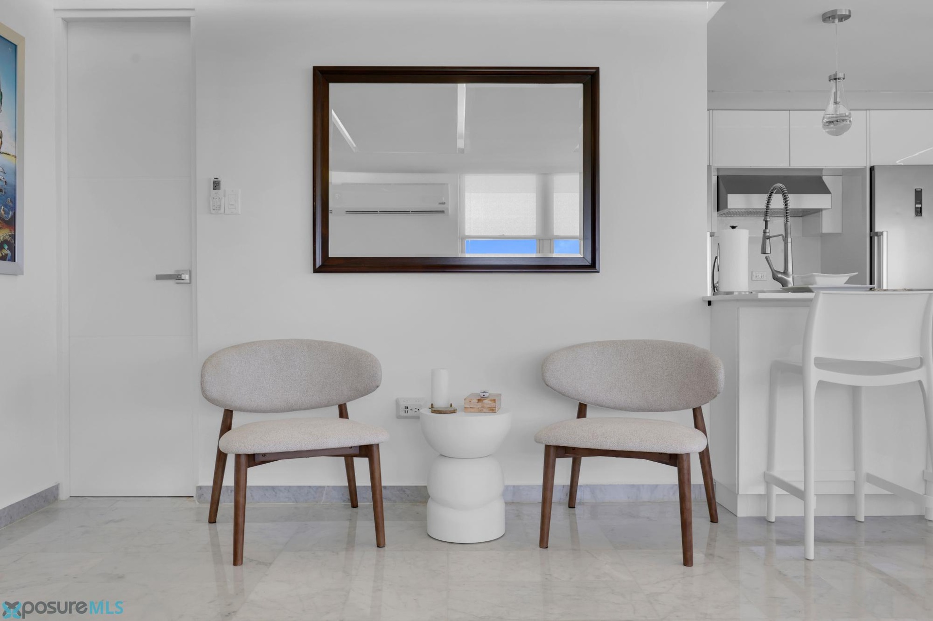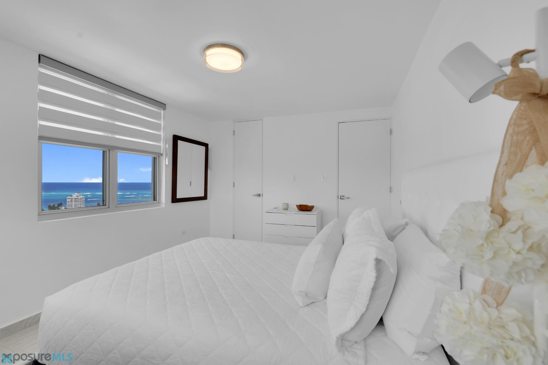 Welcome to a turnkey beachfront residence in the heart of Isla Verde with direct beach access, one of Puerto Rico's premier coastal addresses. A fully serviced residence built around convenience, privacy, and uninterrupted panoramic views. This furnished high-floor unit spans approximately 1,900 sf, with an ensuite main bedroom, two additional bedrooms with abundant natural light, three full bathrooms, two assigned parking spaces, and two private balconies framing the island from north to south. Enjoy beautiful views to the north sweeping across the Atlantic Ocean toward Condado and Old San Juan, plus a different vantage to the south reaching across Isla Verde Avenue, the San José Lagoon, and Puerto Rico's central mountain range with dual panoramic water views rarely available in a single residence. The home has been completely renovated to a contemporary luxury style with porcelain and marble flooring throughout the apartment, framed by modern ceilings with integrated LED ambiance lighting. The open-space layout anchors on a waterfall quartz island kitchen equipped with a full suite of professional-grade stainless-steel appliances, complemented by an integrated wine refrigerator, ice maker, and a dedicated coffee station. What distinguishes this residence, beyond its marvelous design, from a standard furnished rental is its full concierge service structure, all coordinated and paid by the owner: weekly professional housekeeping, monthly pest control treatment, bi-annual A/C maintenance, and high-speed fiber-optic internet included for seamless remote work from day one. This is a concierge residence, not a rental. Plaza del Mar delivers resort-style living with its own backup power generator ensuring uninterrupted service, biometric access, 24/7 on-site security, a fitness center, sauna, three elevators including a dedicated service elevator, and a complimentary hotel-style ice machine for residents. Shared amenities with the neighboring building include a resort-size swimming pool, a tennis and pickleball court, an electric vehicle charger, and a gated vehicle entrance, delivering the amenity footprint of a much larger complex while preserving the privacy of just six residences per floor. It's Prime location with direct access to the popular destination of Isla Verde Avenue, approximately five minutes to the International Airport, five minutes to Condado, ten minutes to Old San Juan, and walking distance to the neighborhood's restaurants, cafés, and entertainment. Short-term rental not allowed. Schedule a private showing..