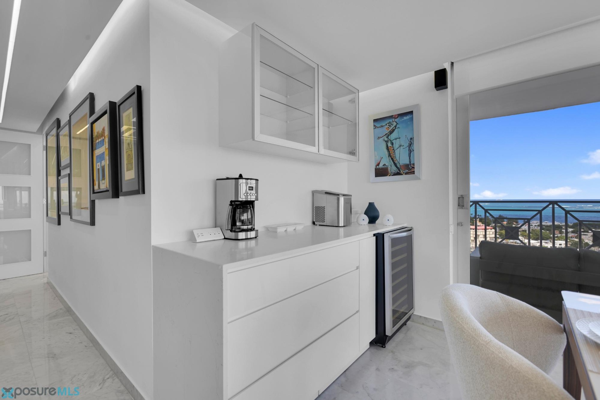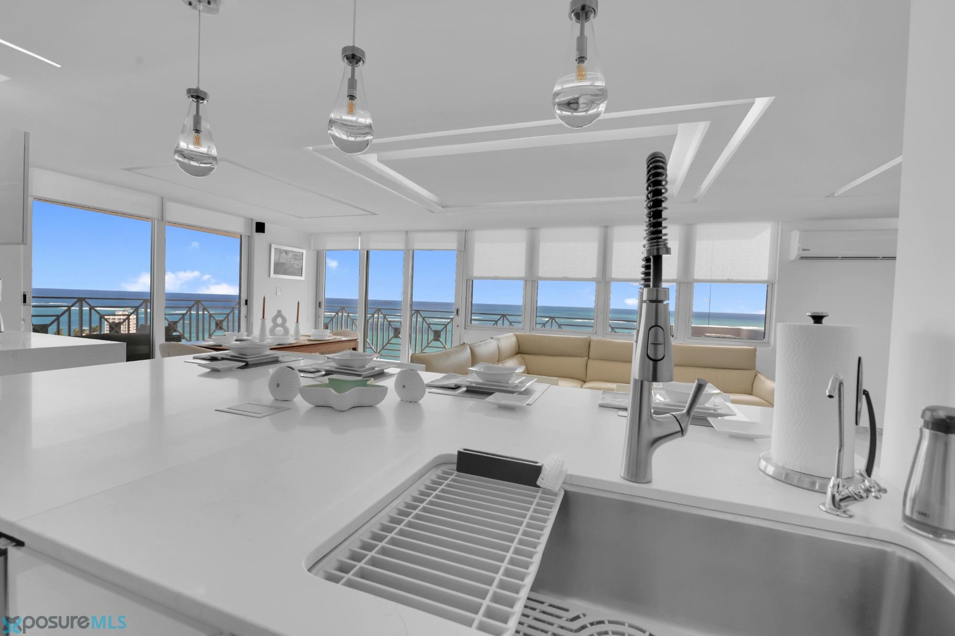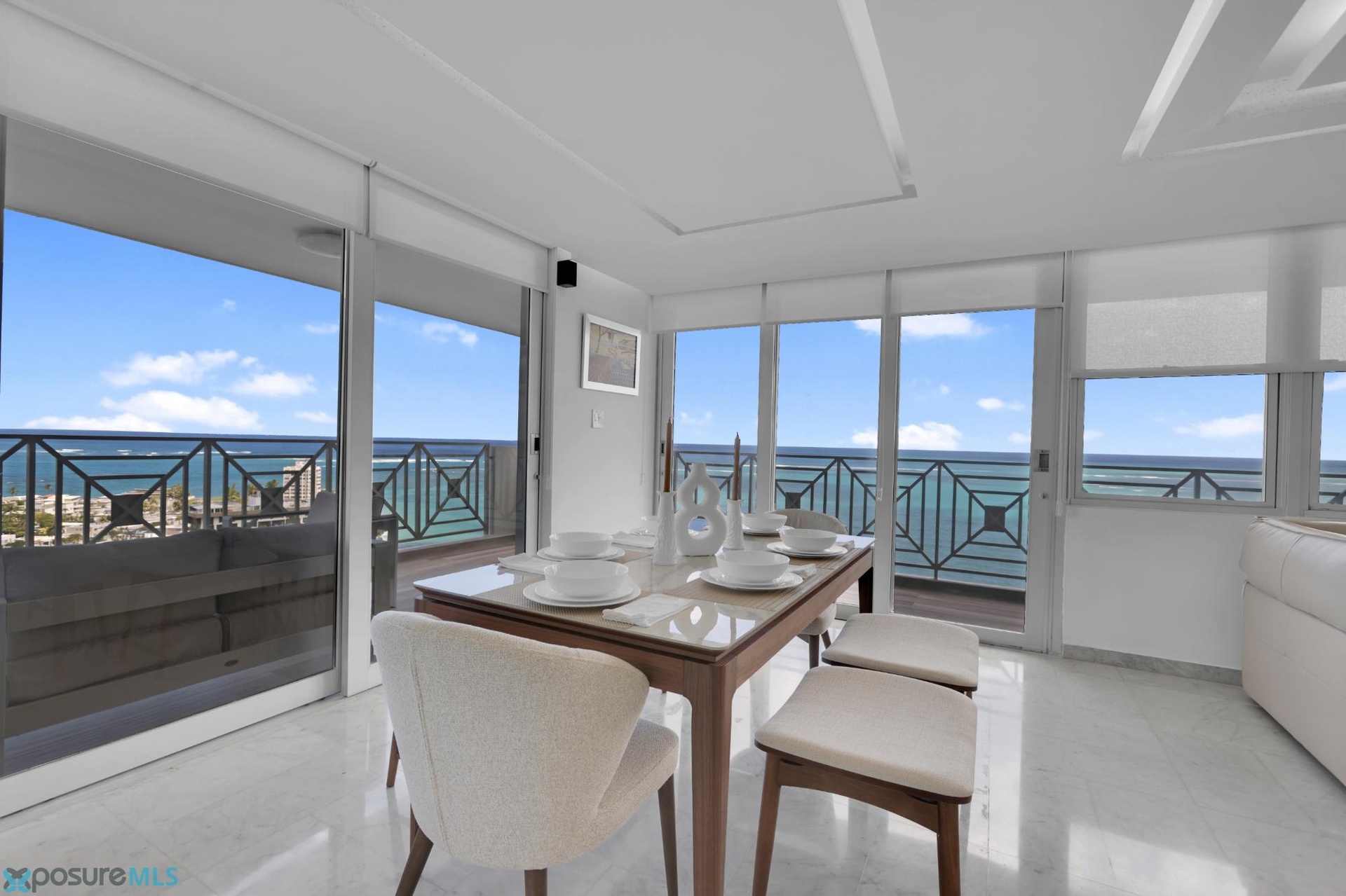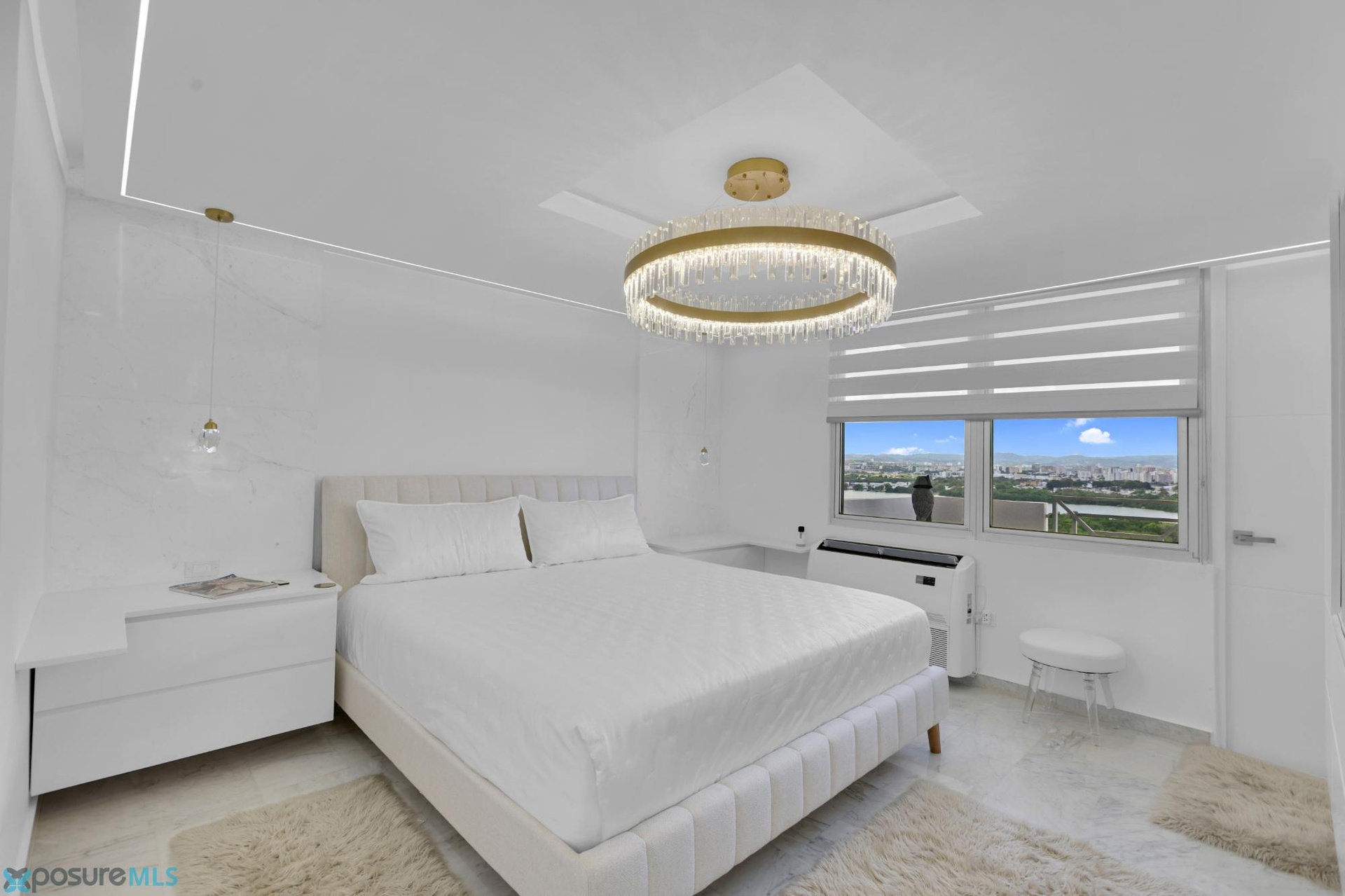 Welcome to a turnkey beachfront residence in the heart of Isla Verde with direct beach access, one of Puerto Rico's premier coastal addresses. A fully serviced residence built around convenience, privacy, and uninterrupted panoramic views. This furnished high-floor unit spans approximately 1,900 sf, with an ensuite main bedroom, two additional bedrooms with abundant natural light, three full bathrooms, two assigned parking spaces, and two private balconies framing the island from north to south. Enjoy beautiful views to the north sweeping across the Atlantic Ocean toward Condado and Old San Juan, plus a different vantage to the south reaching across Isla Verde Avenue, the San José Lagoon, and Puerto Rico's central mountain range with dual panoramic water views rarely available in a single residence. The home has been completely renovated to a contemporary luxury style with porcelain and marble flooring throughout the apartment, framed by modern ceilings with integrated LED ambiance lighting. The open-space layout anchors on a waterfall quartz island kitchen equipped with a full suite of professional-grade stainless-steel appliances, complemented by an integrated wine refrigerator, ice maker, and a dedicated coffee station. What distinguishes this residence, beyond its marvelous design, from a standard furnished rental is its full concierge service structure, all coordinated and paid by the owner: weekly professional housekeeping, monthly pest control treatment, bi-annual A/C maintenance, and high-speed fiber-optic internet included for seamless remote work from day one. This is a concierge residence, not a rental. Plaza del Mar delivers resort-style living with its own backup power generator ensuring uninterrupted service, biometric access, 24/7 on-site security, a fitness center, sauna, three elevators including a dedicated service elevator, and a complimentary hotel-style ice machine for residents. Shared amenities with the neighboring building include a resort-size swimming pool, a tennis and pickleball court, an electric vehicle charger, and a gated vehicle entrance, delivering the amenity footprint of a much larger complex while preserving the privacy of just six residences per floor. It's Prime location with direct access to the popular destination of Isla Verde Avenue, approximately five minutes to the International Airport, five minutes to Condado, ten minutes to Old San Juan, and walking distance to the neighborhood's restaurants, cafés, and entertainment. Short-term rental not allowed. Schedule a private showing..