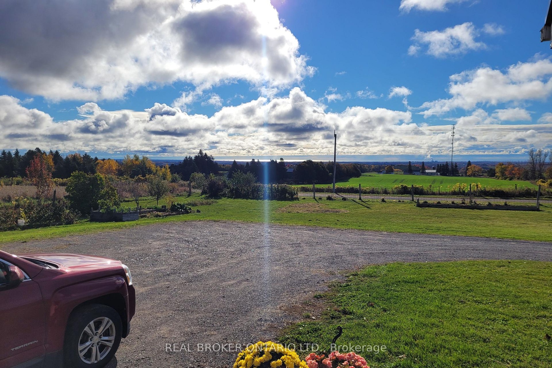 Rare opportunity to own a country bungalow set on approximately one acre in a peaceful Clarington setting, offering the perfect balance of rural living and convenient access to nearby amenities. Take in spectacular views stretching south to Lake Ontario and, on clear days, even the Toronto skyline, with breathtaking sunrises and sunsets right from your own property. A welcoming, covered, front porch leads into a bright foyer, setting the tone for the warmth and comfort found throughout. The living room features large south and west facing windows that capture the views and natural light, while a cozy wood stove creates the perfect atmosphere during the cooler months. The spacious kitchen overlooks the dining area and offers a walk-out to a covered porch that is ideal for outdoor dining or simply enjoying the scenery year round. This home offers three generously sized bedrooms, including a primary retreat with his and hers double closets. There is a 3-piece main bathroom and a convenient 2-piece powder room. The functional main floor layout includes a mudroom with interior access to the insulated 1.5 car garage and a walk-out to the deck, plus a laundry area with direct access to the rear yard. The unfinished basement provides an additional bedroom, cold cellar, wood storage, rough-in and ample space to customize to your needs. The expansive yard offers plenty of room to run, play, and enjoy the outdoors all while taking in the incredible views that this property has to offer. Updates include a metal roof, furnace and woodstove.
