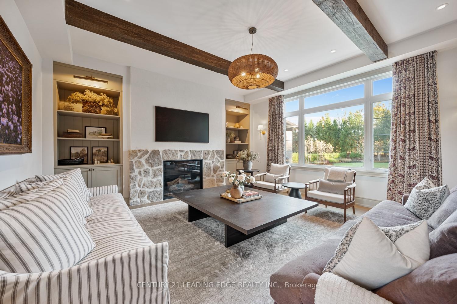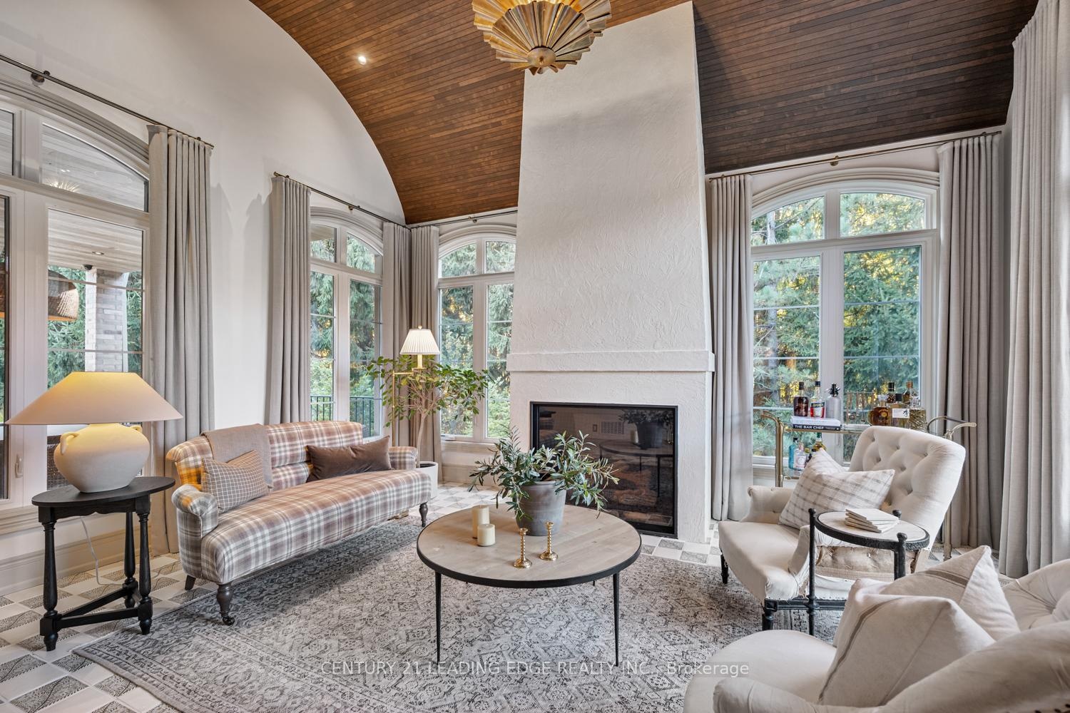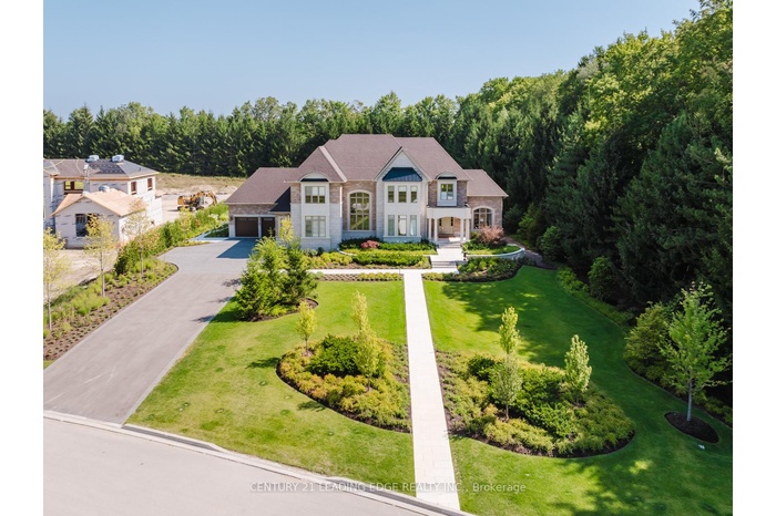 Set on nearly 1.5 acres and enveloped by untouched forest, this remarkable estate boasts more than 8,000 square feet of finished living space, including a walk-up basement, ideal for both single-family or multi-generational living. Expertly crafted and privately constructed outside of standard builder specifications, this home was professionally designed by a House & Home Top Designer. Every detail has been carefully planned and curated for both function and beauty, from premium wall finishes and distinctive tile work to dramatic beamed ceilings and statement light fixtures, just to name a few. Whole home automation provides easy controls of security, climate, cameras, Lutron lighting & automated blinds, garage doors and even media. The main floor flows effortlessly, featuring a formal conservatory wrapped in windows, a spacious dining room that opens to the terrace, a stylish office, and a highly functional mudroom. The top-of-the-line custom chef's kitchen includes professional-grade Miele appliances, a Lacanche range, a cozy breakfast area with hidden coffee bar, and a butler's pantry, all overlooking the stunning great room, ideal for entertaining. Upstairs, the luxurious primary suite offers a gas fireplace, wet bar/coffee station, spa-like ensuite, and His & Hers dressing rooms. The finished walk-up basement is equally impressive, with a large recreation room, oversized kitchenette, fifth bedroom, two bathrooms, craft and play rooms, pantry, and a dedicated golf simulator for the sports enthusiast. Outside, the home is professionally landscaped for a grand garden feel. A covered terrace with outdoor kitchen expands your living space. Three garages (one with a lift) hold four vehicles, including access to a flexible space currently used as a private gym. This one-of-a-kind home, with millions spent on custom upgrades, is ready to be appreciated for its luxury and charm.