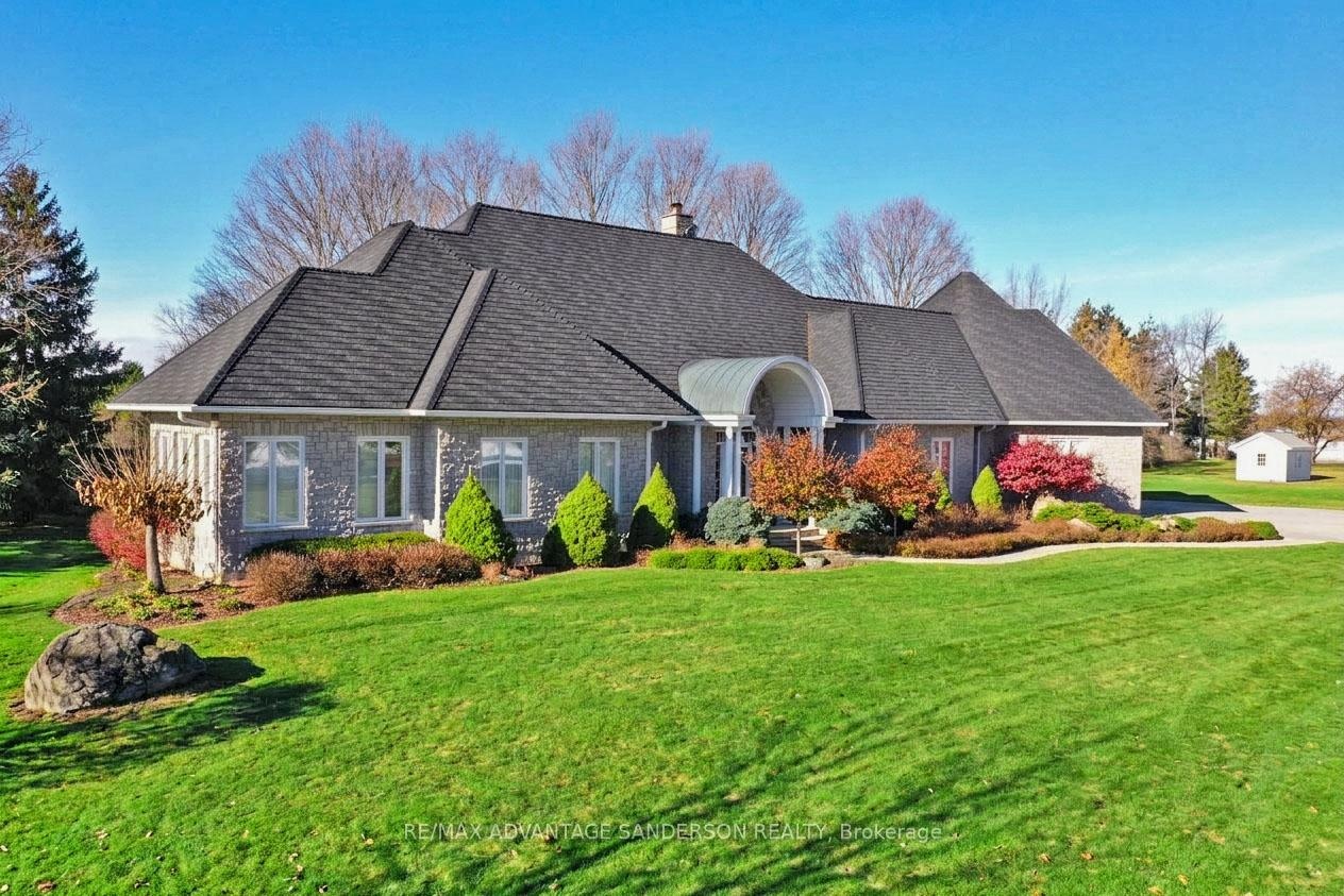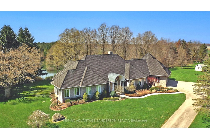La crème de la crème! 100 acre estate farm with 70 workable acres. Through the front gates is a long winding laneway leading you to a gorgeous custom quality stone residence with amazing curb appeal and over 8000sf of finely crafted finished living space featuring a walkout-out lower level and strategically positioned to enjoy the beauty of nature with the winding river and ponds below. Privacy, tranquility and surrounded by wildlife and nature. Unbelievable sunsets. A convenient three bedroom guest residence with separate laneway is just a short distance away. Various outbuildings on the property including barn and hanger. If you are looking for the best of the best and something nobody else has then this may be the one! The second house on the property has 1473 sq ft on the main floor with an additional family room and 2pc bath finished in the lower. 3 beds and 1.5 baths