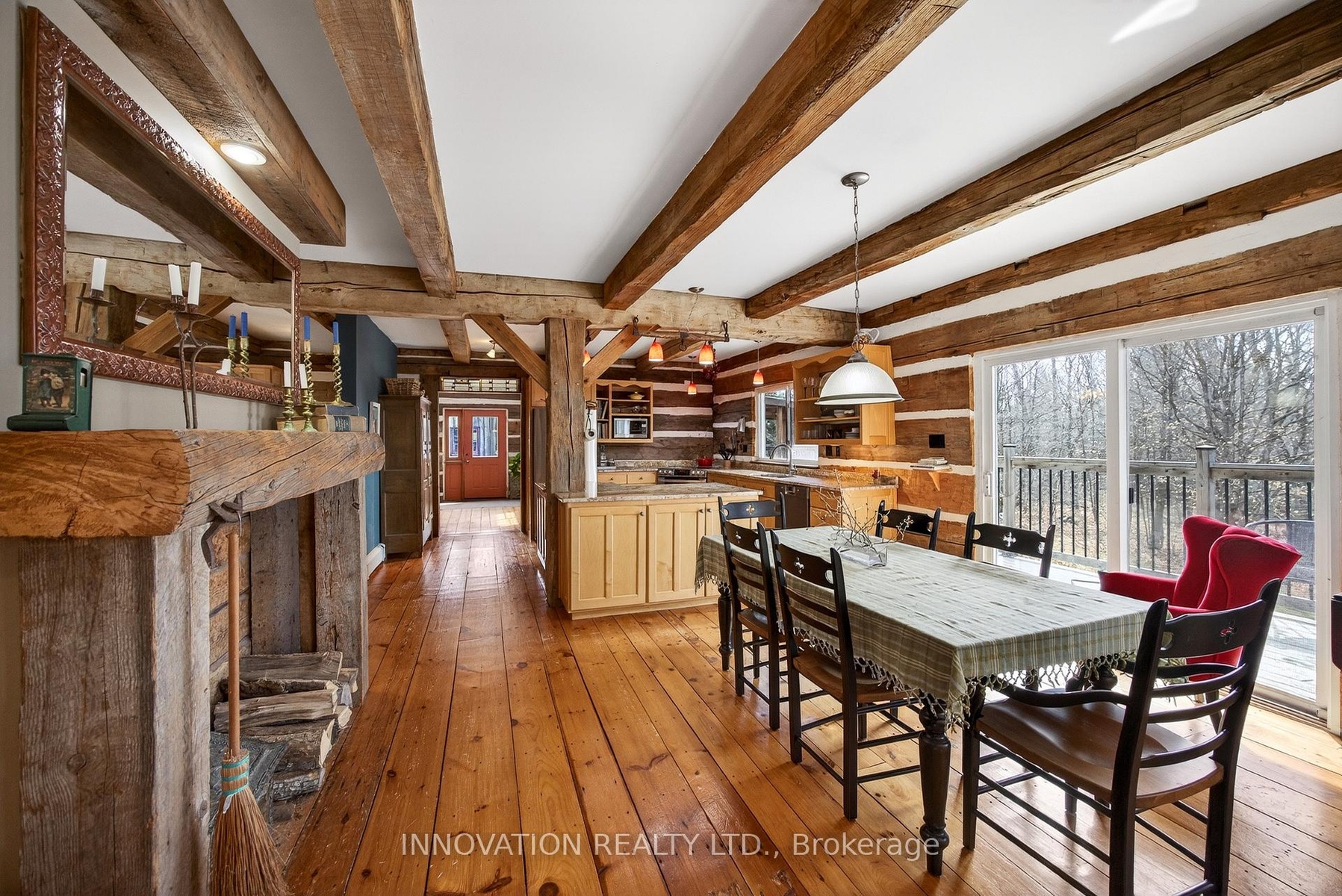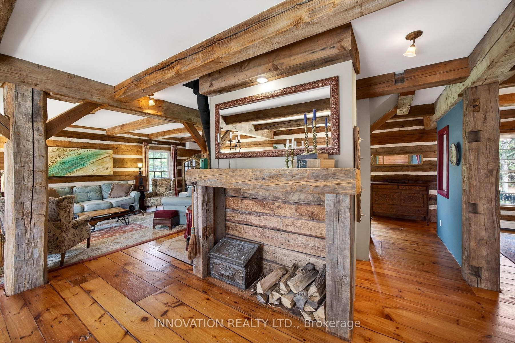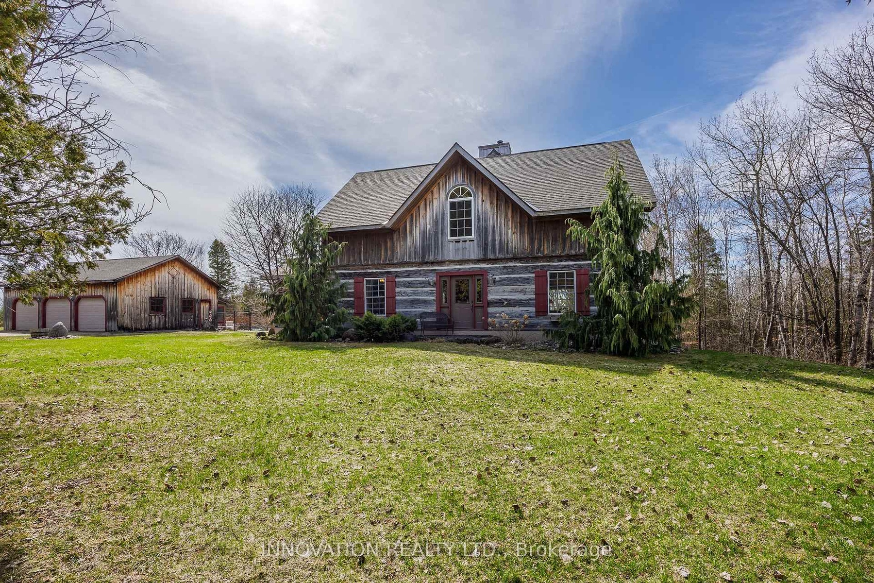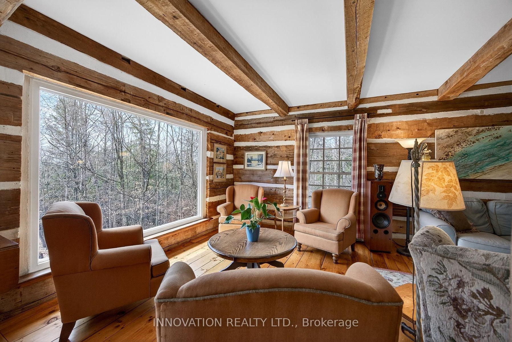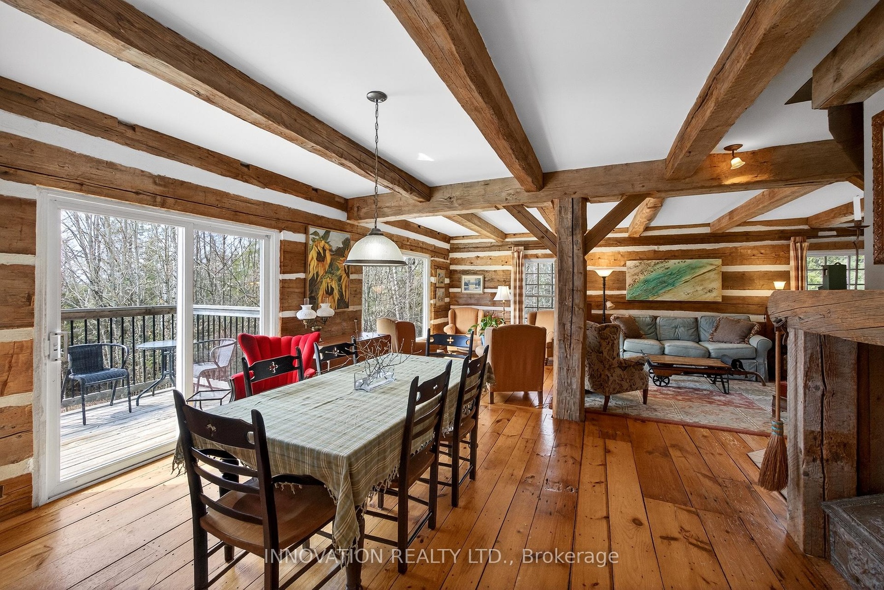 In a word-exceptional. Opportunities like this rarely come along. Nestled on 33.9 acres of mature forest and open fields near the charming Town of Almonte, just west of Ottawa, this beautiful 5-bedroom, 4-bathroom log home offers over 2,600 square feet of beautifully finished living space and a lifestyle that seamlessly blends comfort, craftsmanship, and nature. Built in 1998 using reclaimed hewn logs dating back to the 1850s, the home showcases timeless character with 12"x12" ash timber post-and-beam construction, wide plank flooring, and reclaimed pine barn board accents throughout.Thoughtfully designed for modern living, the spacious floor plan features a bright, open-concept layout with a well-appointed kitchen. Expansive south-facing windows flood the home with natural light overlooking the expansive deck, screened in porch while offering breathtaking views of the surrounding forest and wildlife.The fully finished walk-out basement provides excellent potential for an in-law suite, guest retreat, or teen getaway. Zoned heating and cooling systems ensure year-round comfort and energy efficiency, complemented by impressive insulation values.Outdoors, the property is nothing short of extraordinary. Explore over 3 km of private trails ideal for hiking, horseback riding, or cross-country skiing. Enjoy peaceful mornings watching deer and birds from your backyard, relax by the swimming pool, or make use of the charming timber frame barn & fenced sand riding ring. Perfectly positioned for both privacy and convenience, this remarkable estate is just a short drive to Kanata, Almonte, and Pakenham, with easy access to local recreation including nearby whitewater in Blakeney, multi-purpose trail and Burnt Lands Provincial Park. This is more than a home, it's a retreat, a lifestyle, and a rare opportunity to live with modern comfort in harmony with nature.