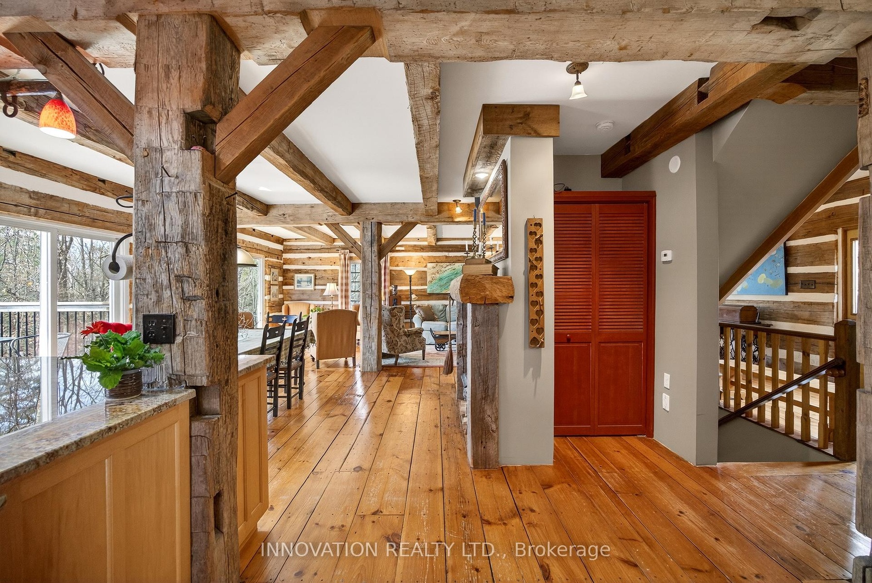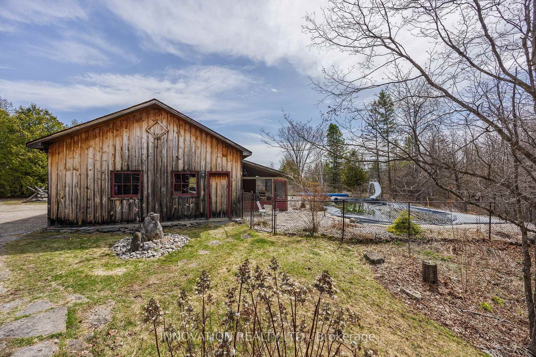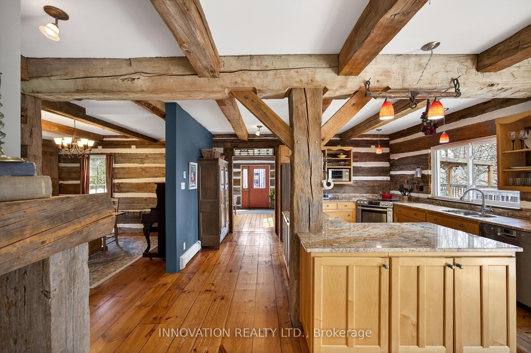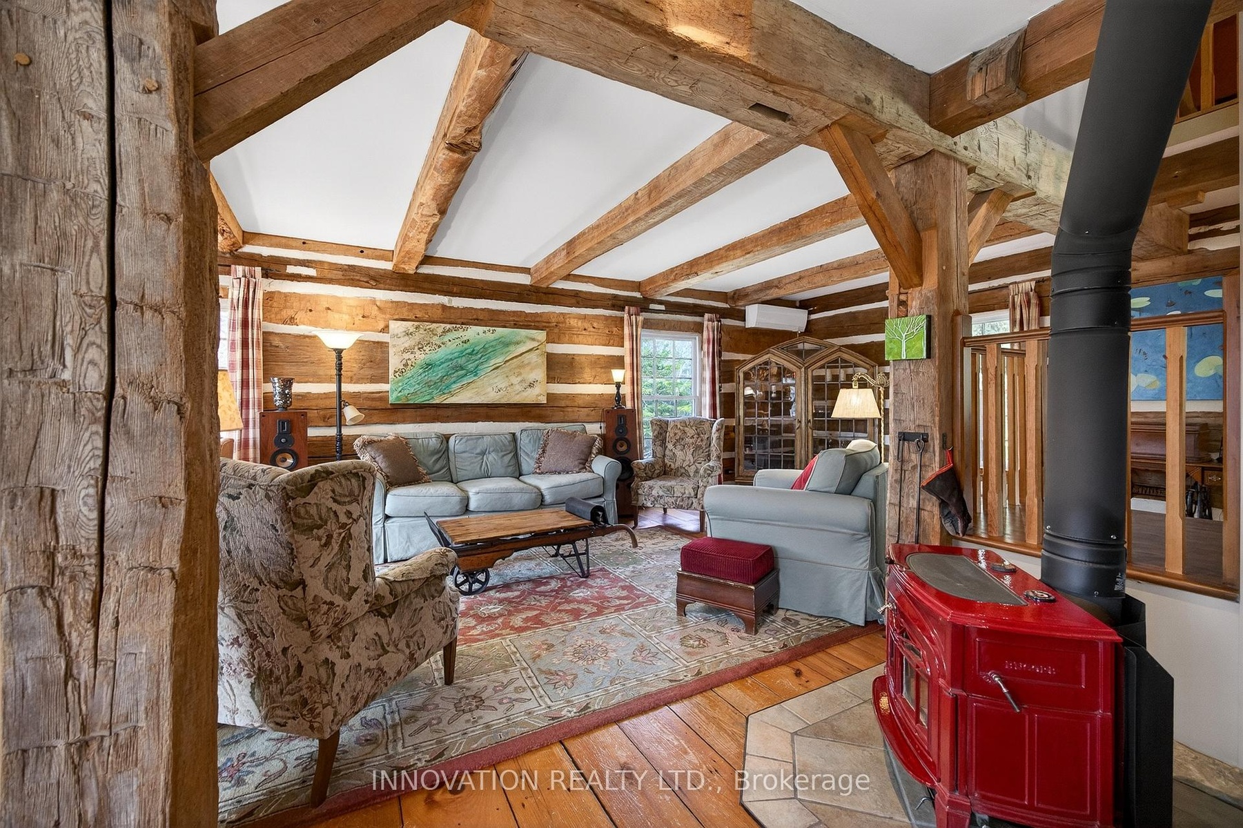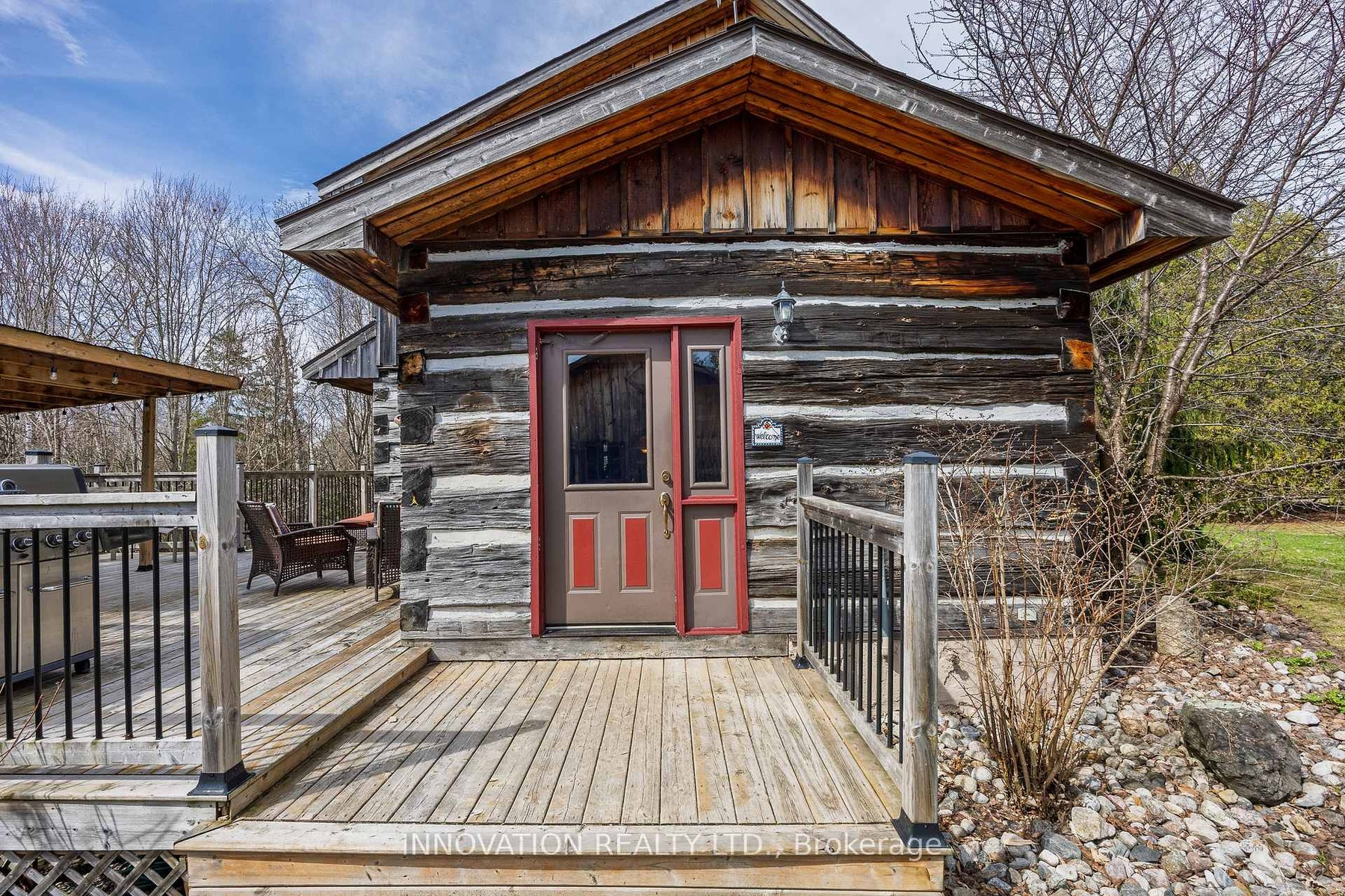 In a word-exceptional. Opportunities like this rarely come along. Nestled on 33.9 acres of mature forest and open fields near the charming Town of Almonte, just west of Ottawa, this beautiful 5-bedroom, 4-bathroom log home offers over 2,600 square feet of beautifully finished living space and a lifestyle that seamlessly blends comfort, craftsmanship, and nature. Built in 1998 using reclaimed hewn logs dating back to the 1850s, the home showcases timeless character with 12"x12" ash timber post-and-beam construction, wide plank flooring, and reclaimed pine barn board accents throughout.Thoughtfully designed for modern living, the spacious floor plan features a bright, open-concept layout with a well-appointed kitchen. Expansive south-facing windows flood the home with natural light overlooking the expansive deck, screened in porch while offering breathtaking views of the surrounding forest and wildlife.The fully finished walk-out basement provides excellent potential for an in-law suite, guest retreat, or teen getaway. Zoned heating and cooling systems ensure year-round comfort and energy efficiency, complemented by impressive insulation values.Outdoors, the property is nothing short of extraordinary. Explore over 3 km of private trails ideal for hiking, horseback riding, or cross-country skiing. Enjoy peaceful mornings watching deer and birds from your backyard, relax by the swimming pool, or make use of the charming timber frame barn & fenced sand riding ring. Perfectly positioned for both privacy and convenience, this remarkable estate is just a short drive to Kanata, Almonte, and Pakenham, with easy access to local recreation including nearby whitewater in Blakeney, multi-purpose trail and Burnt Lands Provincial Park. This is more than a home, it's a retreat, a lifestyle, and a rare opportunity to live with modern comfort in harmony with nature.
