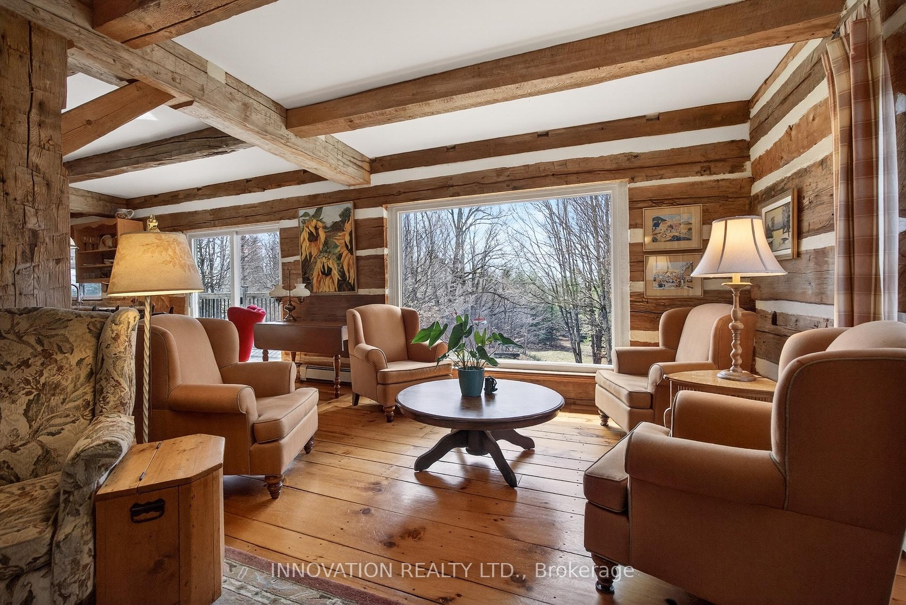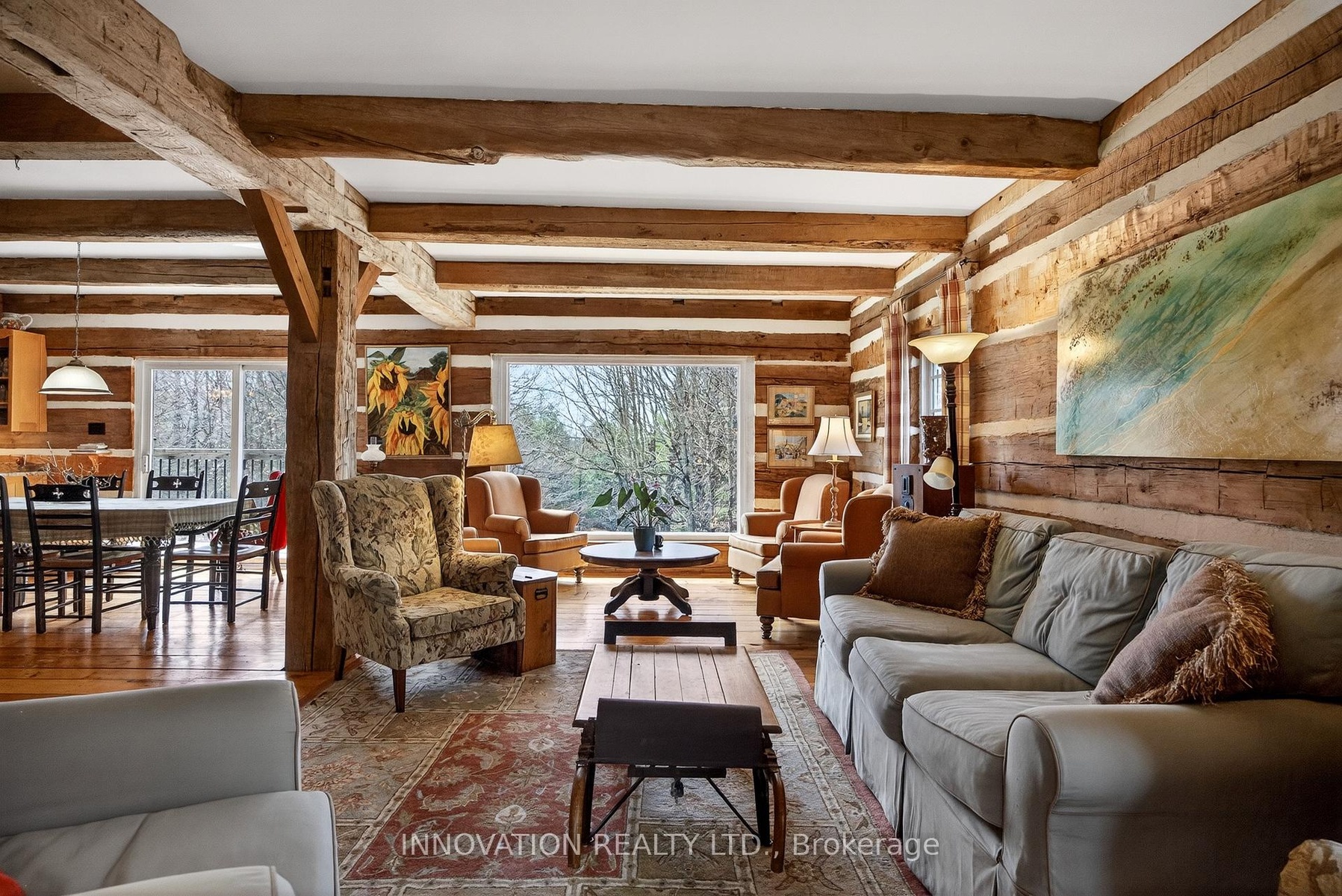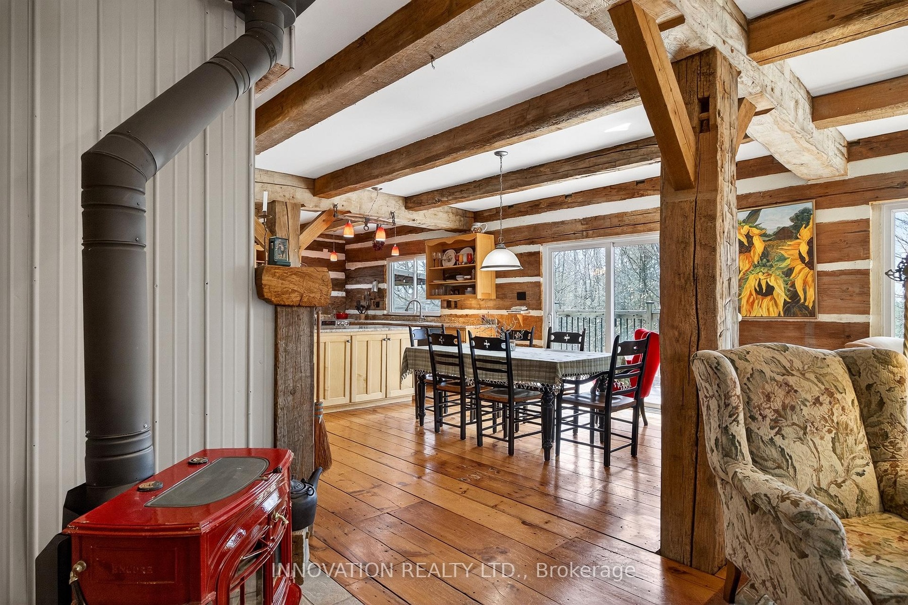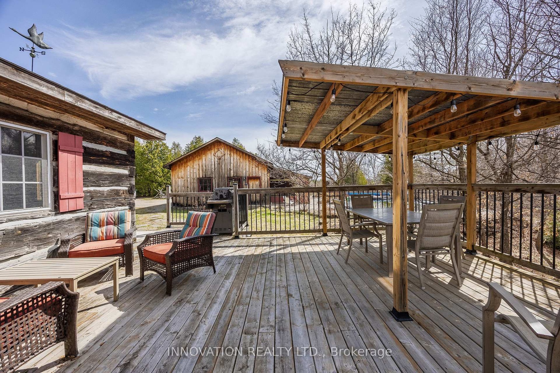 In a word-exceptional. Opportunities like this rarely come along. Nestled on 33.9 acres of mature forest and open fields near the charming Town of Almonte, just west of Ottawa, this beautiful 5-bedroom, 4-bathroom log home offers over 2,600 square feet of beautifully finished living space and a lifestyle that seamlessly blends comfort, craftsmanship, and nature. Built in 1998 using reclaimed hewn logs dating back to the 1850s, the home showcases timeless character with 12"x12" ash timber post-and-beam construction, wide plank flooring, and reclaimed pine barn board accents throughout.Thoughtfully designed for modern living, the spacious floor plan features a bright, open-concept layout with a well-appointed kitchen. Expansive south-facing windows flood the home with natural light overlooking the expansive deck, screened in porch while offering breathtaking views of the surrounding forest and wildlife.The fully finished walk-out basement provides excellent potential for an in-law suite, guest retreat, or teen getaway. Zoned heating and cooling systems ensure year-round comfort and energy efficiency, complemented by impressive insulation values.Outdoors, the property is nothing short of extraordinary. Explore over 3 km of private trails ideal for hiking, horseback riding, or cross-country skiing. Enjoy peaceful mornings watching deer and birds from your backyard, relax by the swimming pool, or make use of the charming timber frame barn & fenced sand riding ring. Perfectly positioned for both privacy and convenience, this remarkable estate is just a short drive to Kanata, Almonte, and Pakenham, with easy access to local recreation including nearby whitewater in Blakeney, multi-purpose trail and Burnt Lands Provincial Park. This is more than a home, it's a retreat, a lifestyle, and a rare opportunity to live with modern comfort in harmony with nature.