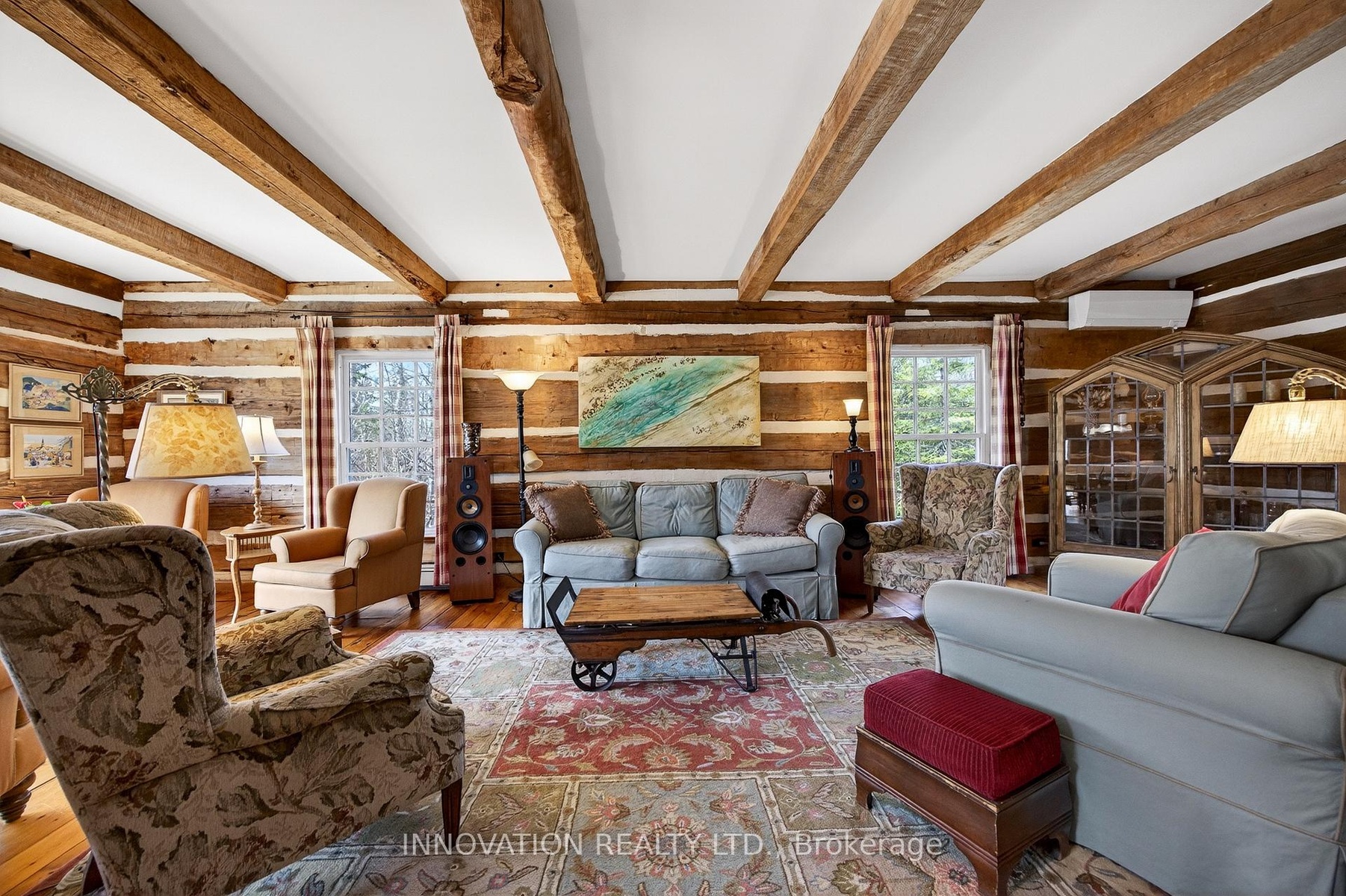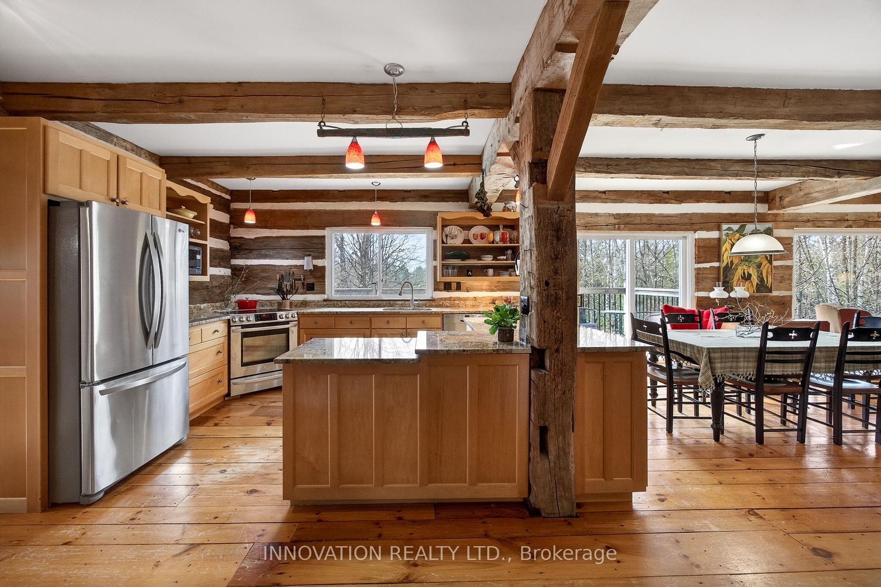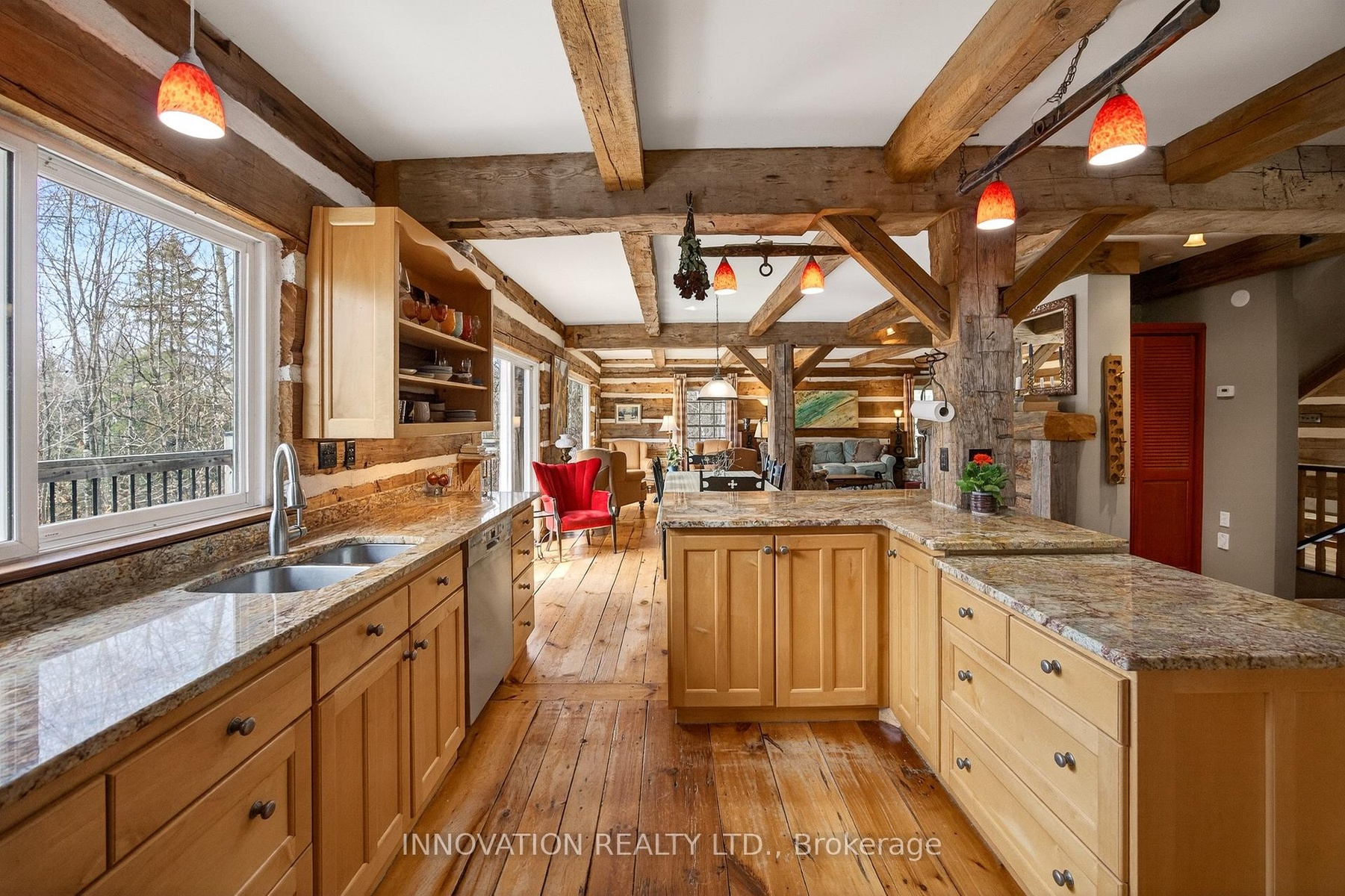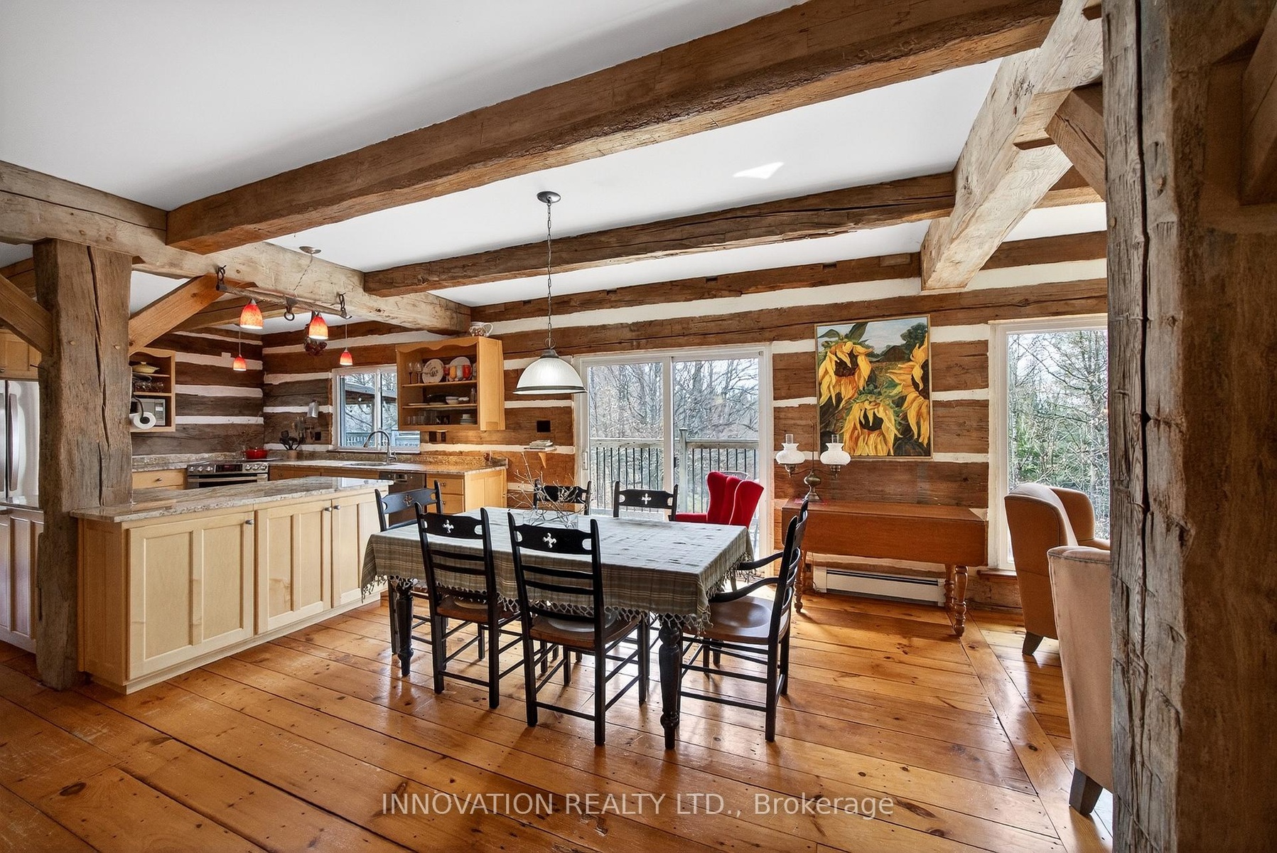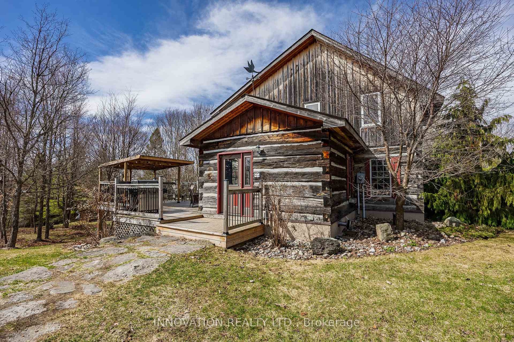 In a word-exceptional. Opportunities like this rarely come along. Nestled on 33.9 acres of mature forest and open fields near the charming Town of Almonte, just west of Ottawa, this beautiful 5-bedroom, 4-bathroom log home offers over 2,600 square feet of beautifully finished living space and a lifestyle that seamlessly blends comfort, craftsmanship, and nature. Built in 1998 using reclaimed hewn logs dating back to the 1850s, the home showcases timeless character with 12"x12" ash timber post-and-beam construction, wide plank flooring, and reclaimed pine barn board accents throughout.Thoughtfully designed for modern living, the spacious floor plan features a bright, open-concept layout with a well-appointed kitchen. Expansive south-facing windows flood the home with natural light overlooking the expansive deck, screened in porch while offering breathtaking views of the surrounding forest and wildlife.The fully finished walk-out basement provides excellent potential for an in-law suite, guest retreat, or teen getaway. Zoned heating and cooling systems ensure year-round comfort and energy efficiency, complemented by impressive insulation values.Outdoors, the property is nothing short of extraordinary. Explore over 3 km of private trails ideal for hiking, horseback riding, or cross-country skiing. Enjoy peaceful mornings watching deer and birds from your backyard, relax by the swimming pool, or make use of the charming timber frame barn & fenced sand riding ring. Perfectly positioned for both privacy and convenience, this remarkable estate is just a short drive to Kanata, Almonte, and Pakenham, with easy access to local recreation including nearby whitewater in Blakeney, multi-purpose trail and Burnt Lands Provincial Park. This is more than a home, it's a retreat, a lifestyle, and a rare opportunity to live with modern comfort in harmony with nature.