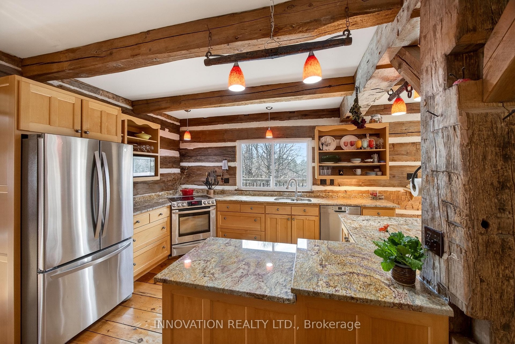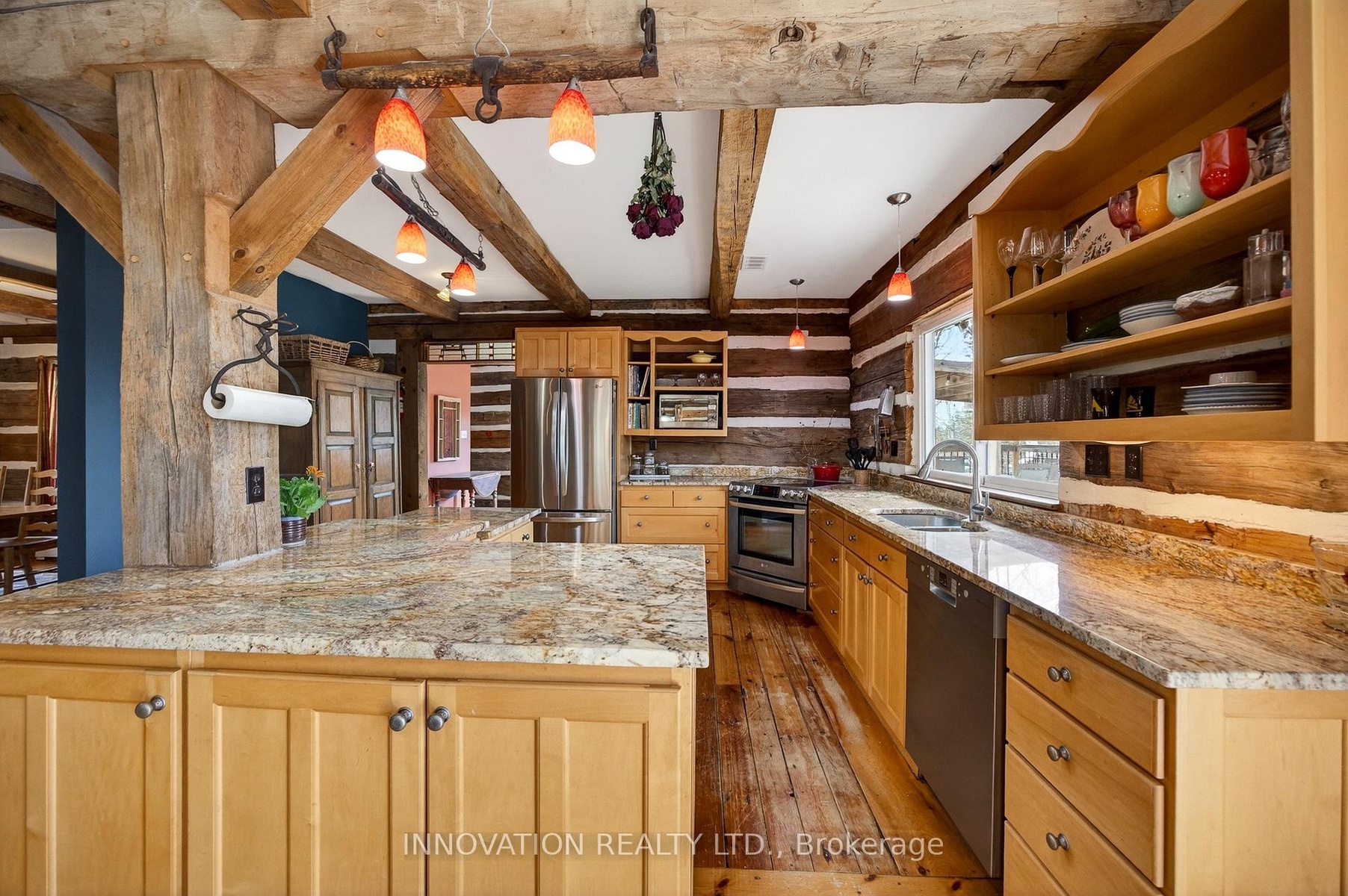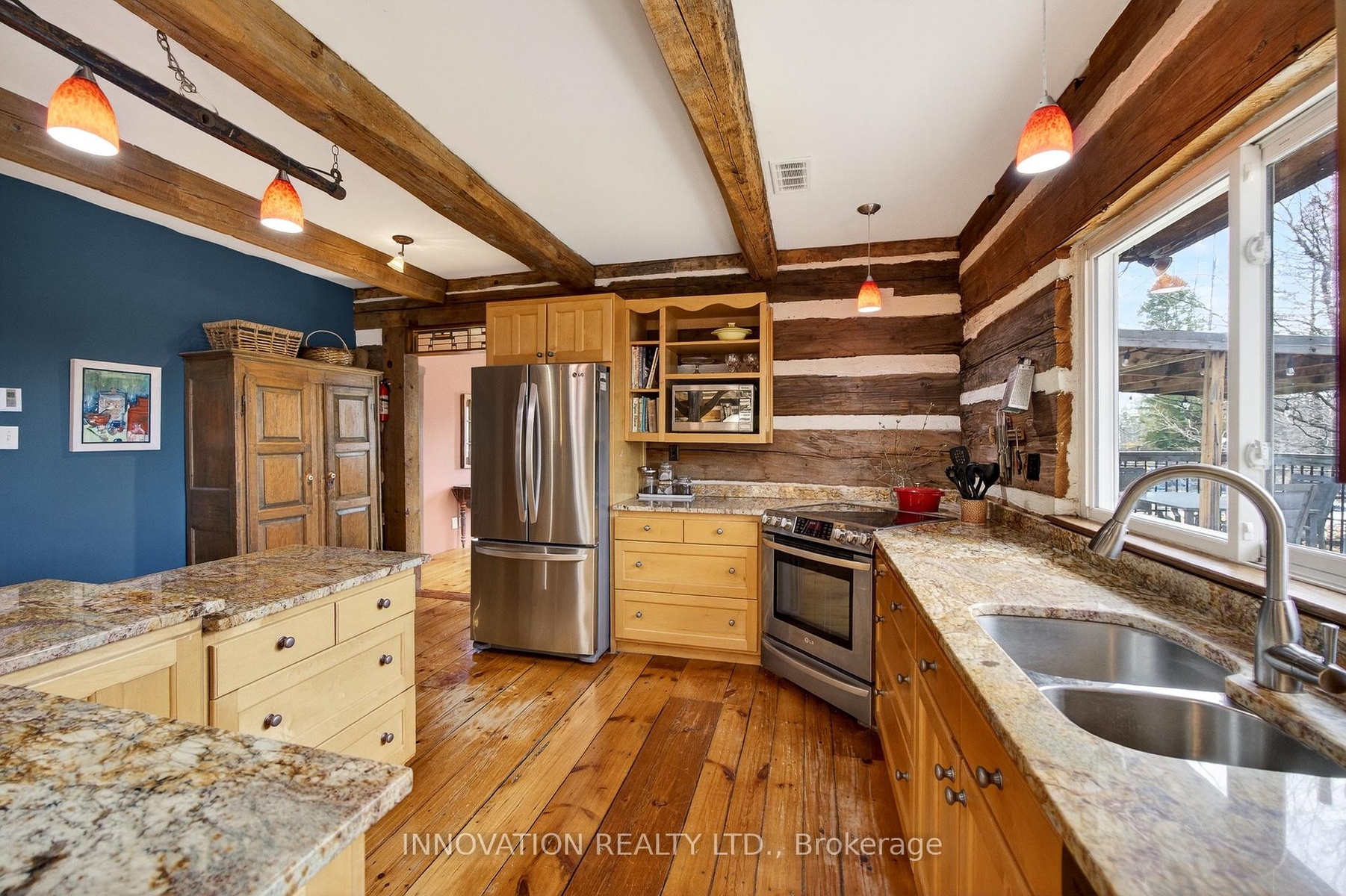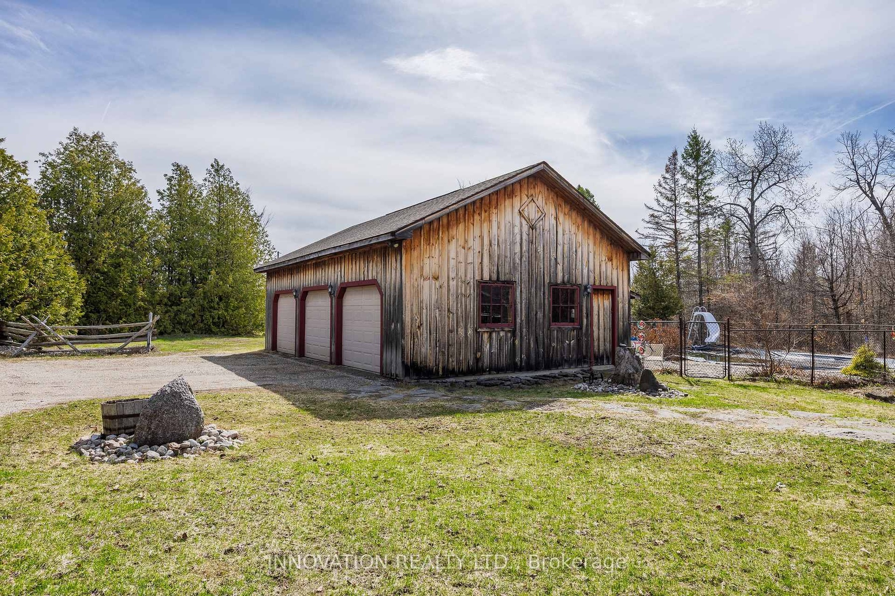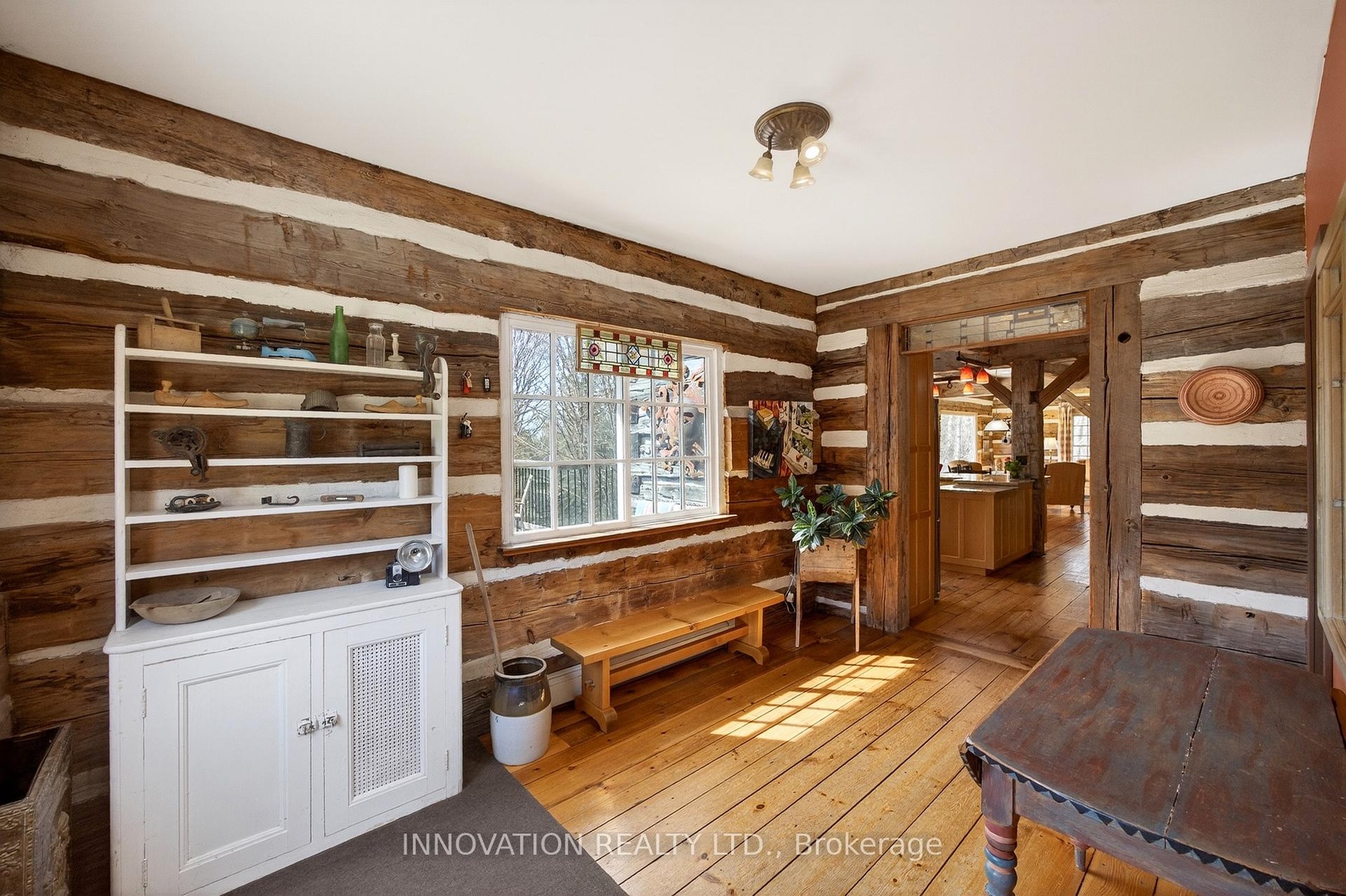 In a word-exceptional. Opportunities like this rarely come along. Nestled on 33.9 acres of mature forest and open fields near the charming Town of Almonte, just west of Ottawa, this beautiful 5-bedroom, 4-bathroom log home offers over 2,600 square feet of beautifully finished living space and a lifestyle that seamlessly blends comfort, craftsmanship, and nature. Built in 1998 using reclaimed hewn logs dating back to the 1850s, the home showcases timeless character with 12"x12" ash timber post-and-beam construction, wide plank flooring, and reclaimed pine barn board accents throughout.Thoughtfully designed for modern living, the spacious floor plan features a bright, open-concept layout with a well-appointed kitchen. Expansive south-facing windows flood the home with natural light overlooking the expansive deck, screened in porch while offering breathtaking views of the surrounding forest and wildlife.The fully finished walk-out basement provides excellent potential for an in-law suite, guest retreat, or teen getaway. Zoned heating and cooling systems ensure year-round comfort and energy efficiency, complemented by impressive insulation values.Outdoors, the property is nothing short of extraordinary. Explore over 3 km of private trails ideal for hiking, horseback riding, or cross-country skiing. Enjoy peaceful mornings watching deer and birds from your backyard, relax by the swimming pool, or make use of the charming timber frame barn & fenced sand riding ring. Perfectly positioned for both privacy and convenience, this remarkable estate is just a short drive to Kanata, Almonte, and Pakenham, with easy access to local recreation including nearby whitewater in Blakeney, multi-purpose trail and Burnt Lands Provincial Park. This is more than a home, it's a retreat, a lifestyle, and a rare opportunity to live with modern comfort in harmony with nature.