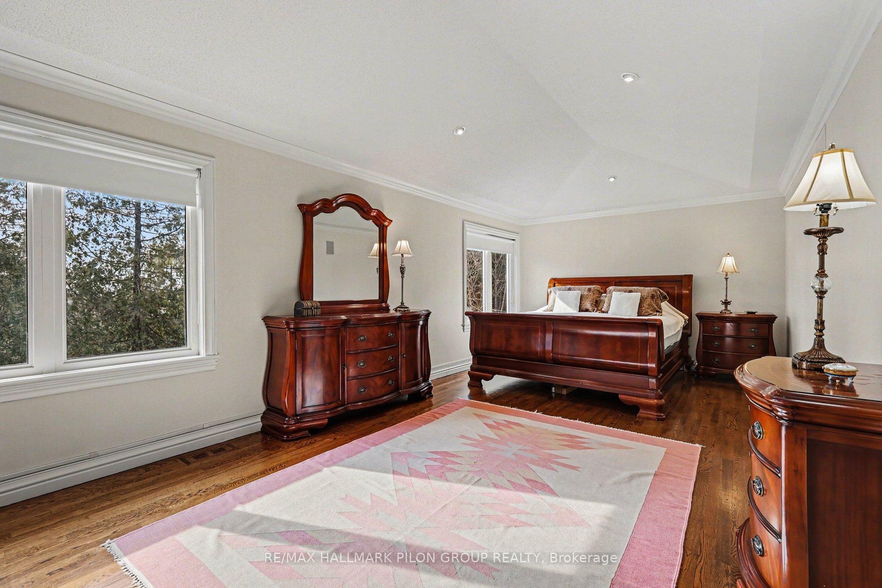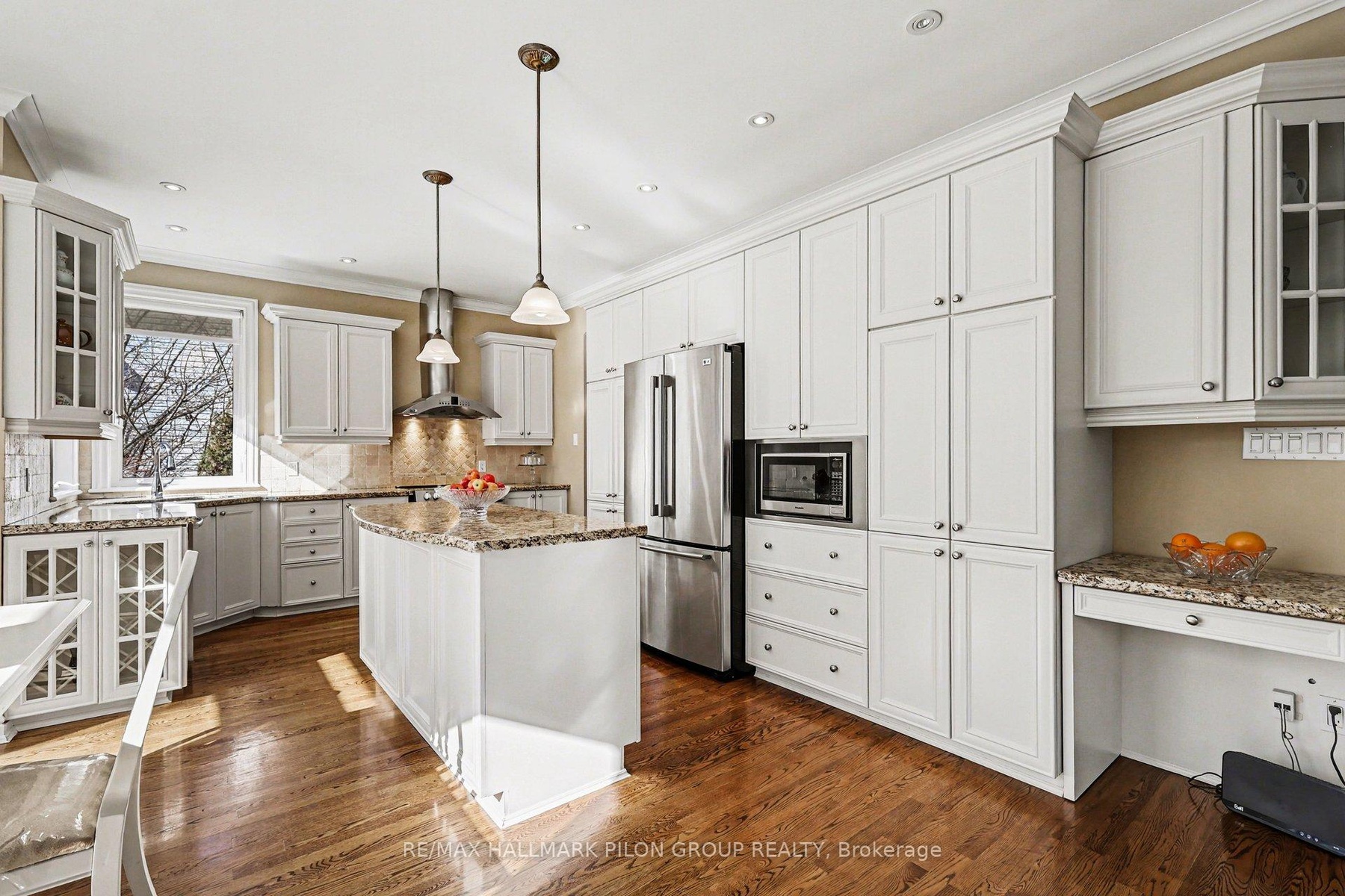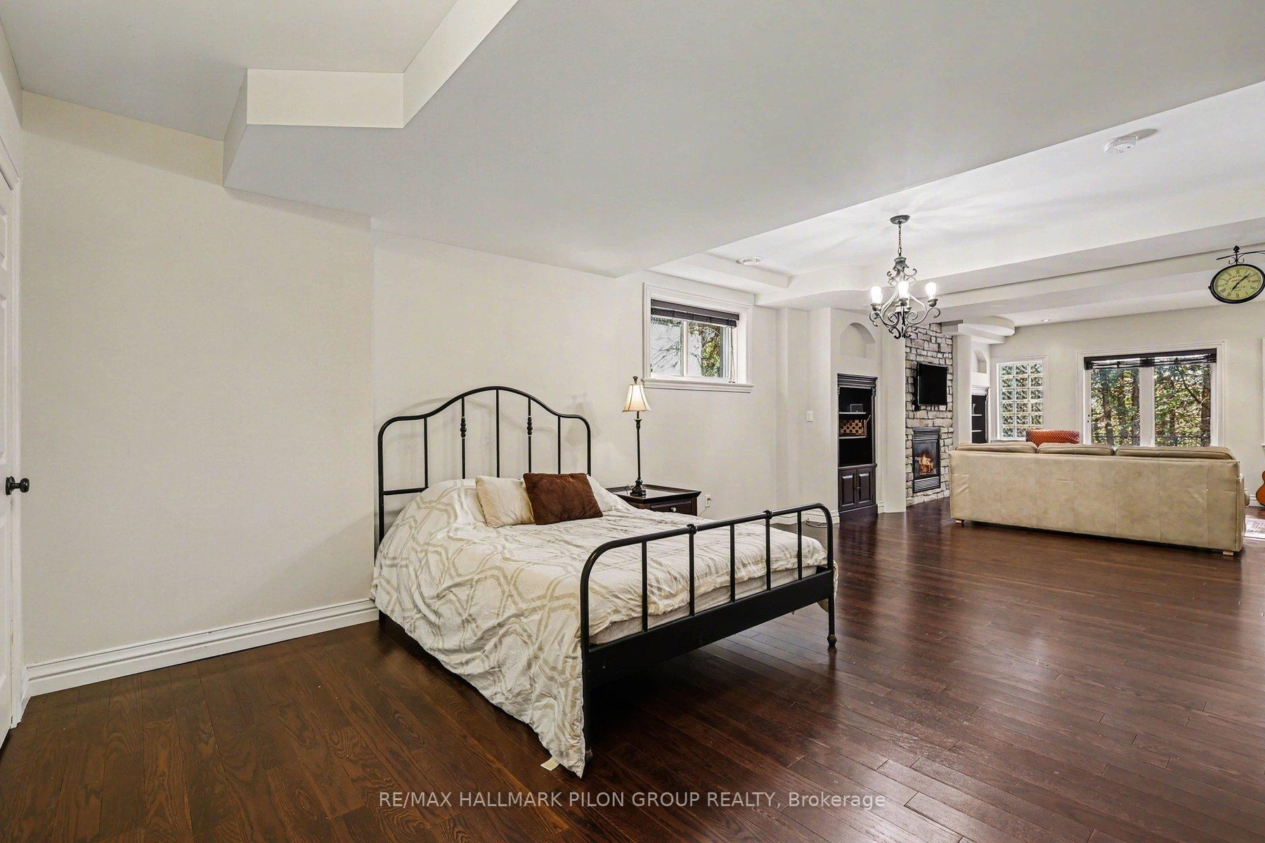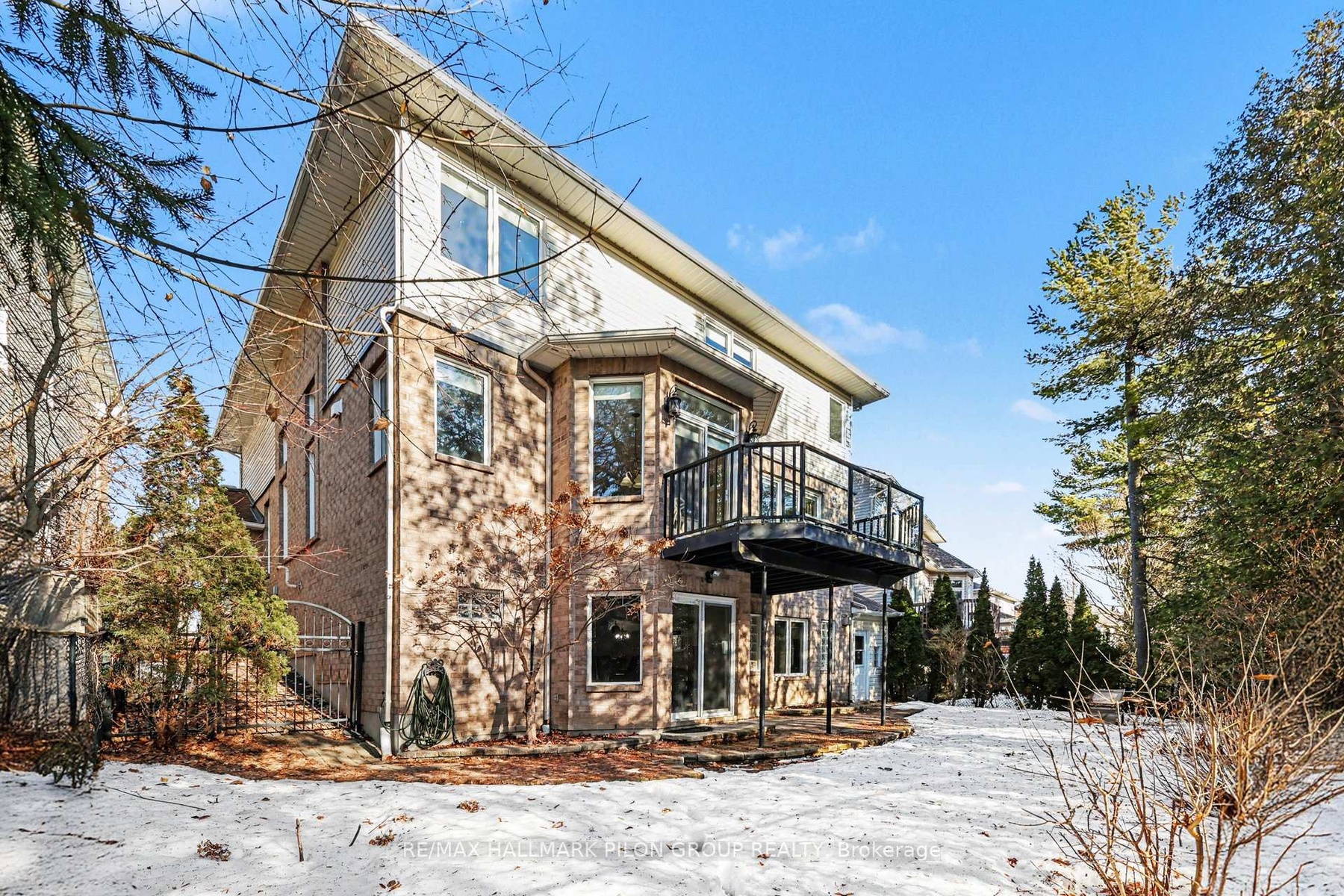 This impeccably maintained 4-bedroom home is completely turnkey & shows like a model home; welcome to 163 Copperwood St. Step into the spacious foyer, thoughtfully designed w/grand principal rooms & opulent finishes throughout. The formal living room is both elegant & inviting, highlighted by a 2-sided gas fireplace that also serves the family room. This warm and comfortable gathering space features gorgeous built-in shelving flanking the fireplace & large window overlooking the private backyard. The formal dining room is perfectly positioned next to the kitchen & reflects the sophistication of the home with its soaring 2-storey ceiling. The eat-in kitchen is sure to impress any home chef, offering magazine-worthy finishes including rich cabinetry, luxurious granite countertops, sleek stainless-steel appliances, an oversized island, & bonus desk space. A curved hardwood staircase leads to the 2nd floor, where the expansive primary retreat truly lives up to its name. This spacious suite can easily accommodate any size bedroom set and features an oversized walk-in closet along with access to the luxurious 5pc ensuite w/double sinks, glass shower, & oversized soaker tub. Hardwood stairs continue to the fully finished walk-out basement, an exceptional extension of the living space that is ideal for a teenage retreat, visiting guests, or multigenerational living. This level features a dedicated area perfect for a bedroom complete w/2 closets, a full bathroom, and a fantastic rec room anchored by a second gas fireplace w/elegant stone surround & custom built-in shelving. A beautiful wet bar & dining area make entertaining effortless, while 2 separate storage rooms provide an abundance of practical storage space. Patio doors from this level lead to the private & serene backyard. With no rear neighbours, this outdoor space offers wonderful privacy & an inviting setting to enjoy the warmer months, whether relaxing on the stone patio or entertaining family & friends.