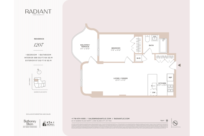 Situated in an emerging residential enclave in Long Island City, Radiant is moments from numerous restaurants, bars, cafes, and shops. MoMA PS1, Brooklyn Boulders, Queensbridge Park, Target, and Murray Playground are all a few blocks away. Accessible subway lines include the 7/E/R/N/W/M/F. Pets are allowed.