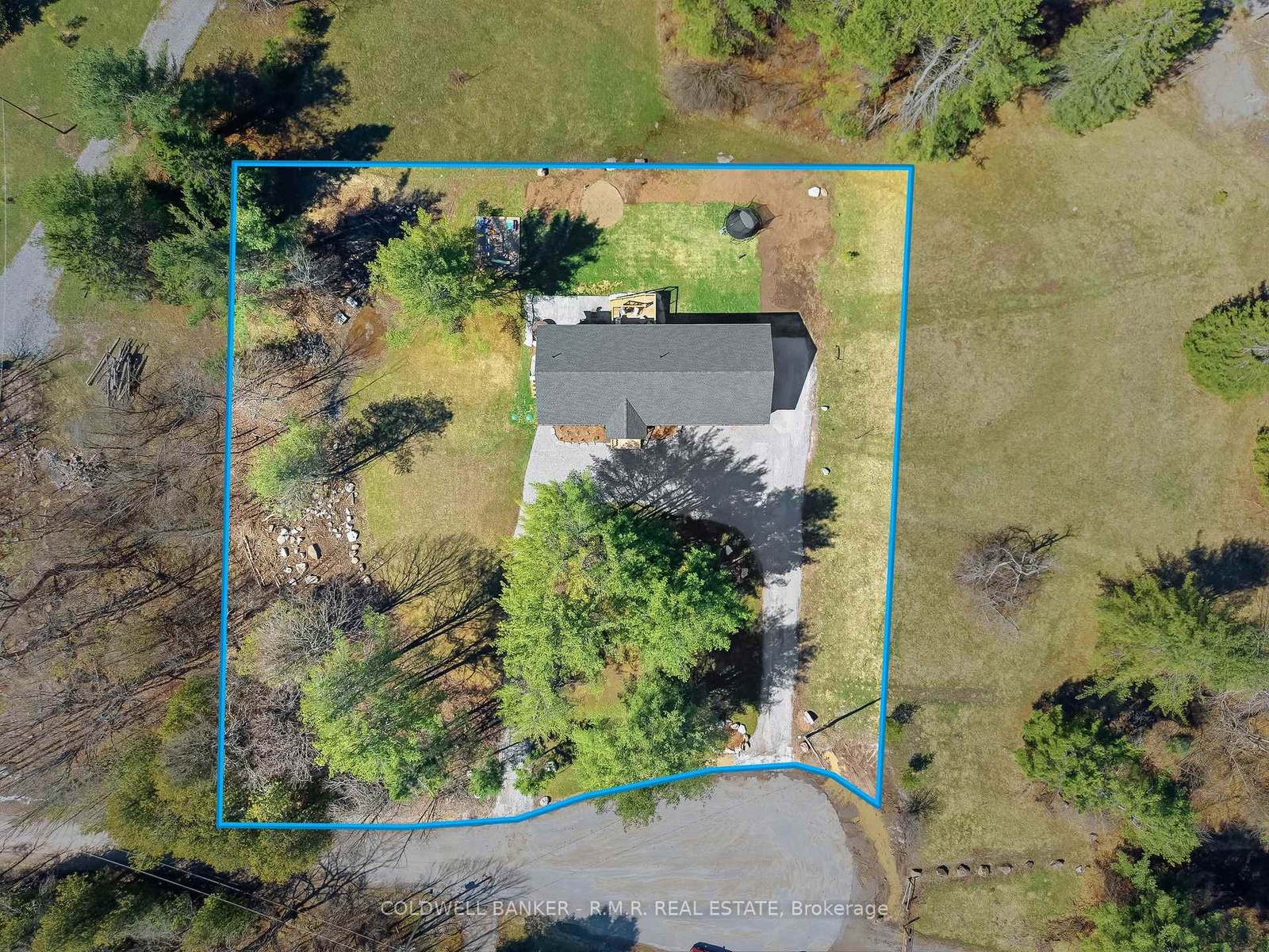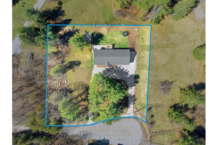 Welcome to this custom-built bungalow tucked away on a private country lot at the end of a paved cul-de-sac, surrounded by mature trees and offering desirable east/west exposure. Thoughtfully designed with 3 bedrooms and open-concept main-floor living, this home features 9' ceilings throughout and an impressive 12.5' vaulted ceiling in the living room. The kitchen is well appointed with a center island, ample storage, and patio doors leading to the deck-perfect for outdoor entertaining. The primary suite boasts a walk-in closet and a 4-piece ensuite with an enormous walk-in shower. Enjoy the convenience of main-floor laundry with direct access to the oversized garage. The fully finished walk-out basement offers a spacious rec room with large windows, a den, rough-in plumbing for a wet bar, and a 3-piece bath complete with a walk-in shower, seat, and linen closet. Exterior highlights include tremendous parking, a circular driveway, armour stone landscaping, and a stamped concrete patio area. Additional features include custom window coverings, propane forced-air heating, and a heat pump. A rare combination of privacy, quality craftsmanship, and functional living-this property truly has it all.