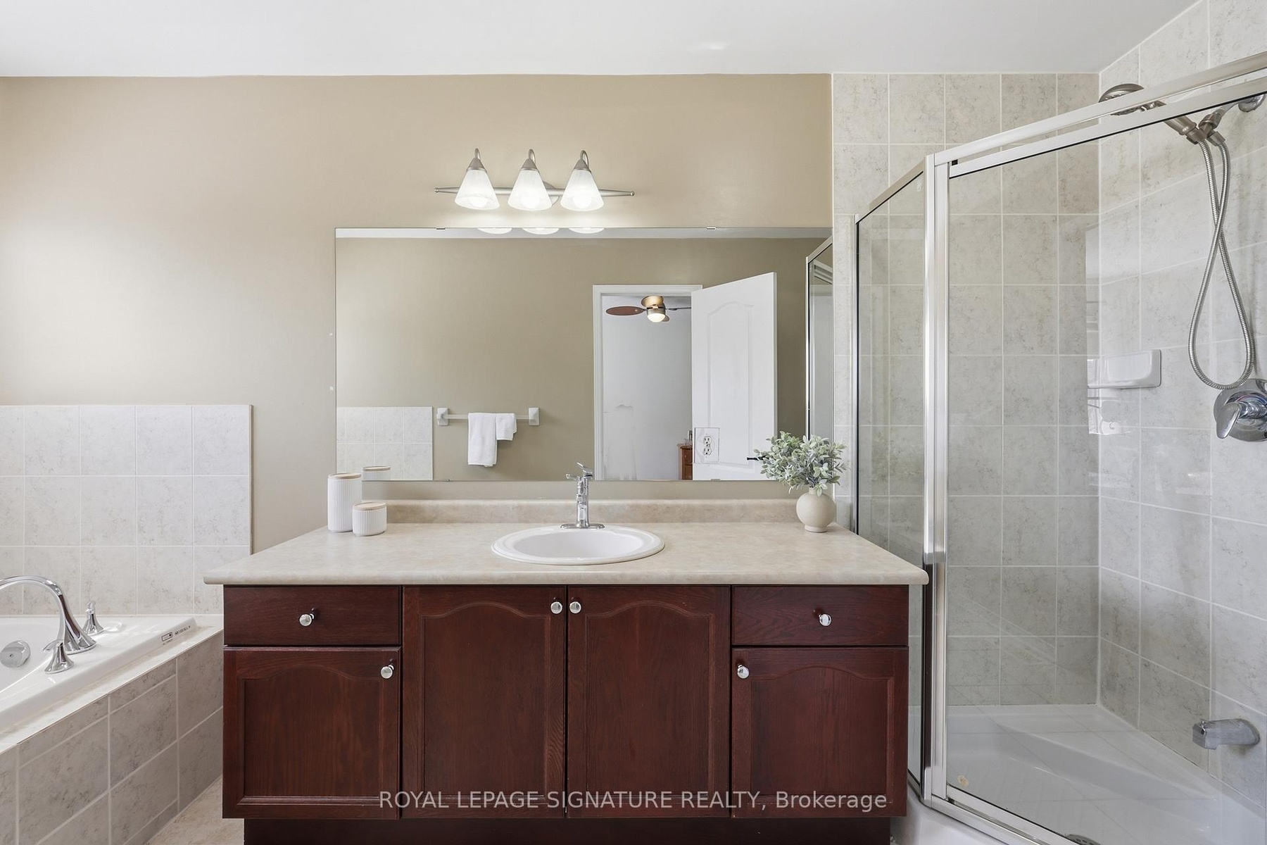 Nestled in a vibrant, family-friendly community, this meticulously maintained 3-bedroom, 3.5-bath residence offers exceptional comfort and convenience. Featuring 9 ft ceilings on the main level, the home welcomes you with a spacious foyer and double-door entry, along with convenient direct garage access. The main floor showcases maple hardwood flooring throughout, an elegant oak staircase, and pot lights that brighten the space with a modern touch. California shutters in the living room addboth style and privacy. The open-concept layout is ideal for both everyday living and entertaining. The kitchen is equipped with oak cabinetry, stainless steel appliances, built-in microwave, dishwasher, and a breakfast bar with seating for four. The inviting living room features a modern electric fireplace and a walk-out to a spacious, renovated deck - perfect for seamless indoor-outdoor living. Upstairs, laminate flooring continues throughout, offering a stylish, carpet-free upper level.The primary bedroom features a custom walk-in closet with a built-in organizer and a well-appointed 4-piece ensuite bathroom. The second and third bedrooms also include custom closet organizers, maximizing storage and functionality for the entire family. All bathrooms have been upgraded with brand new dual-flush toilets, adding both efficiency and modern convenience. The home has been freshly painted within the last three years, reflecting true pride of ownership and move-in-ready appeal. The garage has been thoughtfully upgraded with custom cabinetry and a custom-built loft,providing exceptional additional storage and organization. Ideally situated close to parks, a high school, and nearby shopping plazas, this property is just minutes to Heartland Town Centre and Square One Shopping Centre, providing excellent access to amenities while maintaining a desirable neighbourhood setting. Come experience the comfort, style, and convenience this beautiful home has to offer - book your showing today!