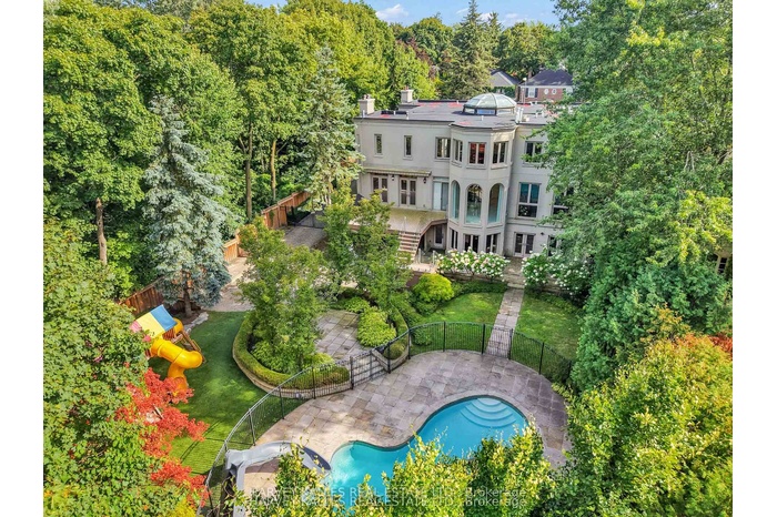 A Unique Offering In The Heart Of Lytton Park. Rarely Does An Opportunity Arise To Own A Residence In This Coveted Location That Also Boasts A Serene, Country-Like Ravine Setting Paired With A Rare Double-Sized Estate Lot Offering Exceptional Frontage And Depth. This Lovingly Cared-For And Thoughtfully Updated Home Welcomes You With A Grand Entrance And Soaring Foyer, Leading Into Expansive Living And Dining Areas Under Dramatic Ceilings, While An Updated Eat-In Kitchen Connects Seamlessly To The Family Room And Private Office With A Separate Servery And Staircase To The Lower Level. The Second Level Features A Spacious Primary Suite With A Luxurious Ensuite And Walk-In Closet, Alongside Three Additional Generously Sized Bedrooms With Ensuites Plus An Office Or Nursery. The Lower Level Provides A Flush Walkout To A Beautifully Landscaped Yard And Includes An Oversized Entertainer's Recreation Room, Gym, Home Theatre, And A Guest Suite With Spa, Along With A Dedicated Storage Room Offering Excellent Flexibility, Easily Converted Into A Custom Wine Cellar Or Tailored To Suit Your Needs. An Oversized Integrated Garage Spanning Approximately 810 Square Feet Accommodates Two SUVs With Ease And Features Epoxy Flooring. Outdoors, A Professionally Landscaped, Park-Like Oasis Awaits With An Inground Pool, Playground, Outdoor Deck With Gas BBQ, And A Gated Heated Driveway Ensuring Privacy. Offering Over 8,500 Square Feet Of Total Living Space And Exceptional Storage Space Throughout, This Residence Combines Scale, Function, And A Truly Unmatched Setting, Just Moments To John Ross Robertson, LPCI, Lush Parks, Shops, Restaurants, And More. Truly, This Is A Home Not To Be Missed.