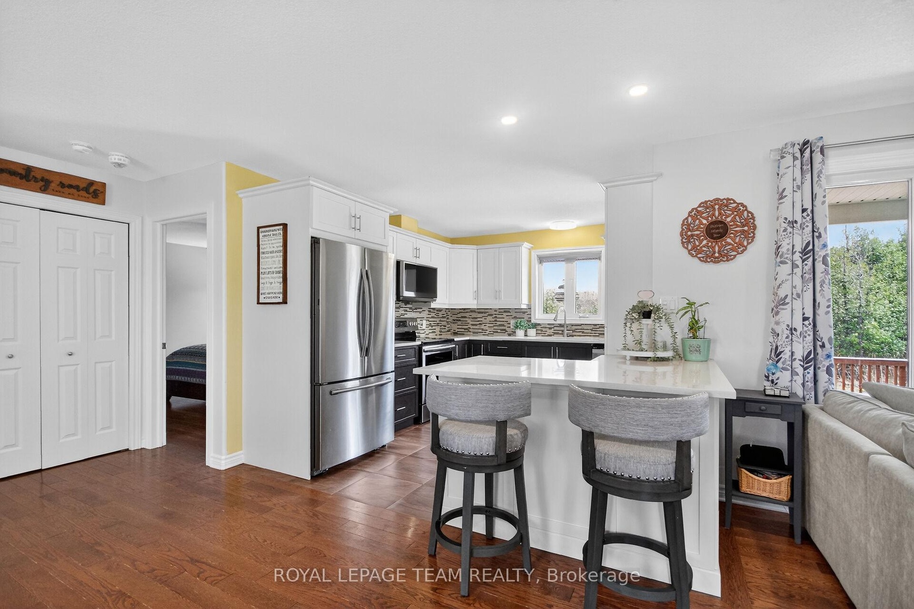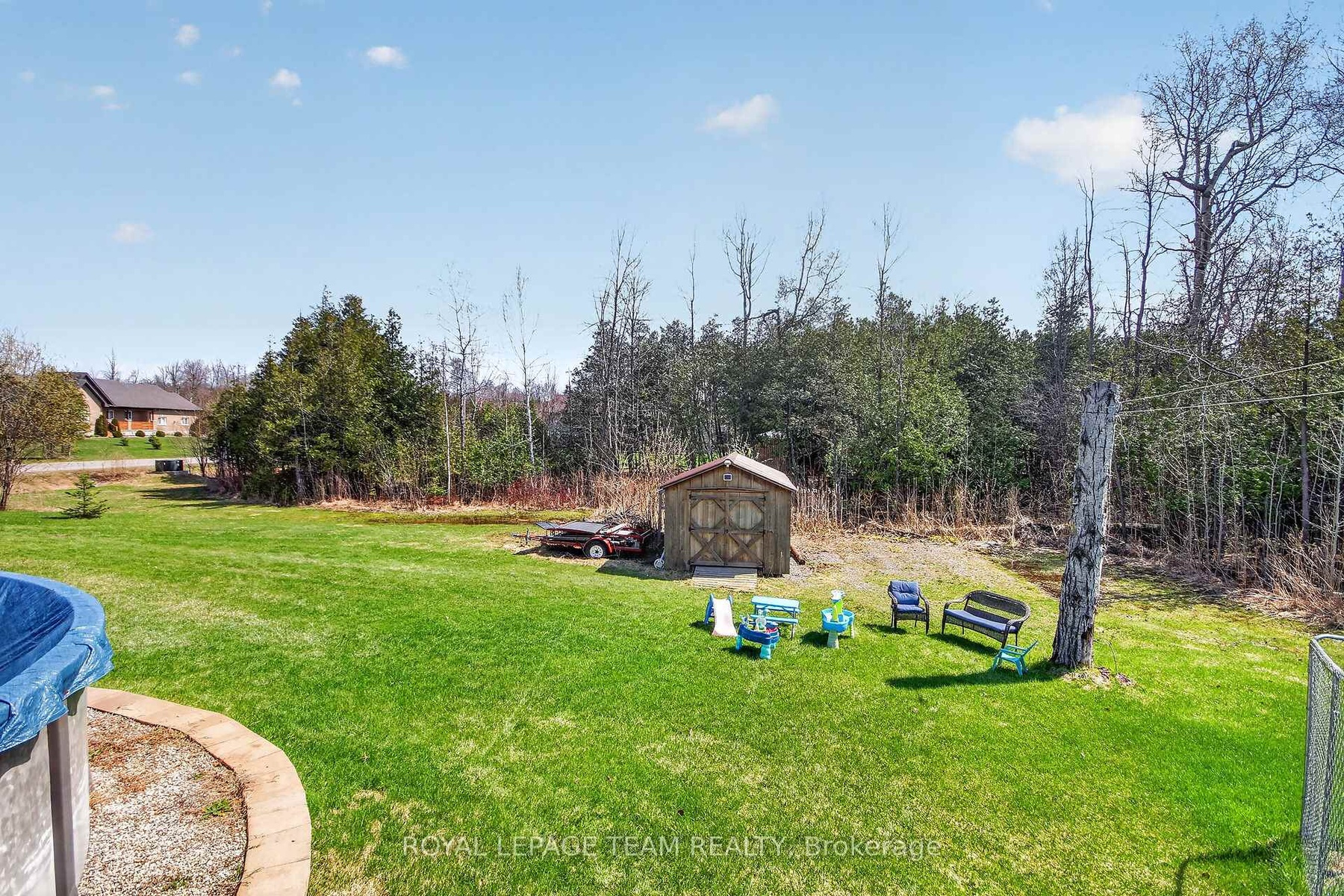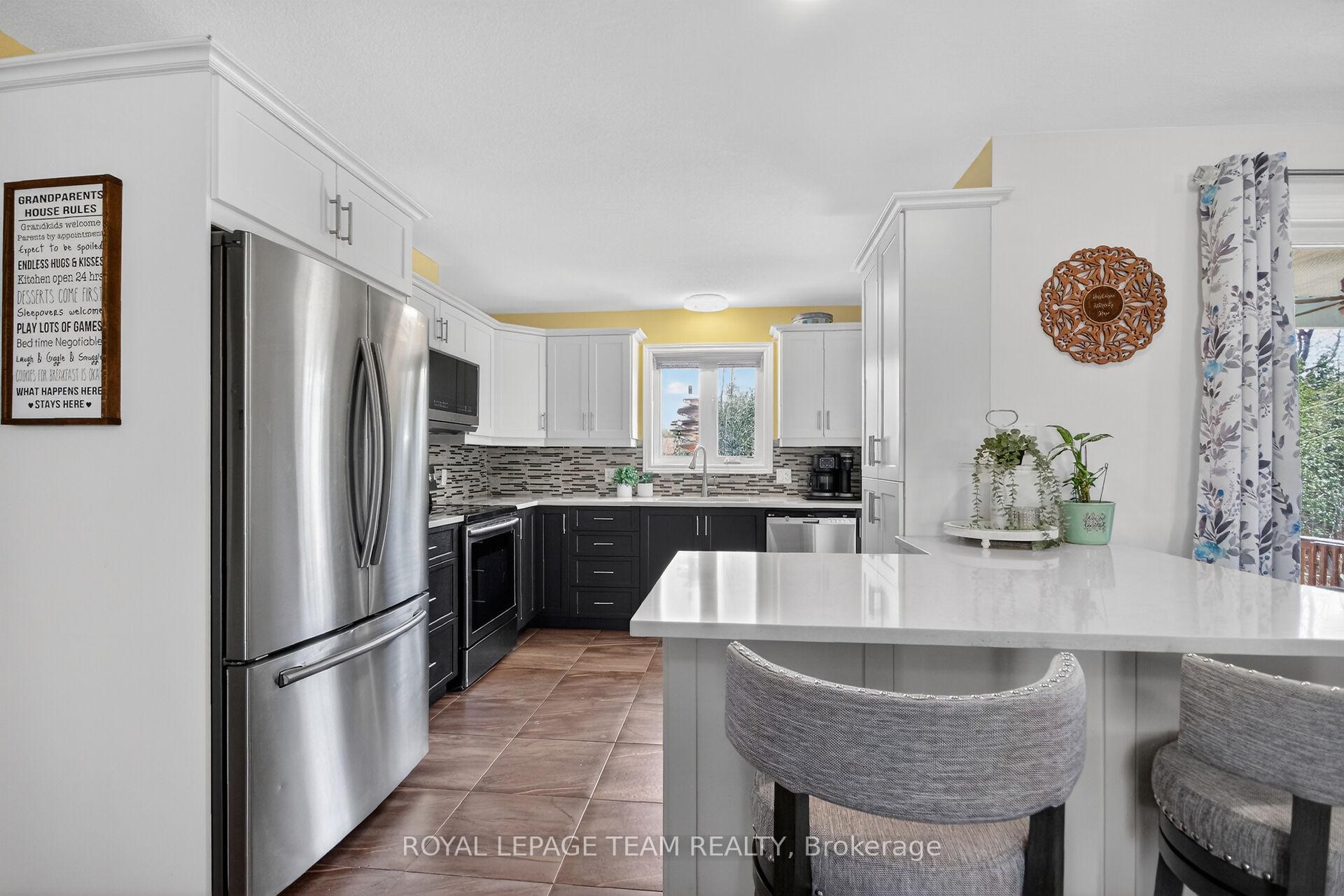 Welcome to 109 Stonewalk Drive in Stonehaven Estates, a well maintained 2016 Parkview Homes Bexley model set on a 1.02-acre corner lot. Located just minutes from Kemptville and the 416, this 1,438 sq. ft. move-in-ready home with a great layout for entertaining. The bright, open-concept main floor features hardwood and tile flooring, quartz countertops, and a kitchen with extended cabinetry and newer appliances leading to a multi-level deck. The primary suite includes a walk-in closet with custom cabinetry and an ensuite and a glass shower. Two additional bedrooms, a full bathroom, and a laundry mudroom complete the level. The fully finished basement offers a large recreation area, custom bar, den, fourth bedroom, and full bathroom. The professionally landscaped exterior serves as a private oasis with a heated above-ground chlorine pool, irrigation system, and paved driveway. Perimeter willows provide summer privacy. Notable upgrades include Bluetooth Glo Soffit lighting (2021), Keyless Entry (2021), and a newer Washer and Dryer (2022), Pool Heater 2025.