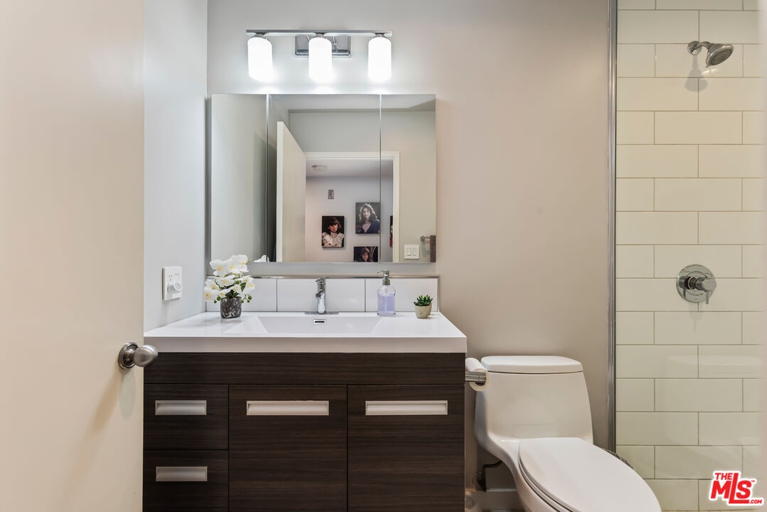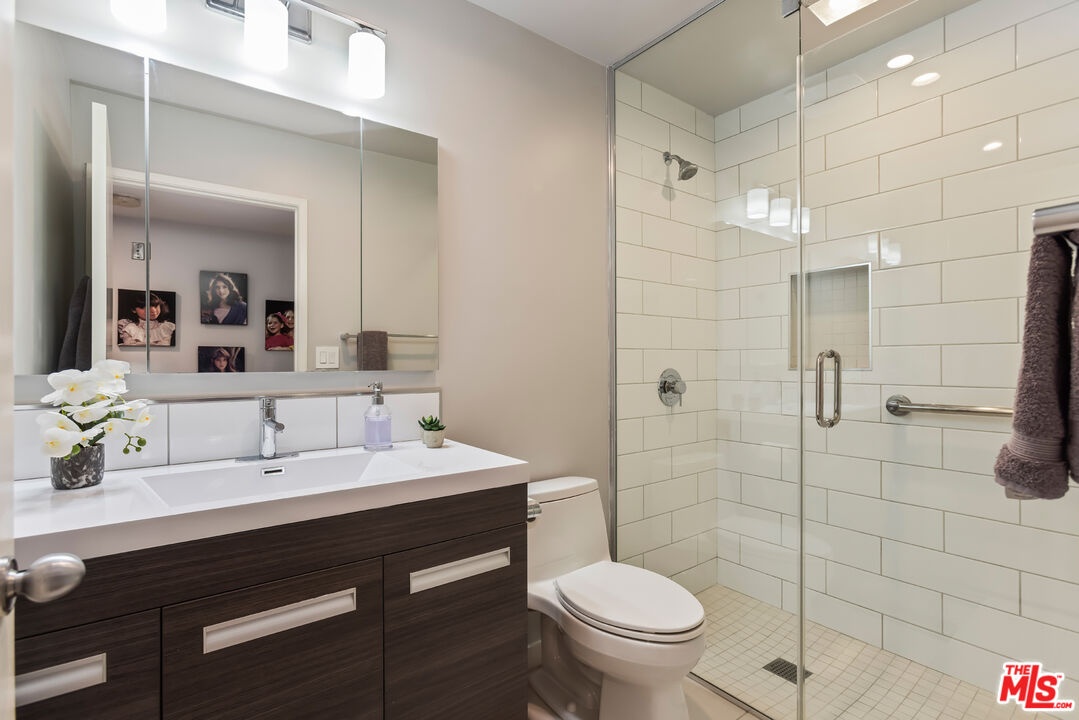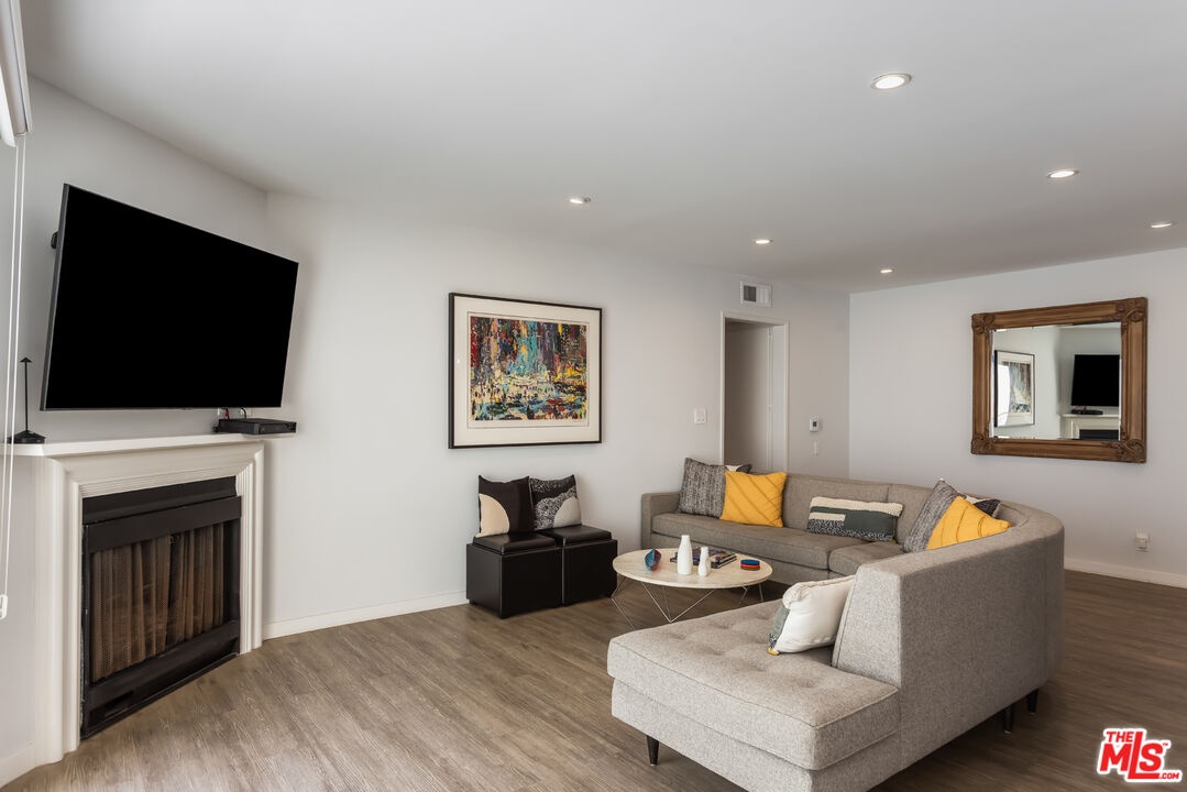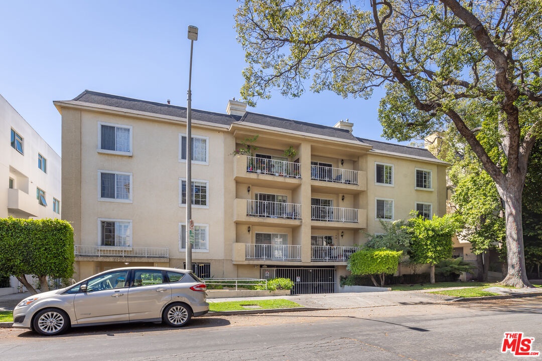 Chic, updated, single-level, top floor, private, corner unit condo with serene treetop views. The Westwood Bentley is an intimate 14-unit building on a charming tree lined street. This "done" light filled, 3 bedroom, 3 bath bright residence offers a rare opportunity to own a perfectly designed layout with a calm, zen-like feeling with no neighbors on either side. The beautifully renovated kitchen is a focal point and a cooks dream, featuring a striking waterfall island, soft close cabinetry with pull outs, Legrand pop up outlets and a premium KitchenAid appliance suite. The open concept flows seamlessly into the living and dining area ideal for both entertaining and everyday living-while a private balcony provides the perfect spot for a morning cup of ambition. Additional highlights include, recessed lighting, Hunter Douglas Silhouette coverings, vinyl plank flooring in the main living areas, dual pane windows, Central HVAC system, ample closet space, a gas fireplace and carpeting in the bedrooms. All bathrooms and kitchen were remodeled in 2021. The first bedroom offers privacy with its own en suite with full bath and separate entry, perfect for guests or extended family. Down the hall, a spacious second bedroom (currently used as a home office with built in dual desks) sits adjacent to another bath. The Primary suite is tucked in the rear and features a walk in closet and a beautifully updated full bath. The building is ADA compliant, has controlled access gated garage parking and a convenient storage closet located on the same floor as the unit. Enjoy an unbeatable location with a high walk score just minutes away from shopping and dining nearby. A short drive to UCLA, Sawtelle, Westfield Century City, Westwood and Brentwood Village, Bristol Farms, Trader Joe's and the Beach with easy freeway access. This is Westside living at it's best.