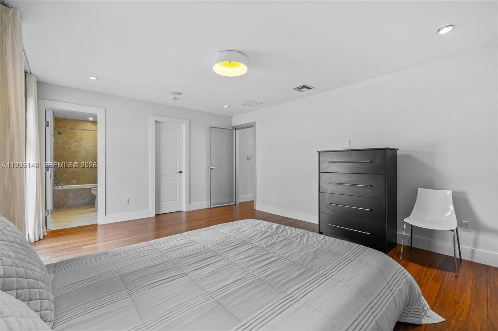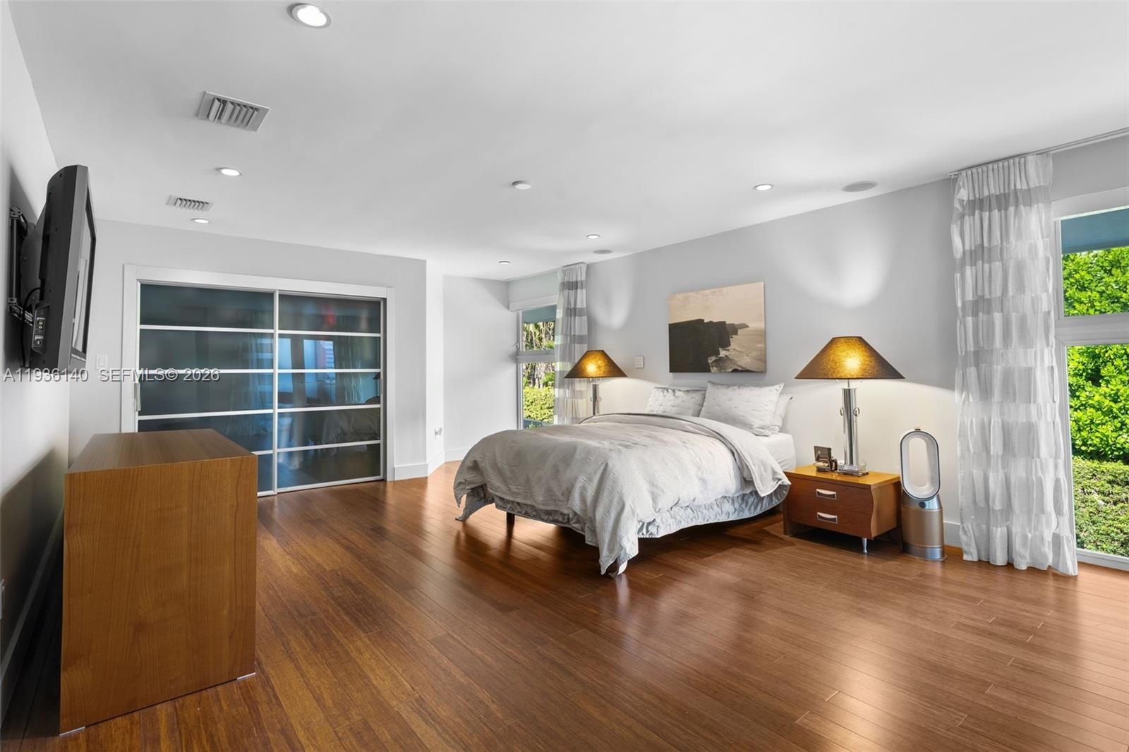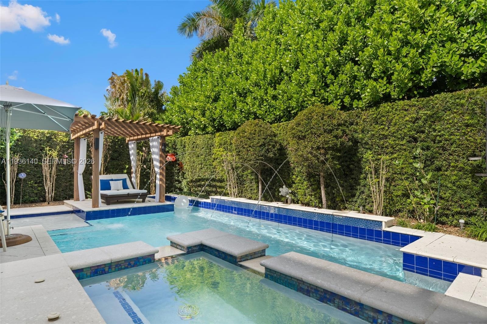Located in the heart of Bay Harbor Islands, one of Miami’s most sought-after neighborhoods, this stunning mid-century modern residence offers 5 bedrooms, 5.5 bathrooms, and over 5,000 square feet of thoughtfully designed living space, set on a 10,000-square-foot lot. Rebuilt in 2009, the home seamlessly blends timeless architecture with modern luxury finishes. Featuring expansive ensuite bedrooms, a private office, den, and loft, the home is filled with natural light, soaring ceilings, rich wood and stone accents, and impact windows throughout. The chef’s kitchen is equipped with top-of-the-line Miele and Sub-Zero appliances, perfect for both everyday living and entertaining. The primary suite is a true retreat with multiple closets, a spa-inspired bathroom with a multi-jetted shower, and a private balcony. Outdoors, enjoy a resort-style backyard complete with a custom heated pool and jacuzzi, sun shelf, summer kitchen, pergola, pool bath, and lush tropical landscaping, including a butterfly garden.