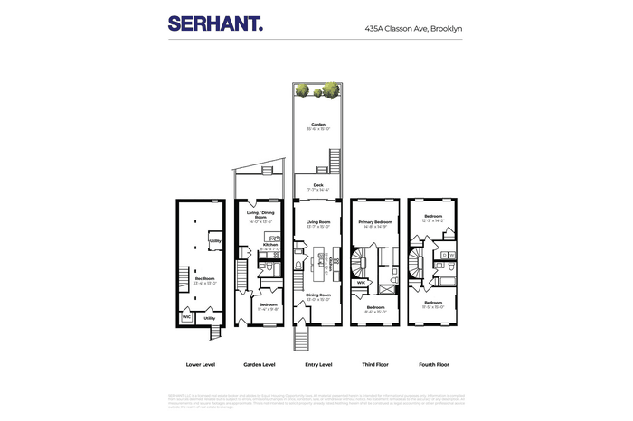 Located at the crossroads of Clinton Hill and Bedford-Stuyvesant, 435A Classon Avenue is a thoughtfully renovated two-family townhouse configured as an owner's upper triplex over a garden-level residence, complete with a finished cellar. Spanning over 3,000 square feet, the upper triplex offers four bedrooms, two full bathrooms, and a powder room, while the garden unit features a one-bedroom, one-bathroom layout.