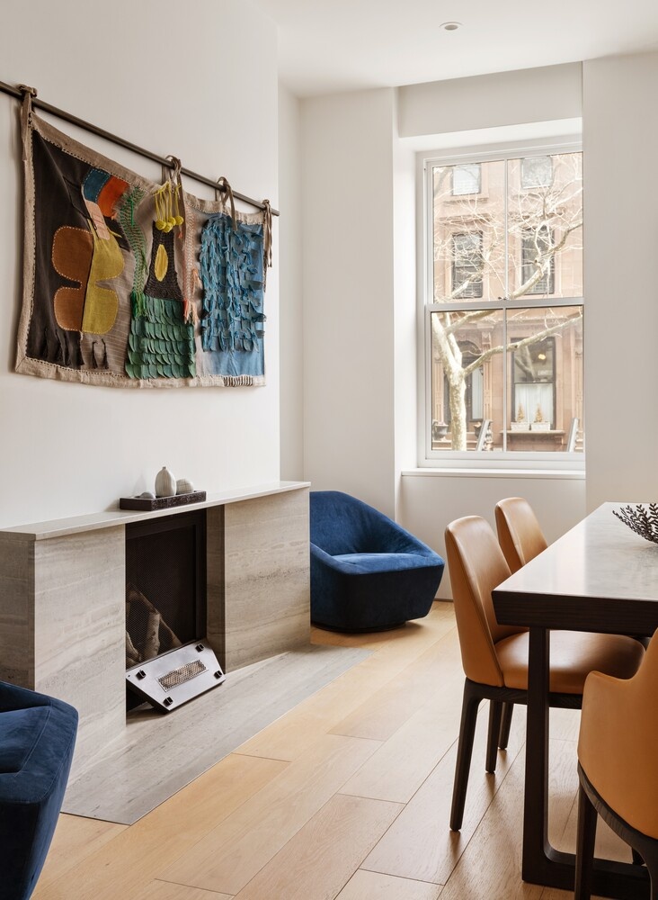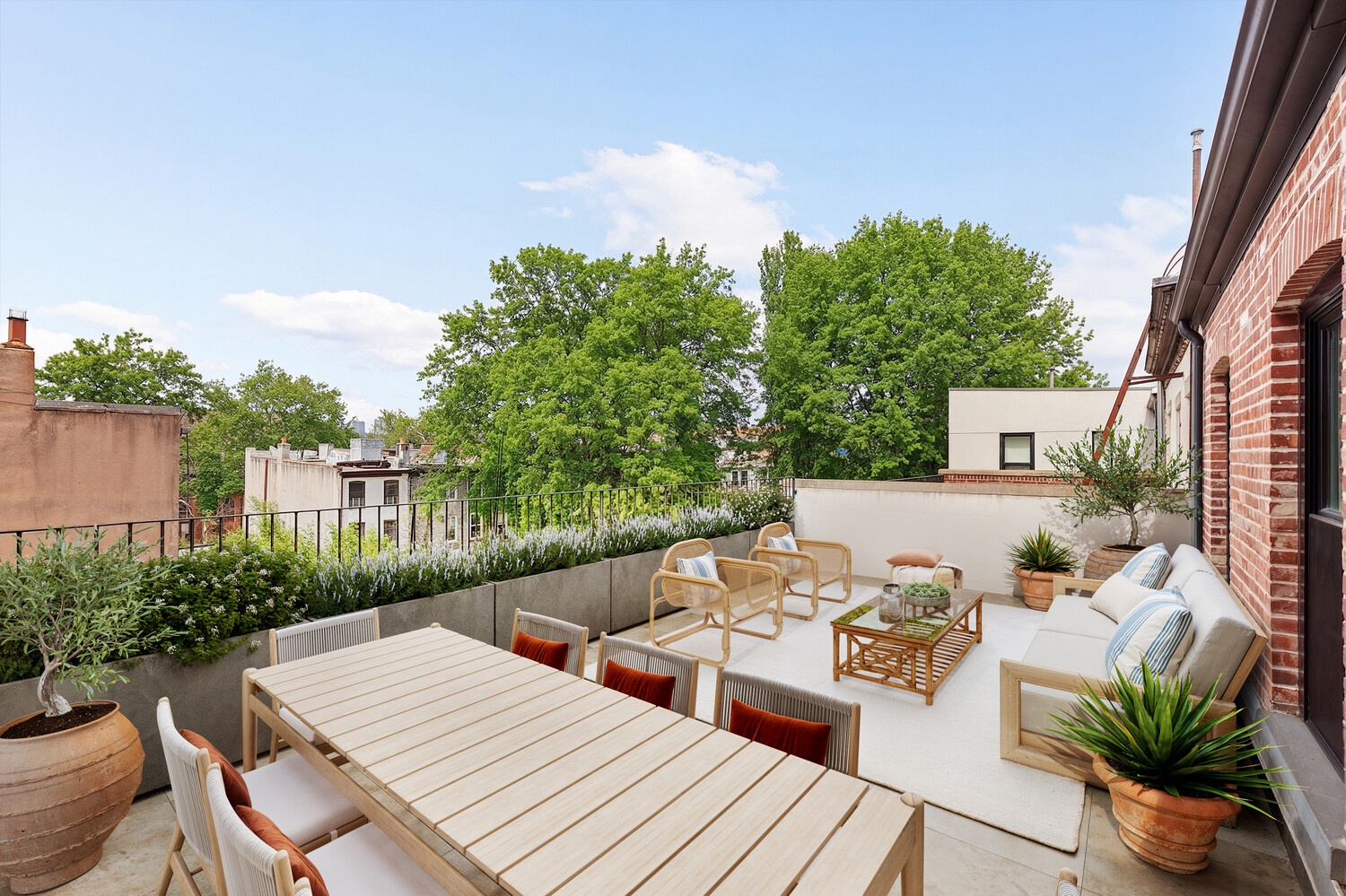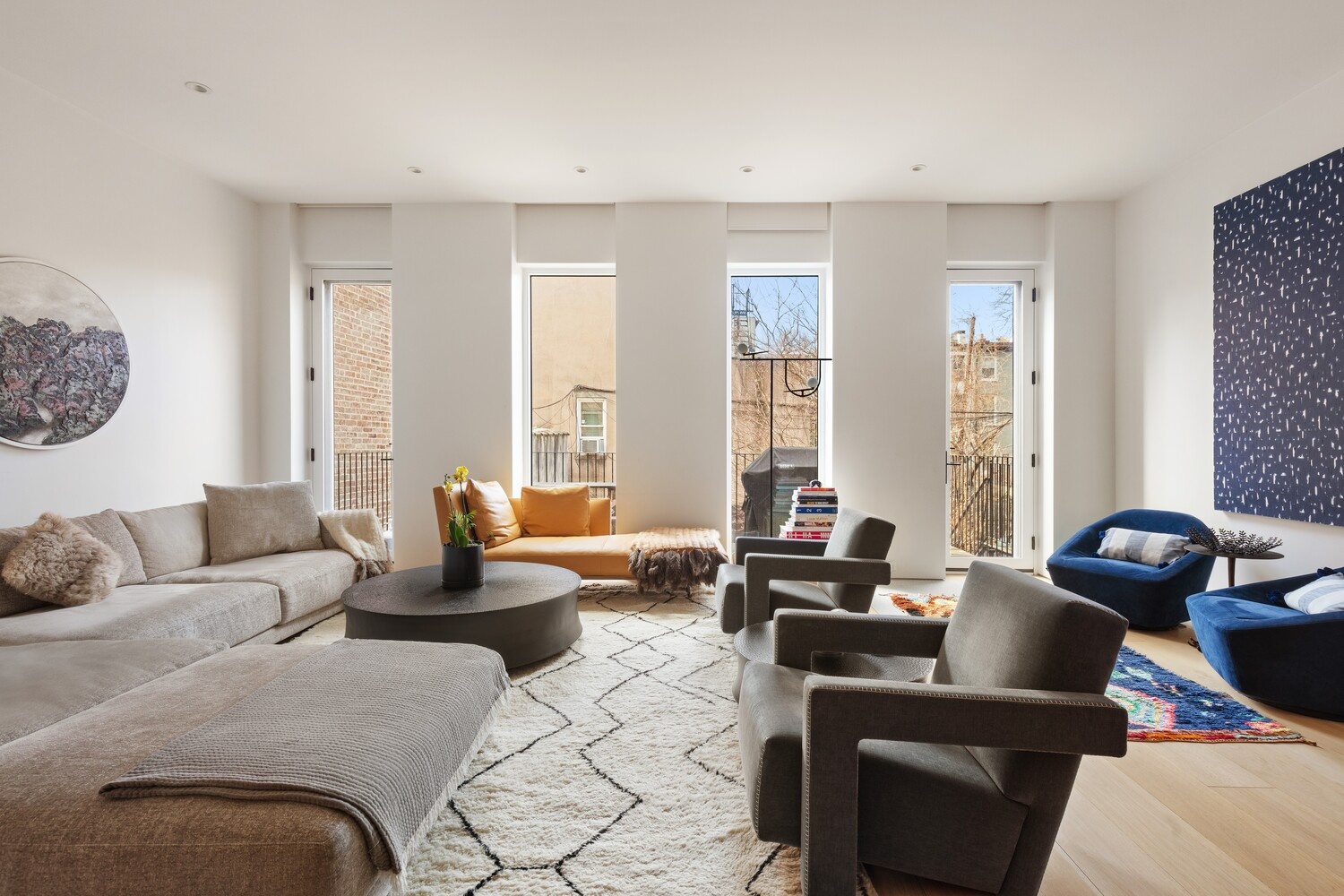 The parlor level is tailored for modern living and entertaining, with an open layout that flows effortlessly between the kitchen, living, and dining areas, all extending to a private rear terrace. Clean lines, refined finishes, and abundant natural light define the home's sophisticated aesthetic throughout.
