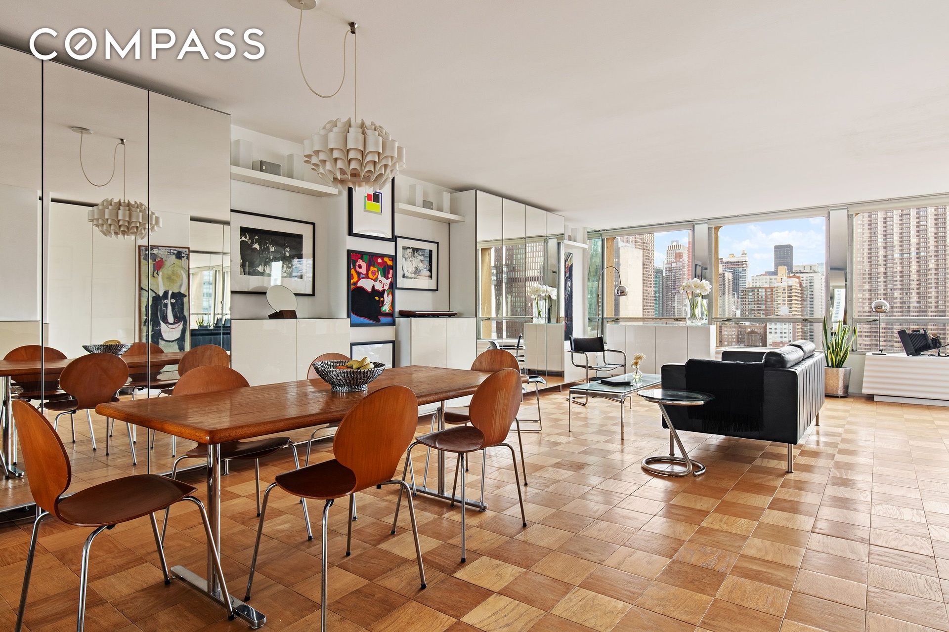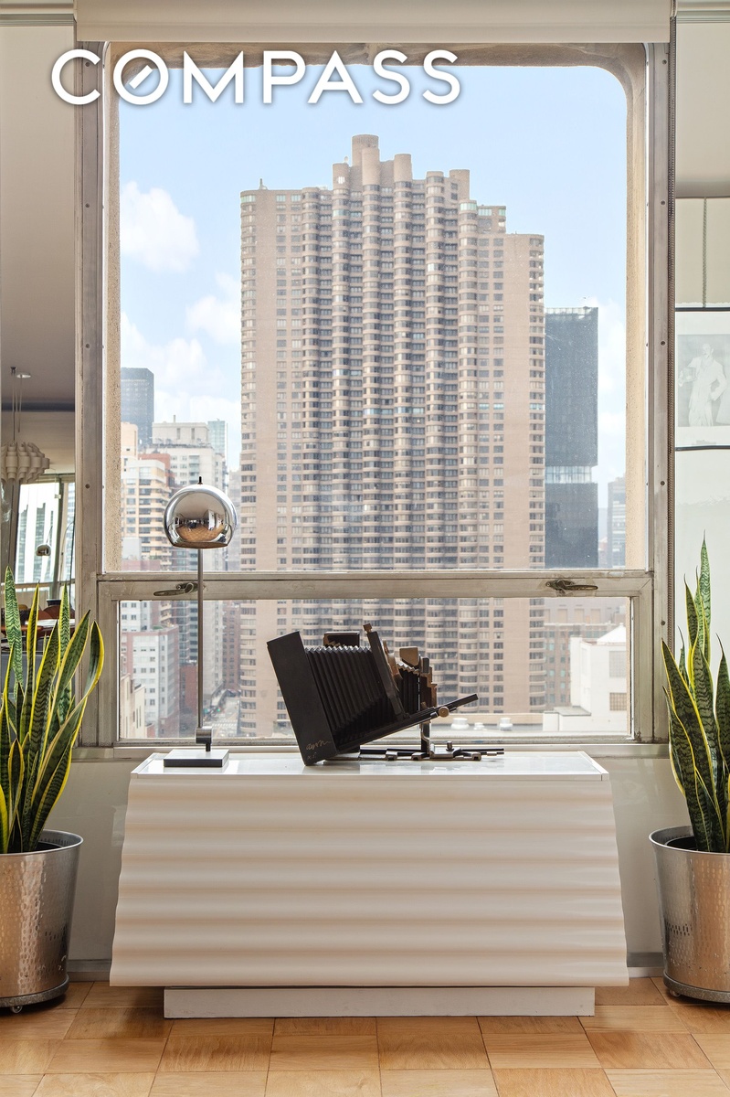 Perched atop Kips Bay Towers, a Brutalist building completed in 1965 and designed by esteemed architect I. M. Pei, this exceptional penthouse commands sweeping north-facing views, capturing both the East River and the Manhattan skyline in one uninterrupted panorama. Floor-to-ceiling windows flood the home with natural light throughout the day, while evenings bring a cinematic display of city lights stretching uptown.
